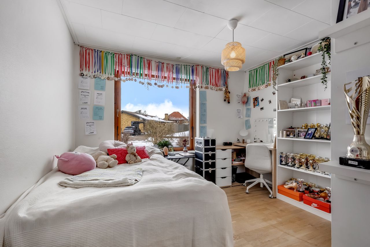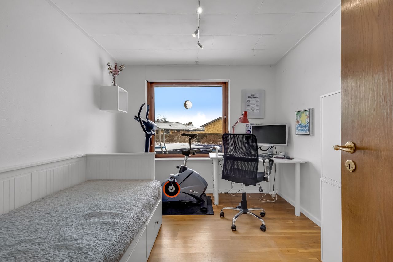 Fire gode værelser giver plads til både børn, forældre og hjemmekontor.