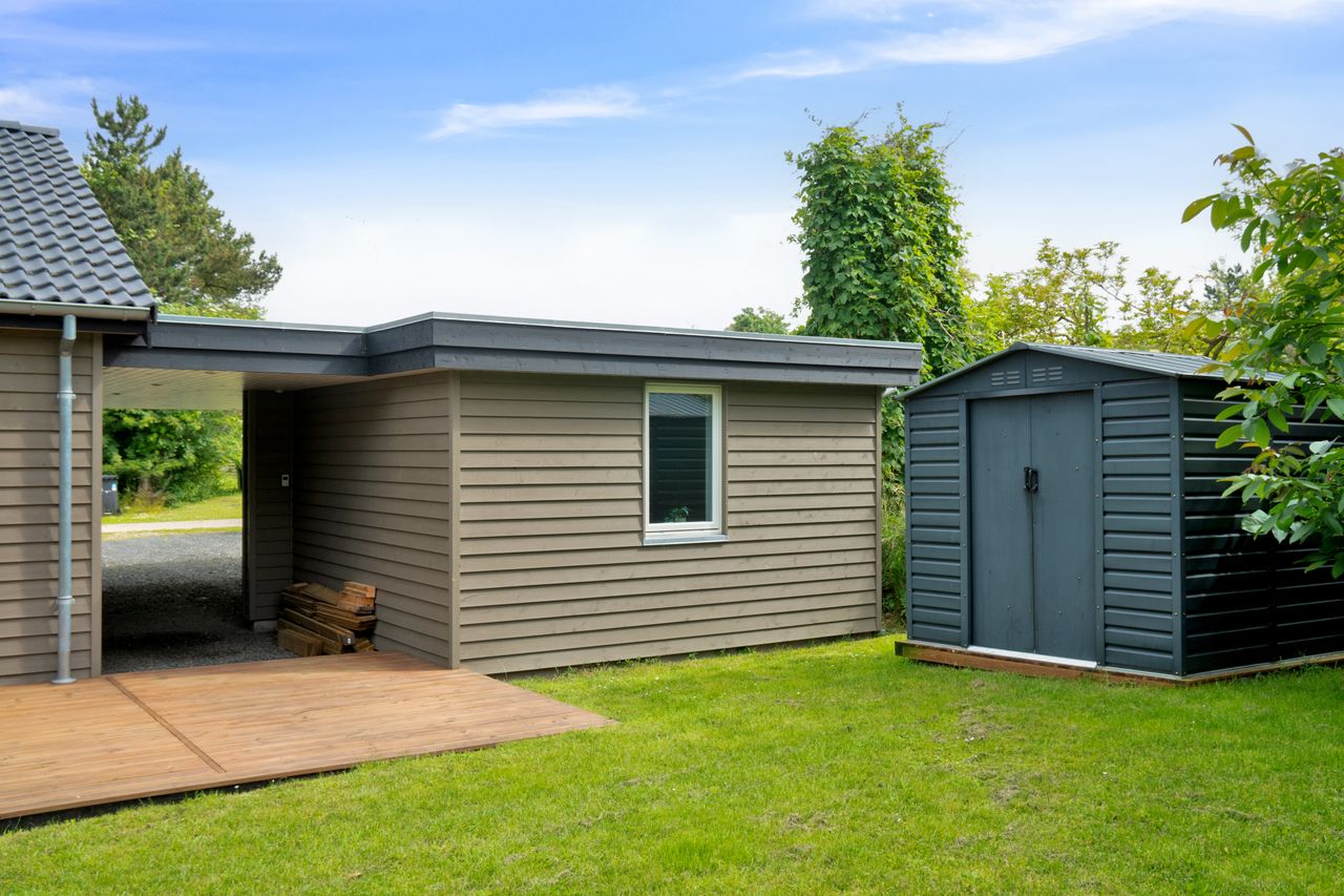 En times kørsel fra København ligger dette sommerhus fra 2020 på Kastanievænget 10 nær vandet på naturskønne Jungshoved. Her venter jer en moderne, helårsanvendelig fritidsbolig på 106 m2 med app-betjent luft-til-vand gulvvarme i både hus og anneks. Den perfekte base til weekenderne, ferierne eller de uforstyrrede hjemmearbejdsdage. Fra adressen er der ikke langt til et bredt udvalg af Sydsjællands byer og smukke natur. Købstaden Præstø er få minutters kørsel væk i bil, og på en halv time kan I nå både Næstved, Vordingborg, Skovtårnet og forlystelserne i BonBonland. Hungrer I efter natur, er der en time til Møns Klint, mens nærområdet byder på dejlige gåture i skoven og langs kysten, hvor I finder ejerforeningens store badebro. Fritidshuset har et lavt energiforbrug, og ligger højt men tæt på vandet. Haven er anlagt med afslapning for øje med en solrig terrasse og masser af græs, hvor områdets vilde dyreliv gerne slår et smut forbi. Foldbare glaspartier giver jer mulighed for at skabe flydende overgange mellem indemiljøet og den sydvestvendte træterrasse, og grillaftenerne får optimale vilkår på den overdækkede del af terrassen, hvor I kan sidde i læ for vind og sommerbyger. Udefra tager huset sig flot ud med grå træfacader, hvide vinduer og sort tag. Via den integrerede, dobbelte carport er der desuden adgang til det opvarmede anneks. Fra carporten træder I ind i bryggerset, der fungerer som sommerhusets entré. I det åbne opholdsrum strømmer lyset ind på bambusgulvene fra de vestvendte glaspartier samt tre elektroniske ovenlysvinduer i rummets kipførte Troldtekt-lofter. Madlavning bliver ligeledes en fryd i det elegante køkken, der både byder på induktionskogeplader, to ovne samt Grohe Red med kogende vand direkte fra hanen. Hertil får I to værelser, hvoraf det ene er et master bedroom med indgang til ferieboligens pæne badeværelse med brus. Sommerhuset afrundes af et gæstetoilet samt et lille, disponibelt rum. Kontakt os for fremvisning.