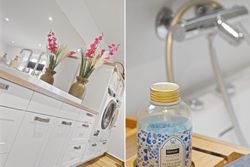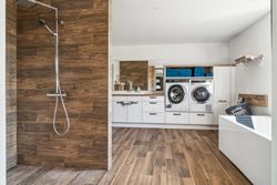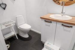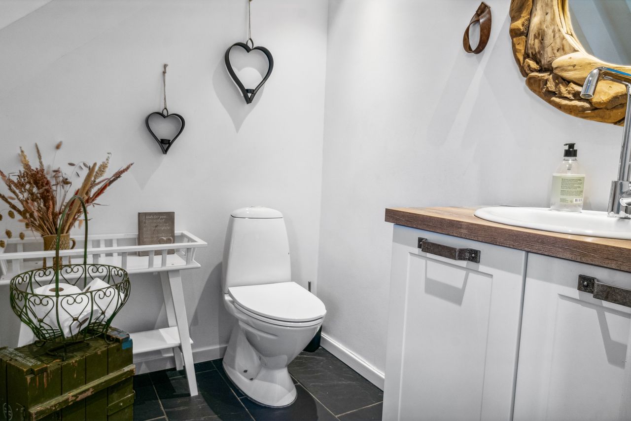 modernisering af badeværelset og toilettet, ligesom der er indlagt gulvvarme. De ligeledes nye gulve er af