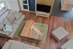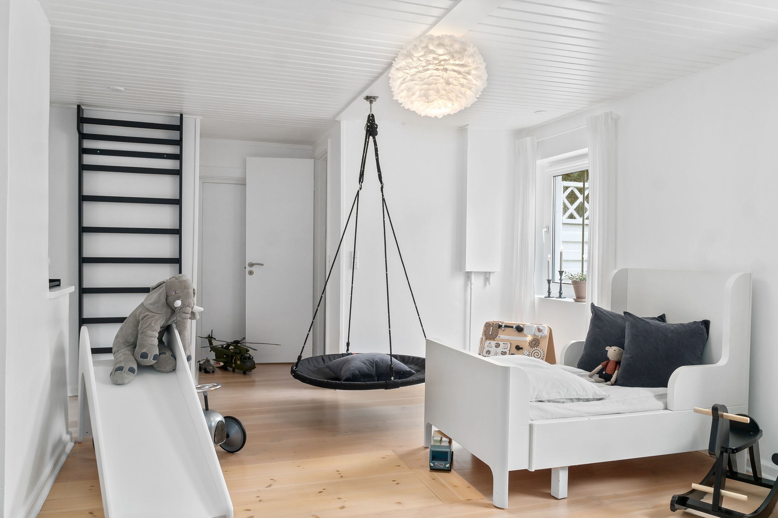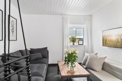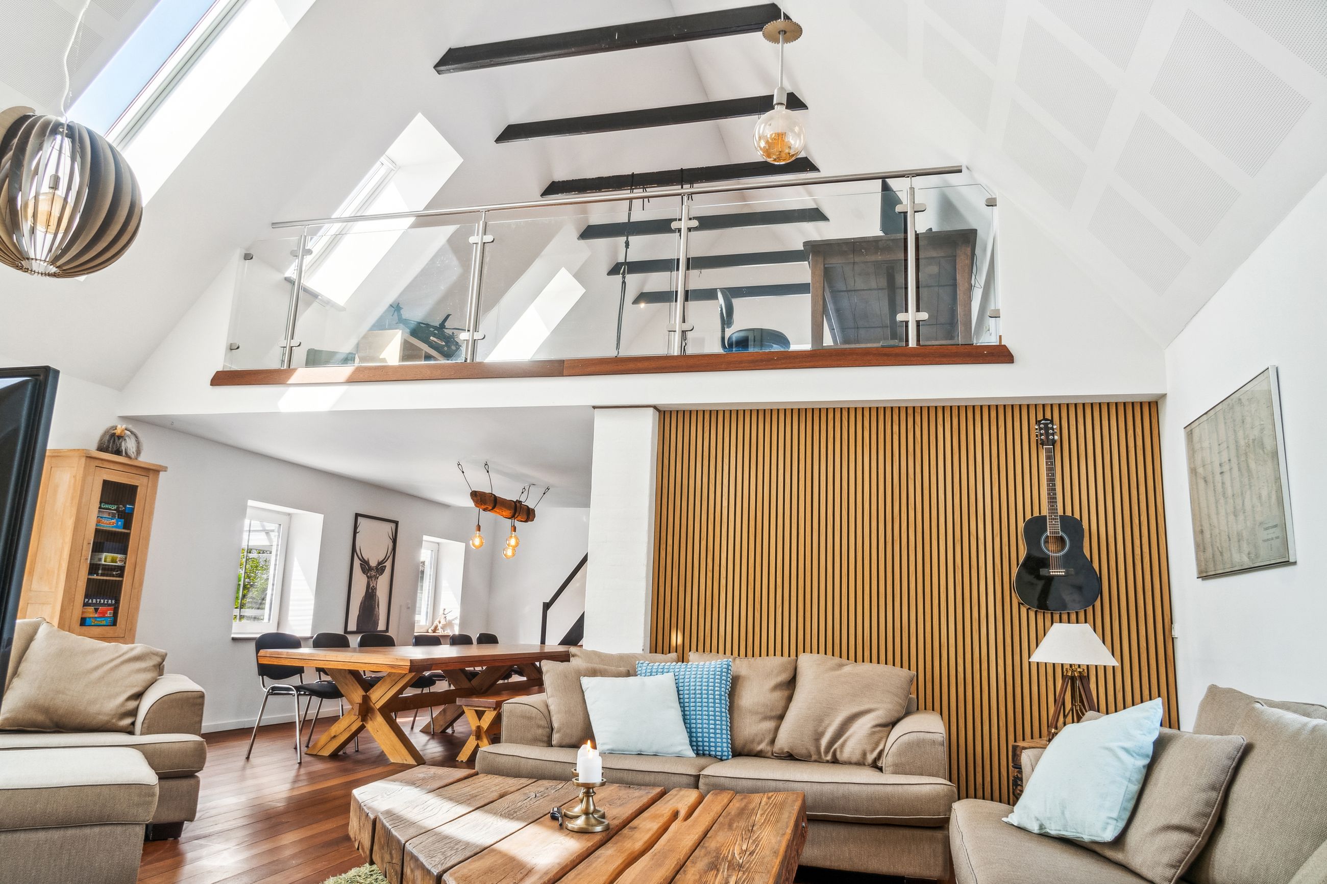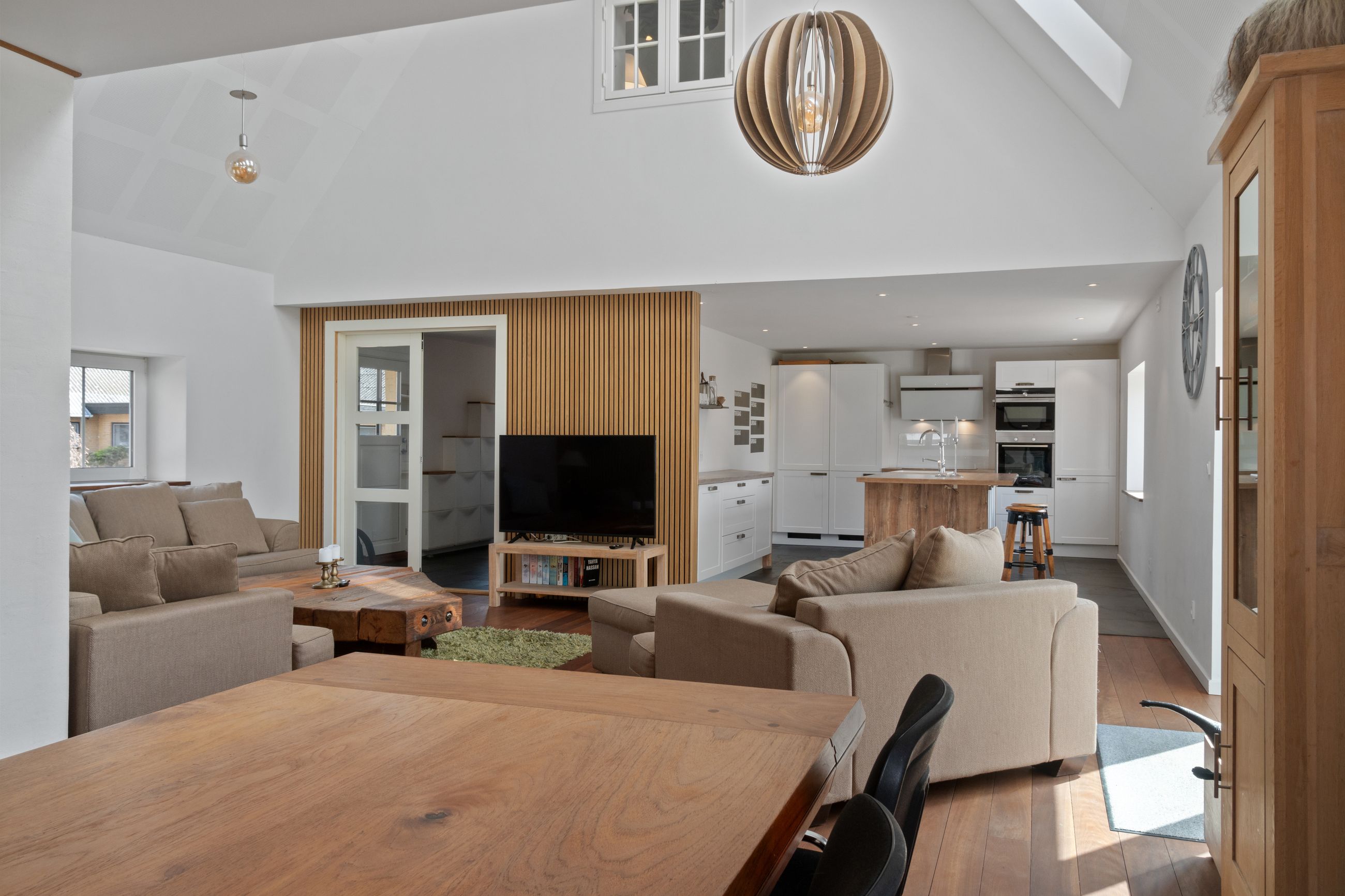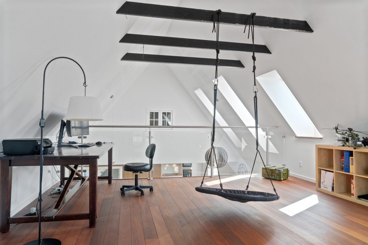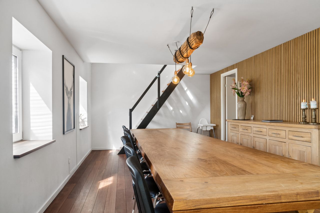 indretning. Den åbne forbindelse mellem stueplanet og førstesalen skaber et helt særligt udtryk, der på