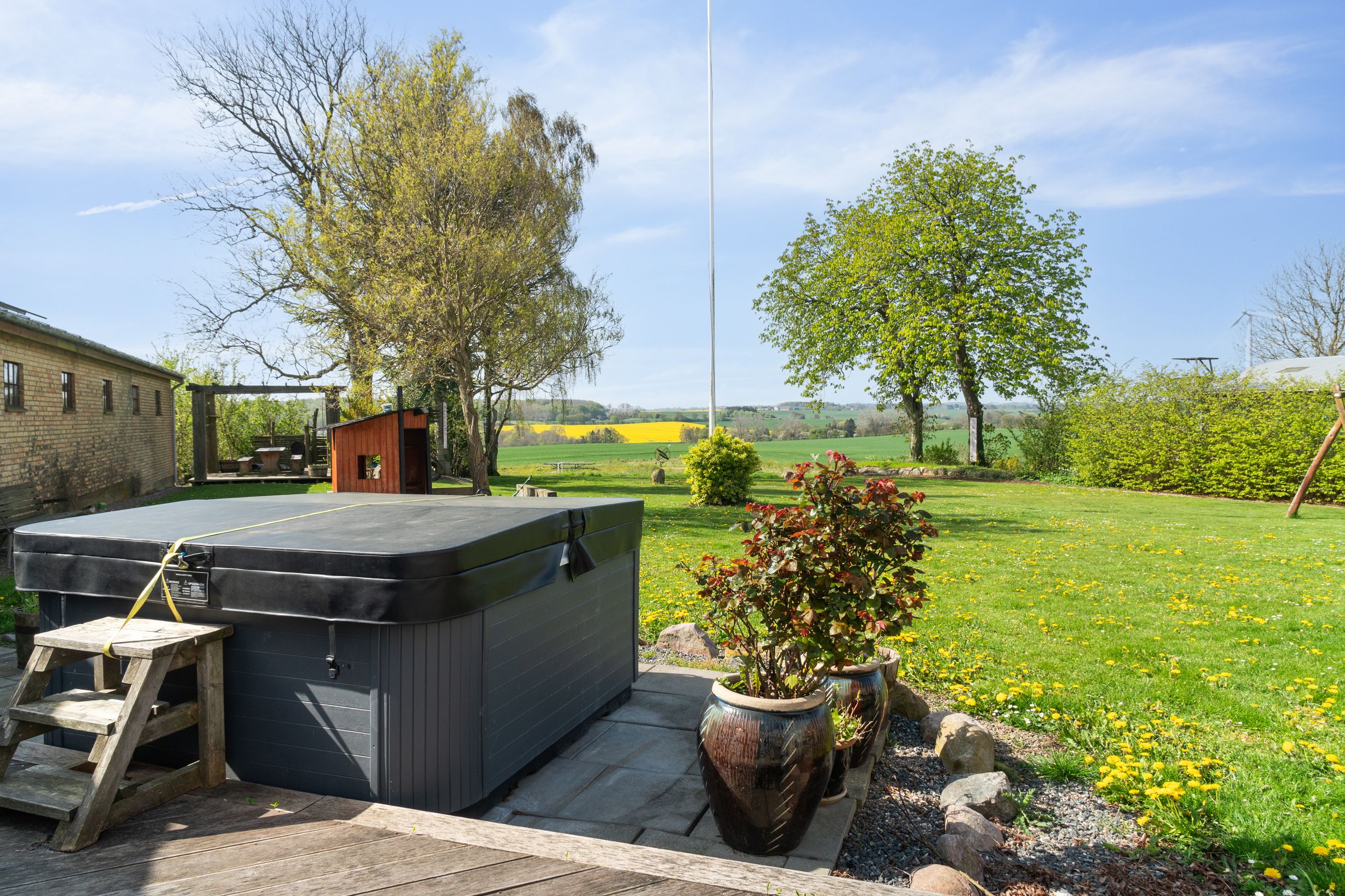 hav af muligheder på grundens cirka fem tønder land. Den idylliske udsigt over marklandskaberne er