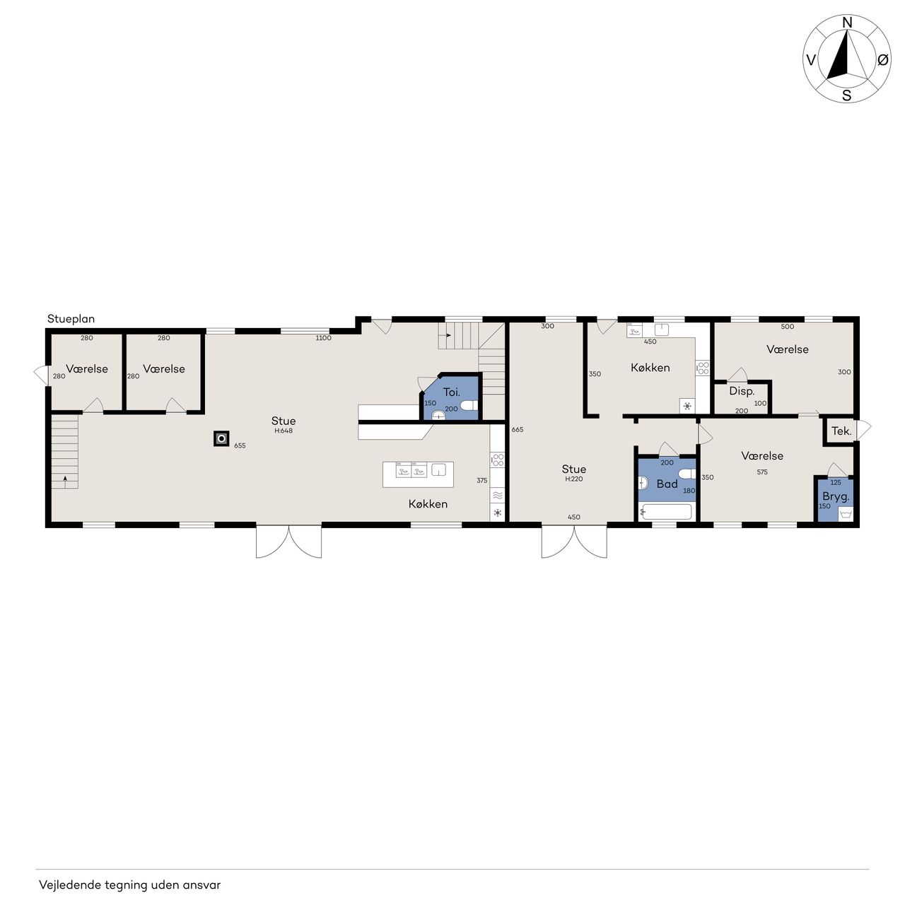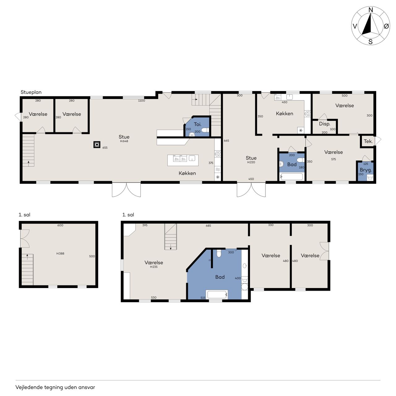 rum og værelser siger næsten sig selv, når det samlede beboelsesareal er på ikke færre end 496 m².