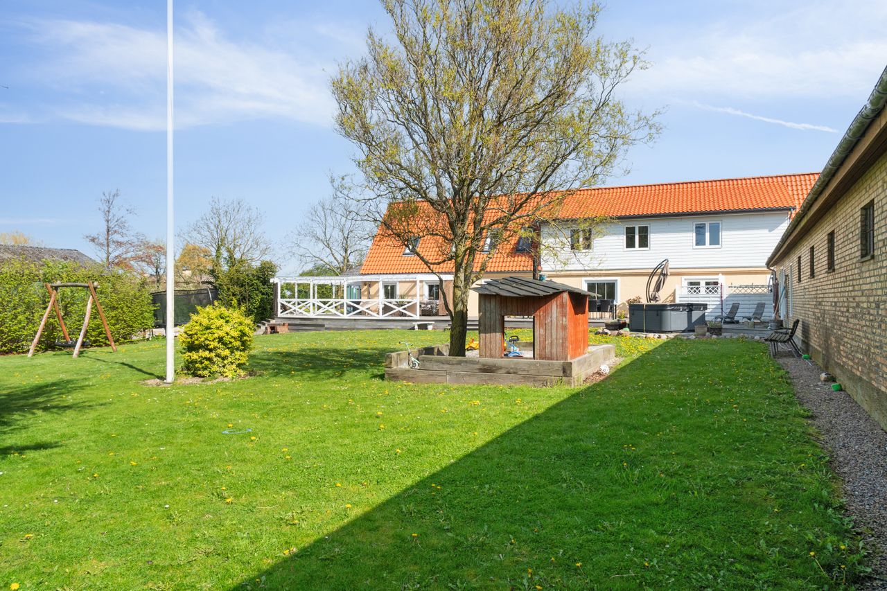 På en både landlig, fredelig og bynær adresse lidt syd for Præstø står denne fantastiske og nyrenoverede