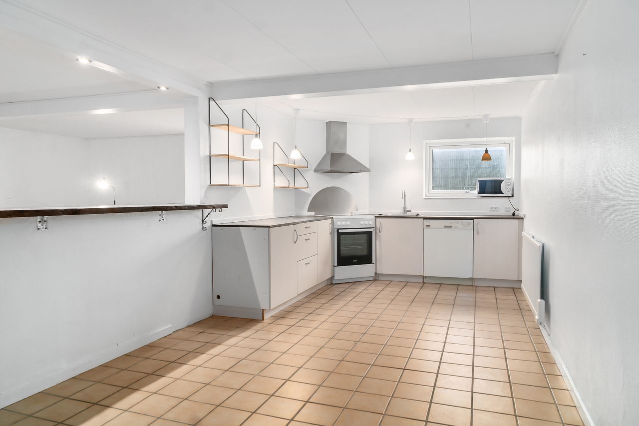 m² med fantastisk gode erhvervsmuligheder og store, lækre terrasser. Herudover er gildesal/lejlighed