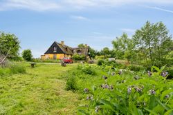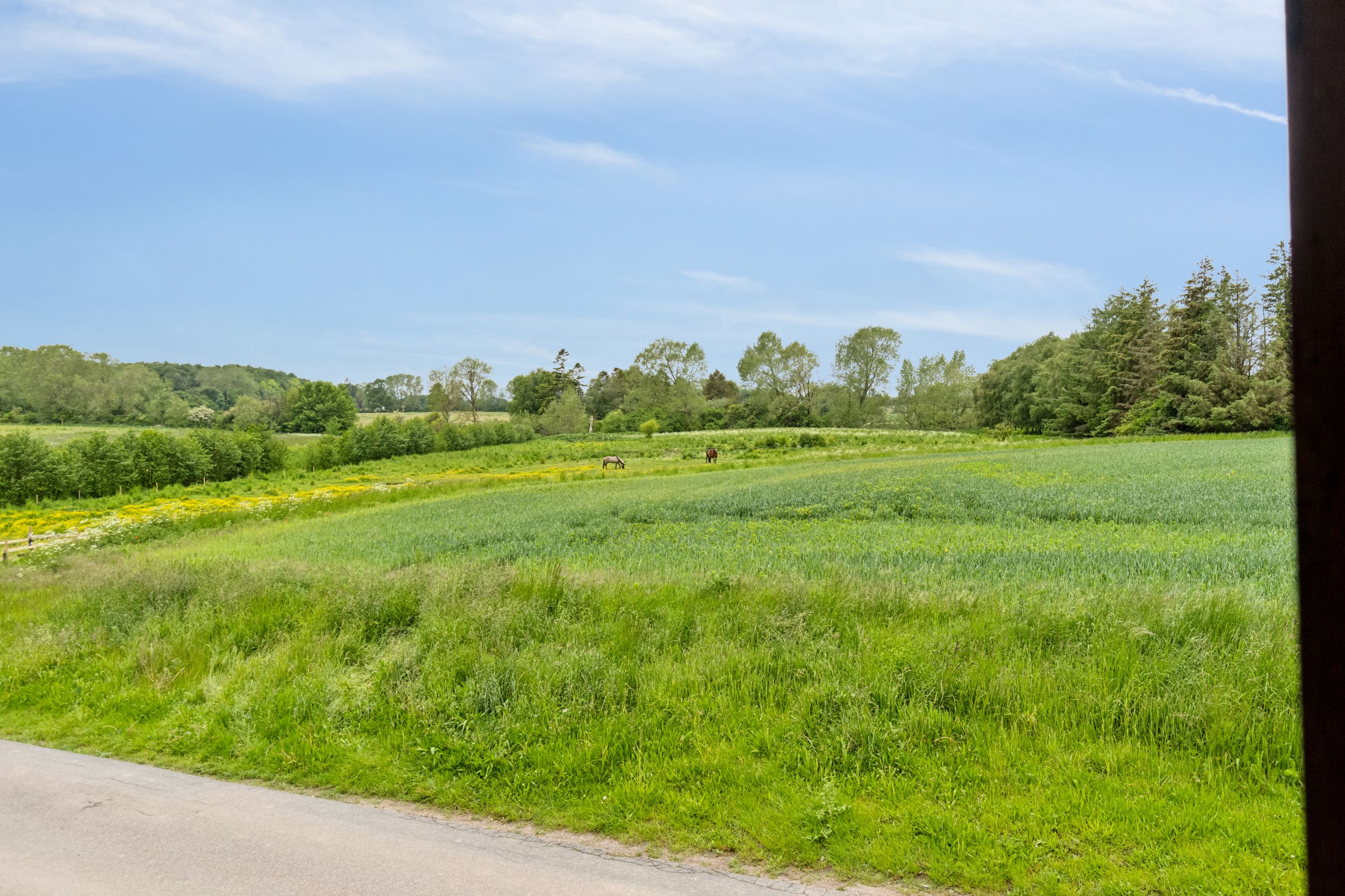 Med udsigt til heste og Sydsjællands bugtende marklandskab ligger denne gule, stråtækte villa på