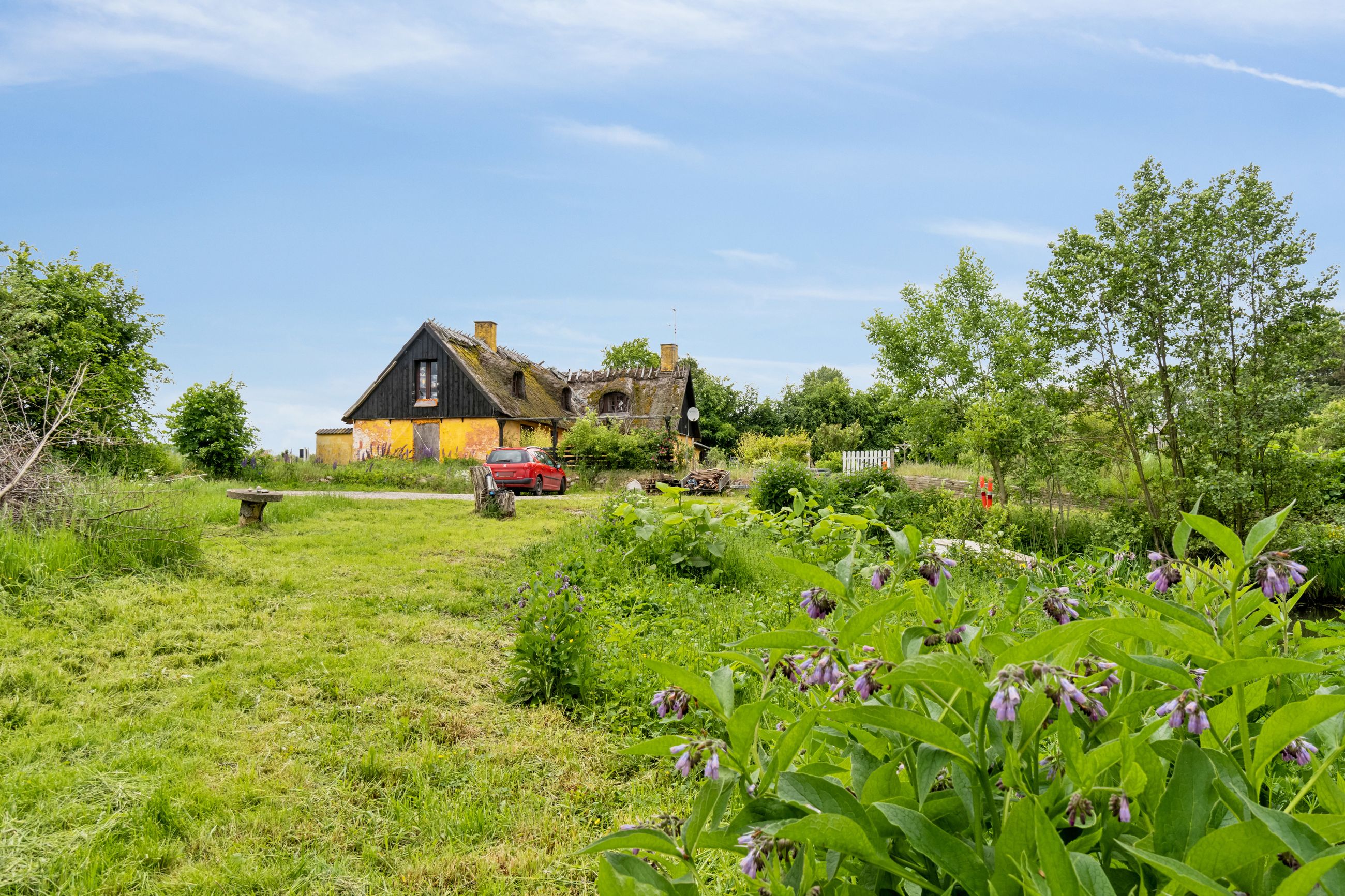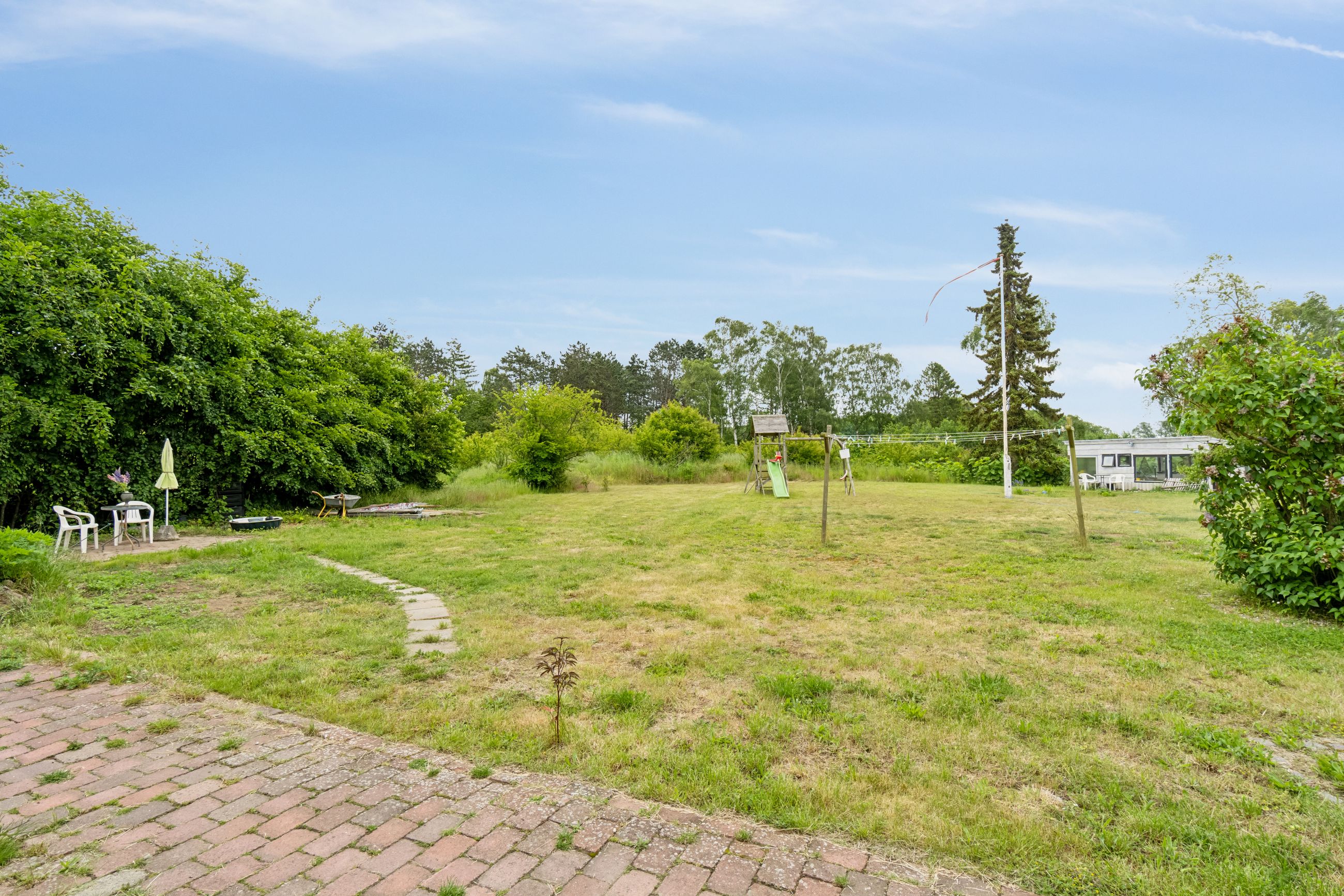 Udenfor breder den 12.651 kvadratmeter grund sig ud bag huset, hvor solen kan nydes på de dejlige