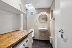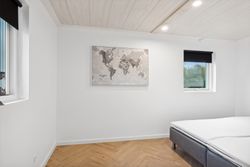 Dernæst kan I se frem til at indrette to regulære værelser, som er placeret i hvert hjørne af huset. På badeværelset er der også fine forhold, da det er udstyret med ovenlysvindue og glasbruseniche, og der er blevet plads til vaskefaciliteter.