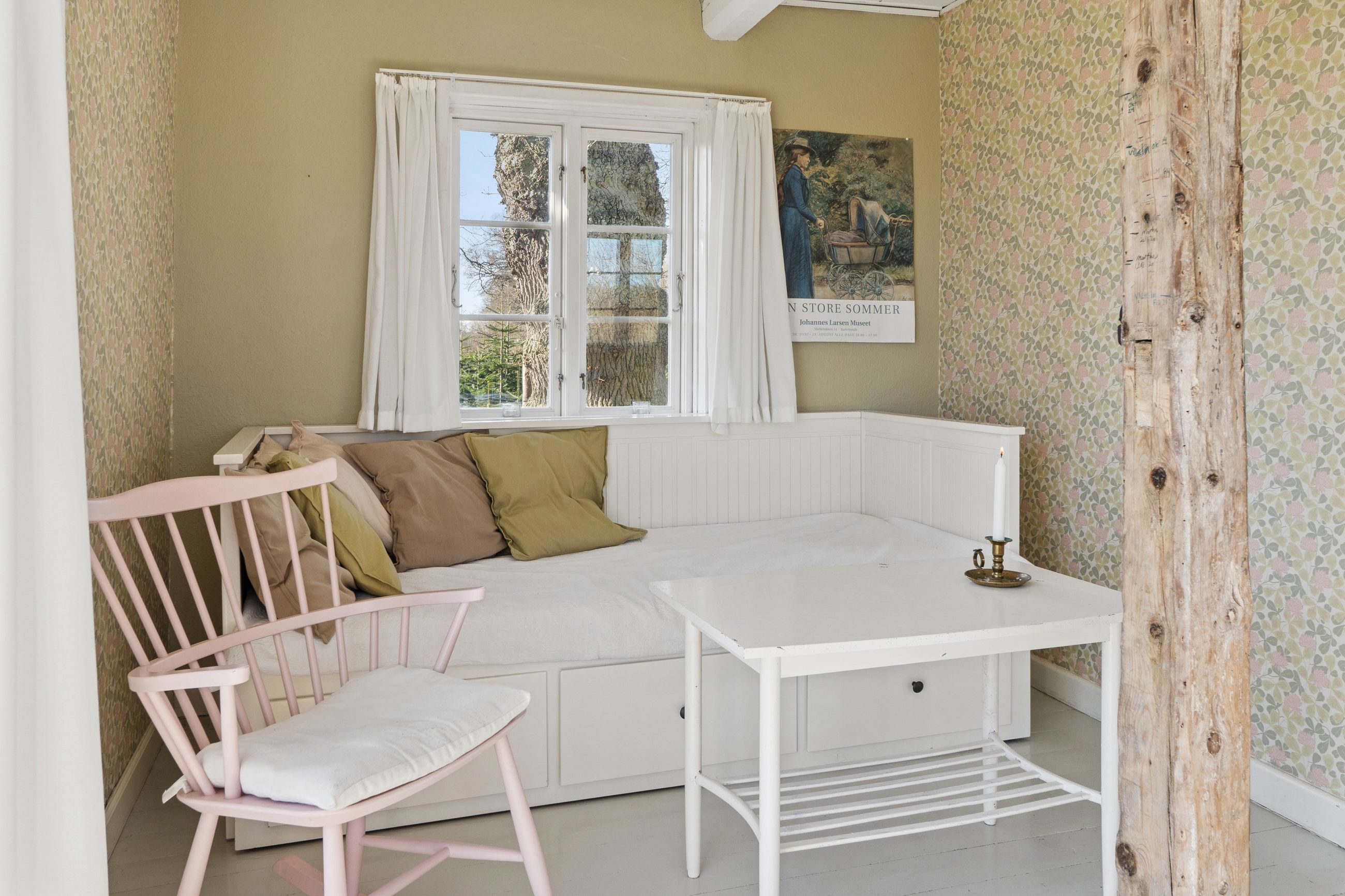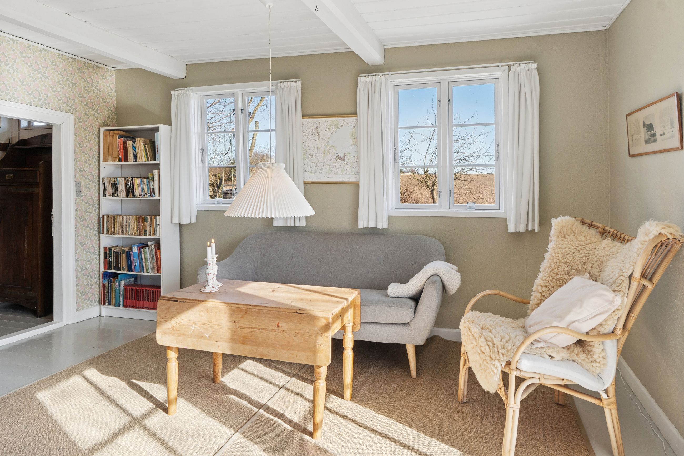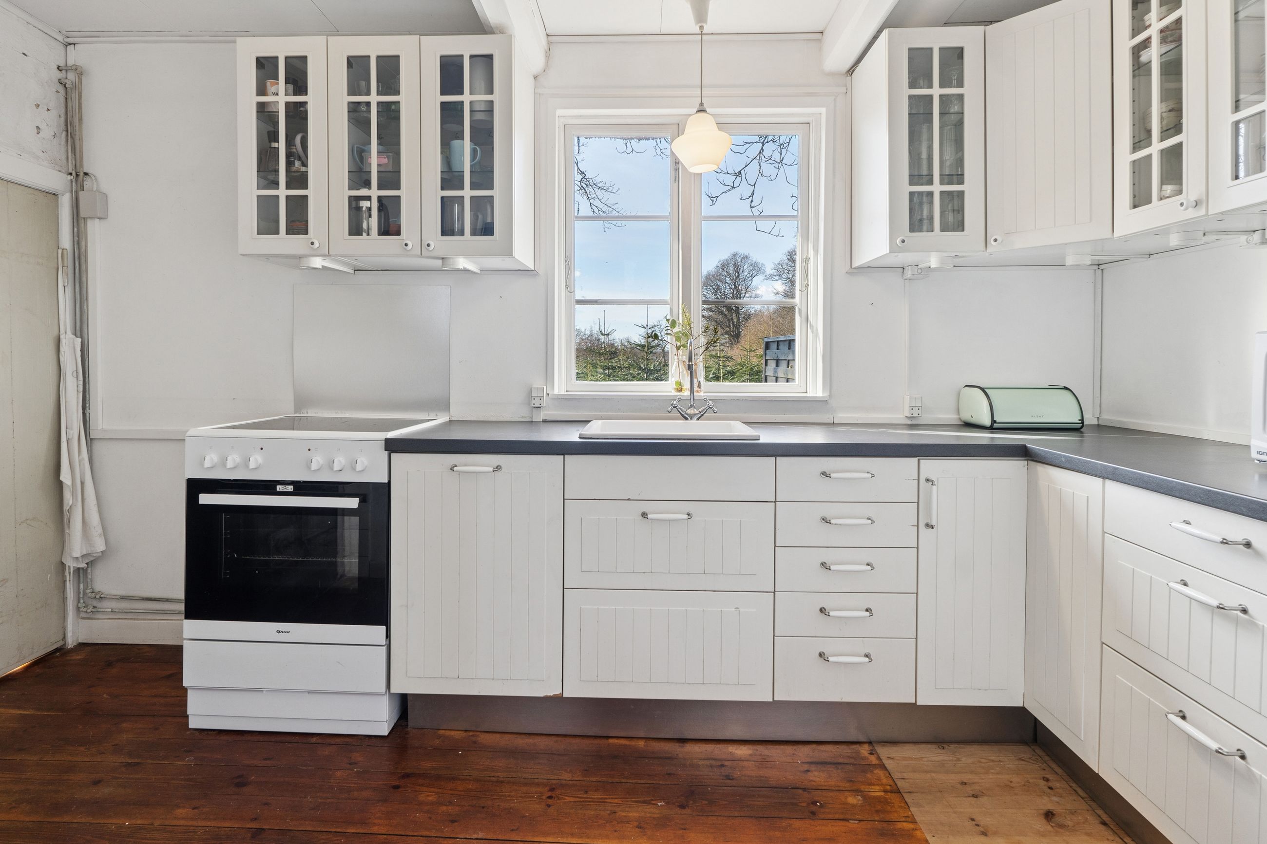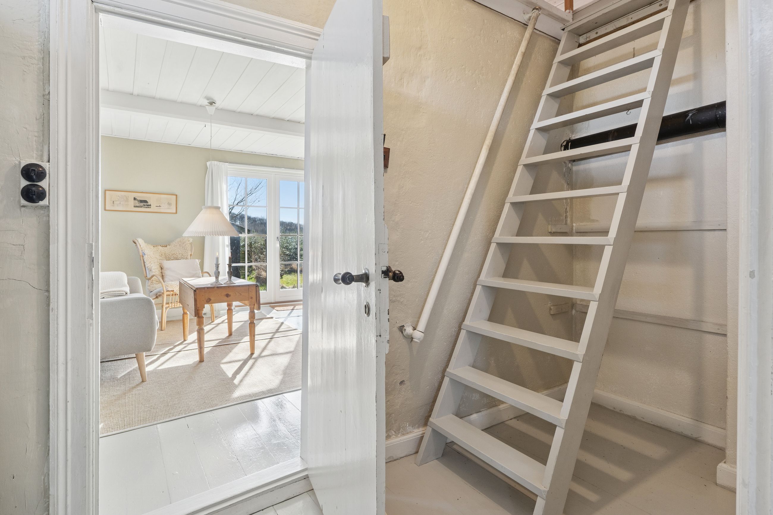 Huset er indrettet med en rummelig stue, hvor lysindfaldet er særdeles behageligt, og videre i stueplanet er der arrangeret en spisestue tilstødende det pæne, funktionelle køkken, som indeholder gammelt autentisk brændekomfur såvel som nyere komfur fra 2024. Et badeværelse fuldender etagen, som overalt har en rigtig god loftshøjde, mens I på førstesalen tilgodeses af to værelser.