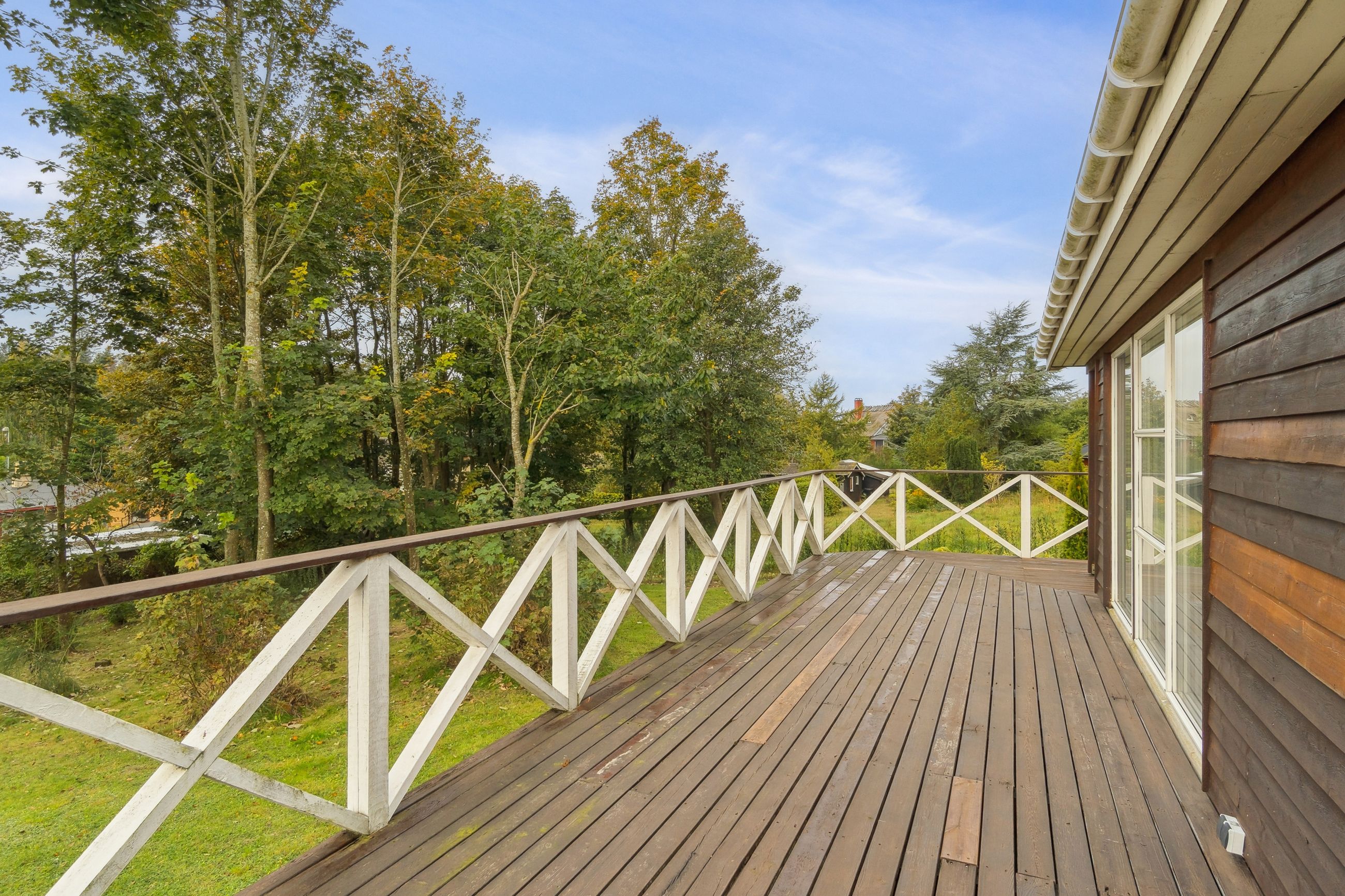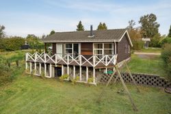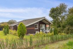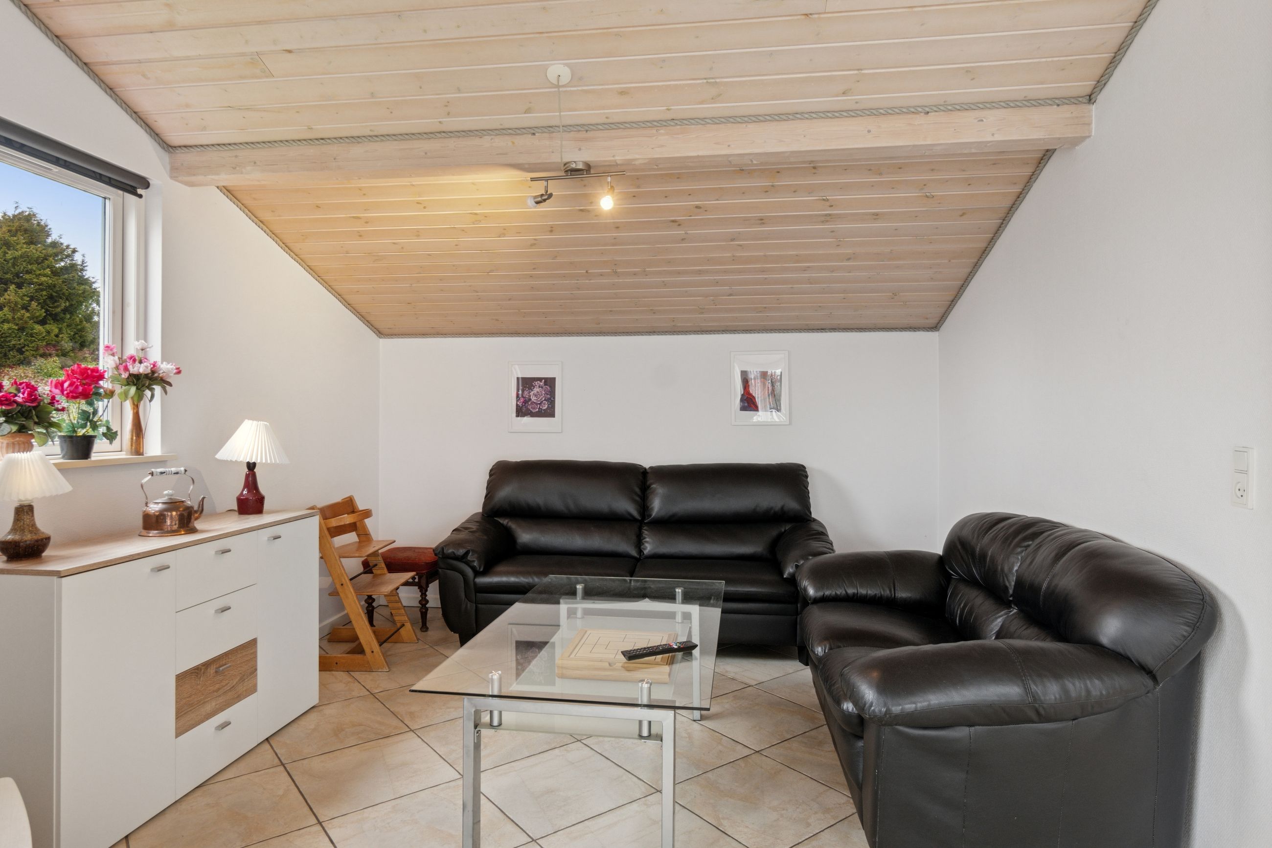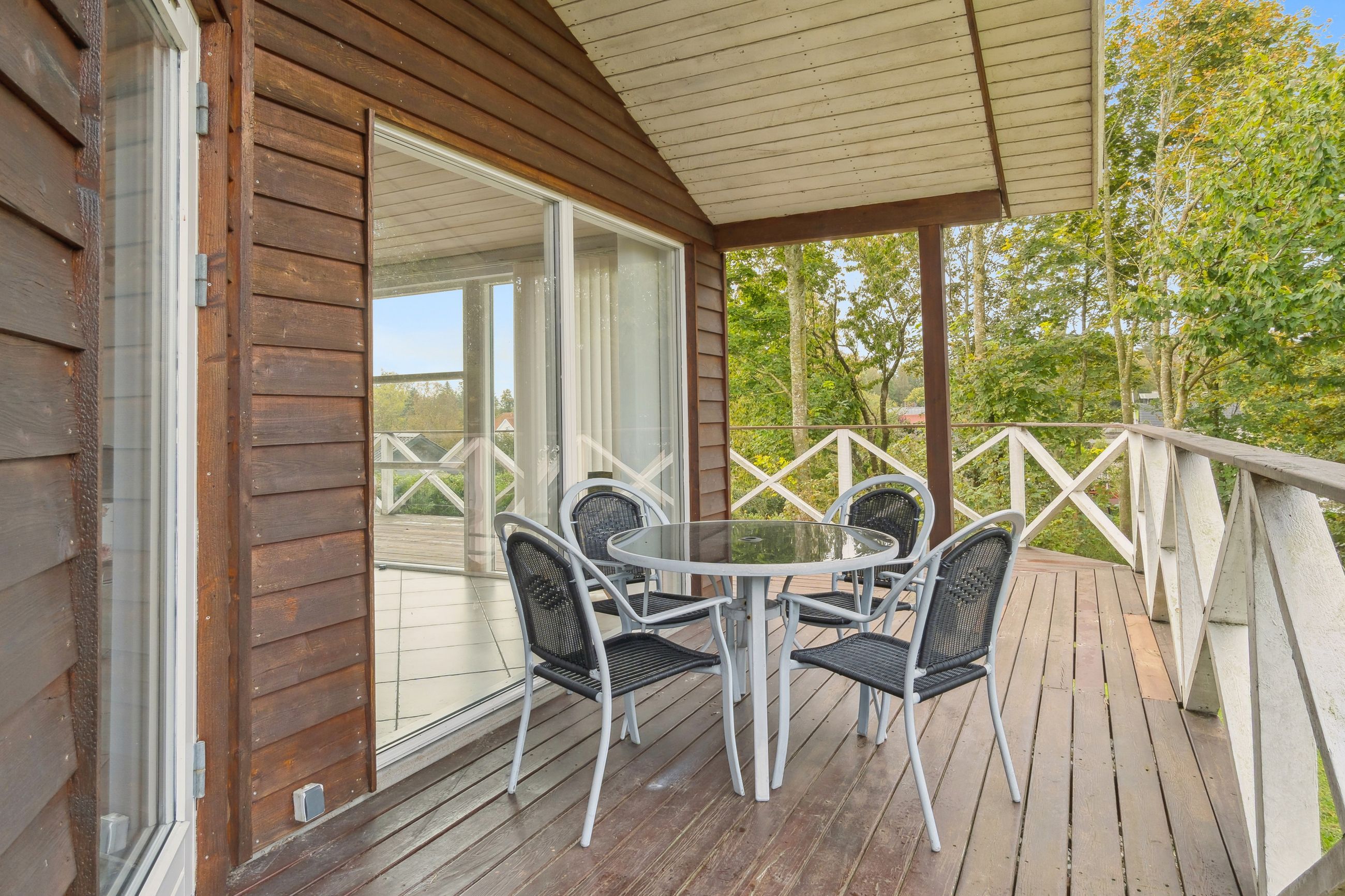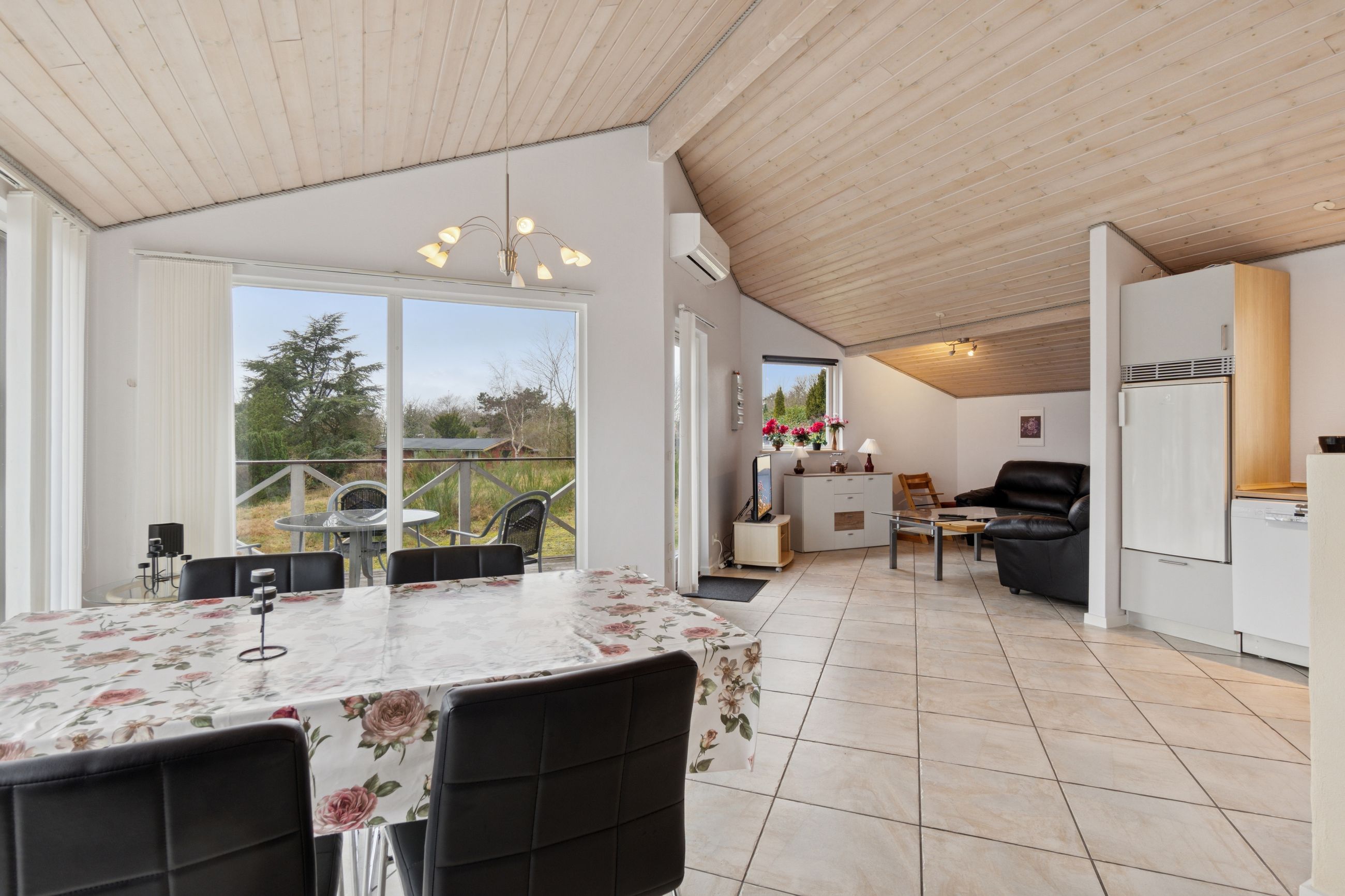 Fritidshuset er strategisk placeret højt i landskabet, hvilket giver et fantastisk udsyn over området. Den store terrasse er perfekt placeret mod syd og vest så solrige dage kan nydes i fulde drag herude, og dette naturlige lys vil I også opleve indenfor, hvor indretningen er indbydende.