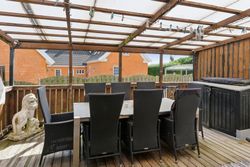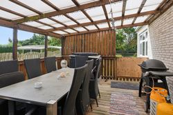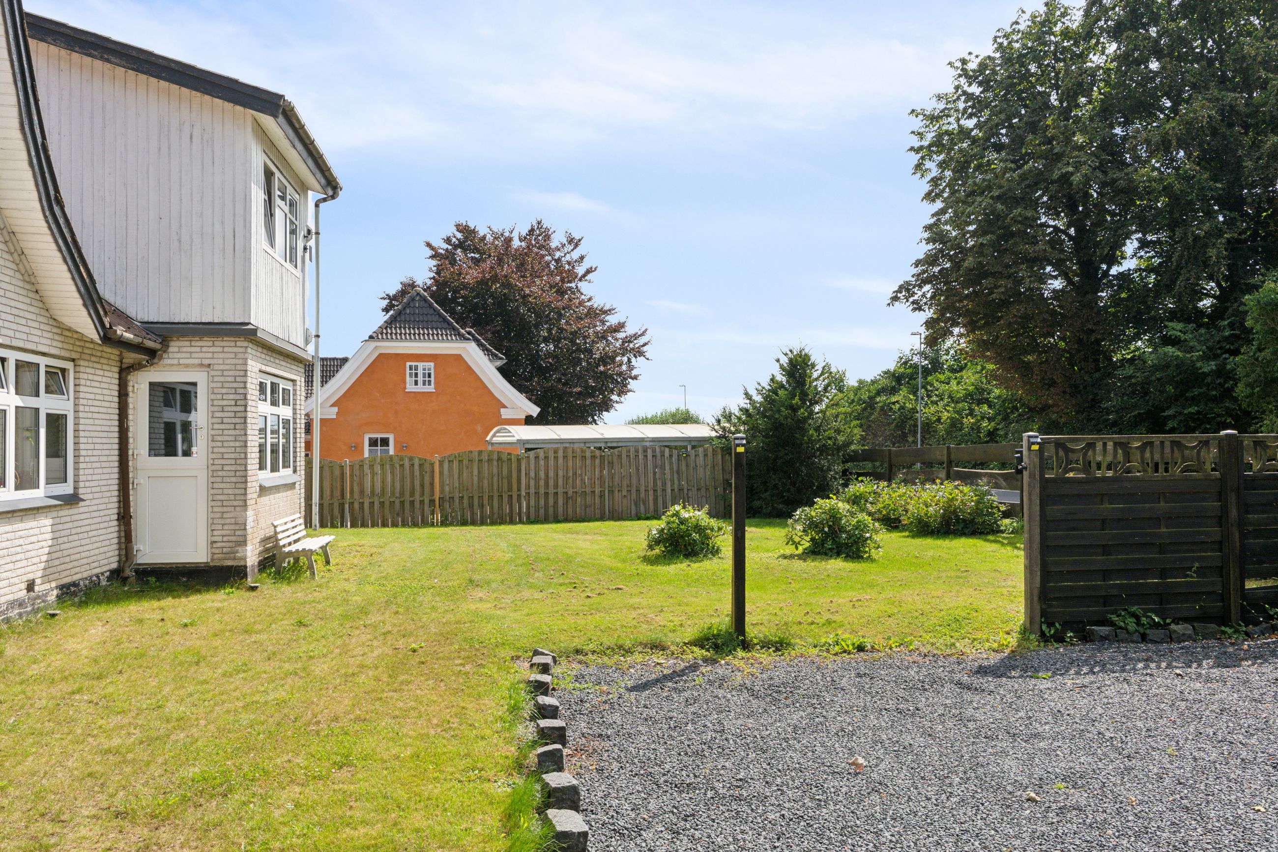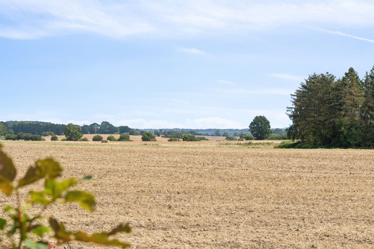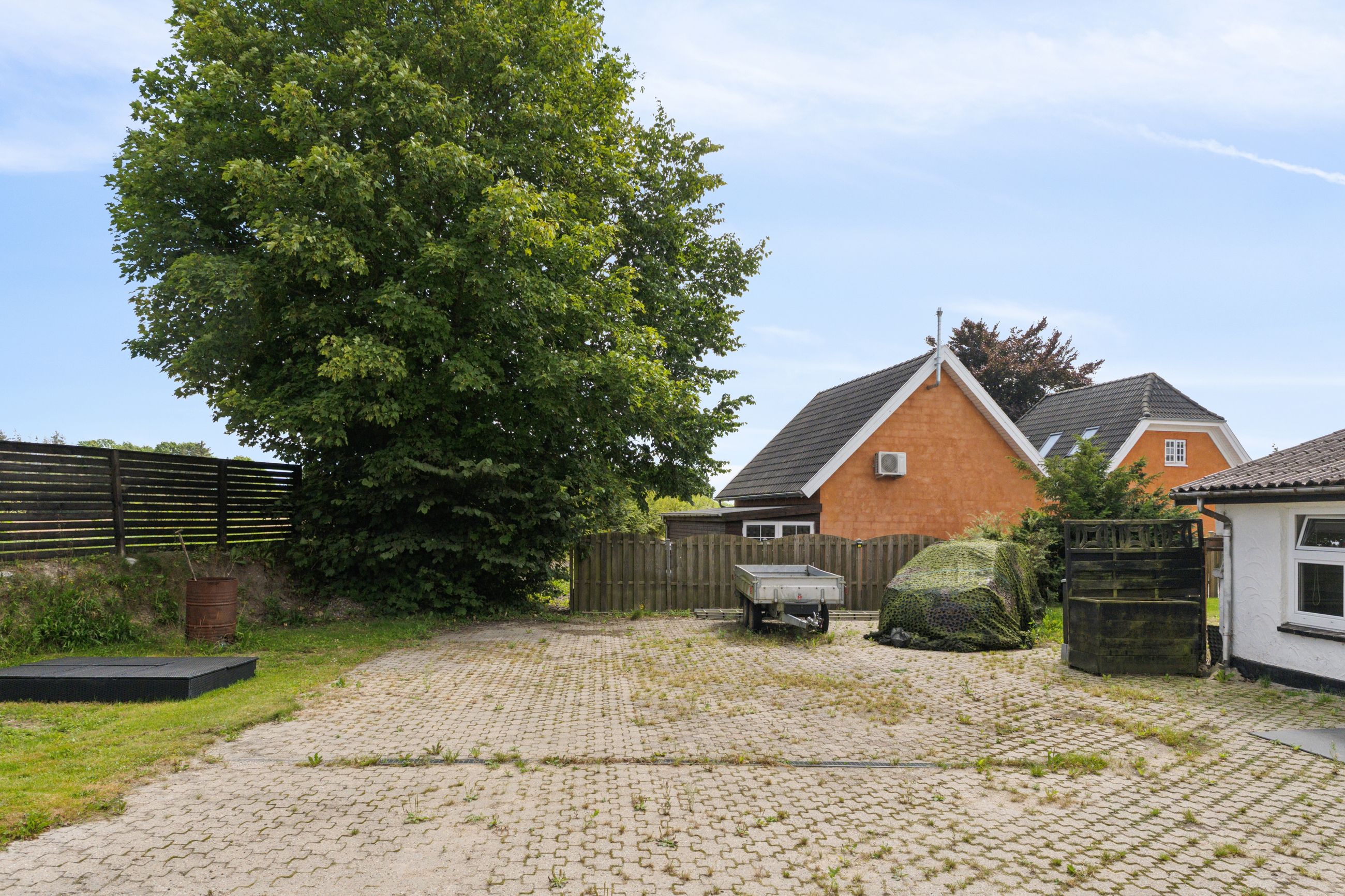 Grunden er anlagt med en indhegnet forhave med græsplæne, god parkeringsplads og adgang til baghaven, hvor et stort terrassemiljø giver rig mulighed for både afslapning og hyggelige sammenkomster. Fra haven er der et skønt kig til de omkringliggende marker, som understreger den fredelige beliggenhed.