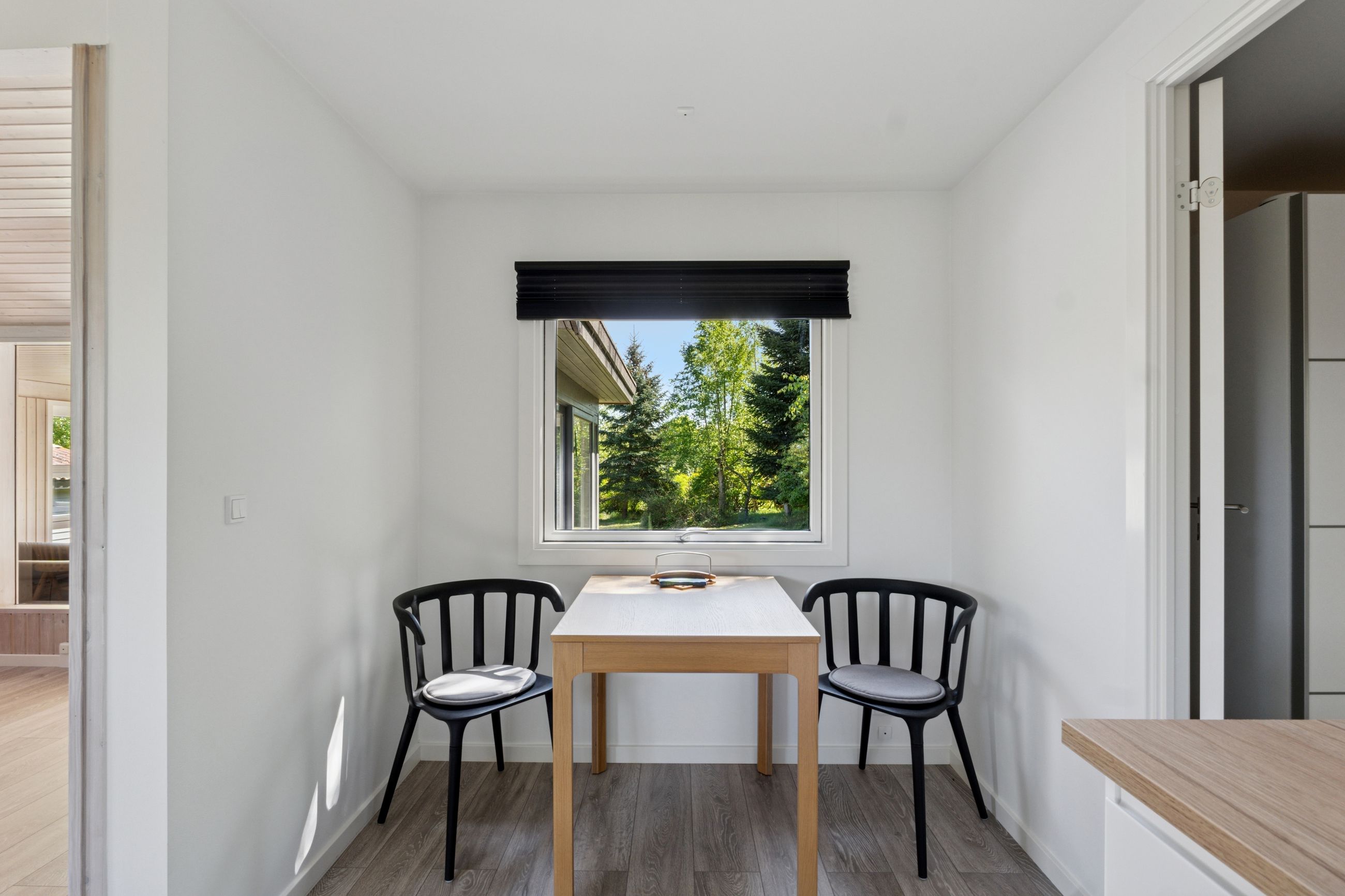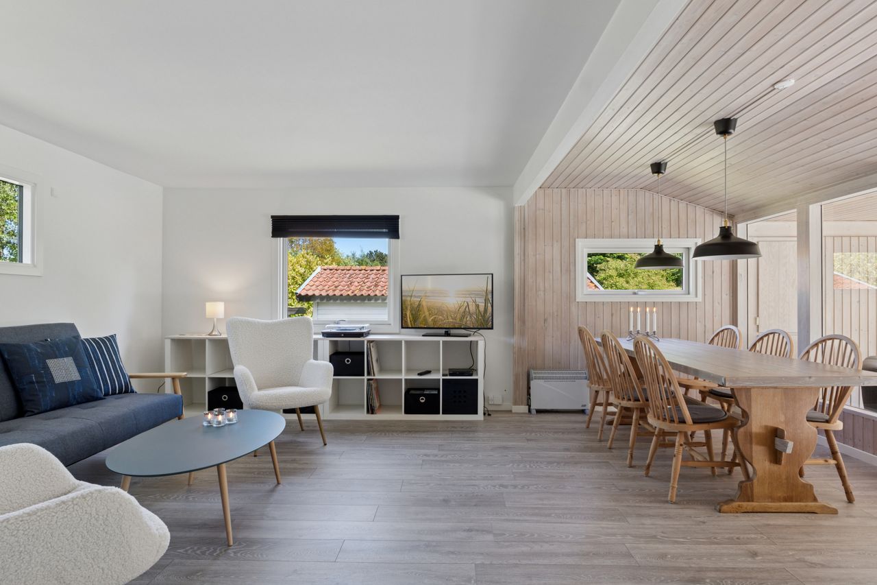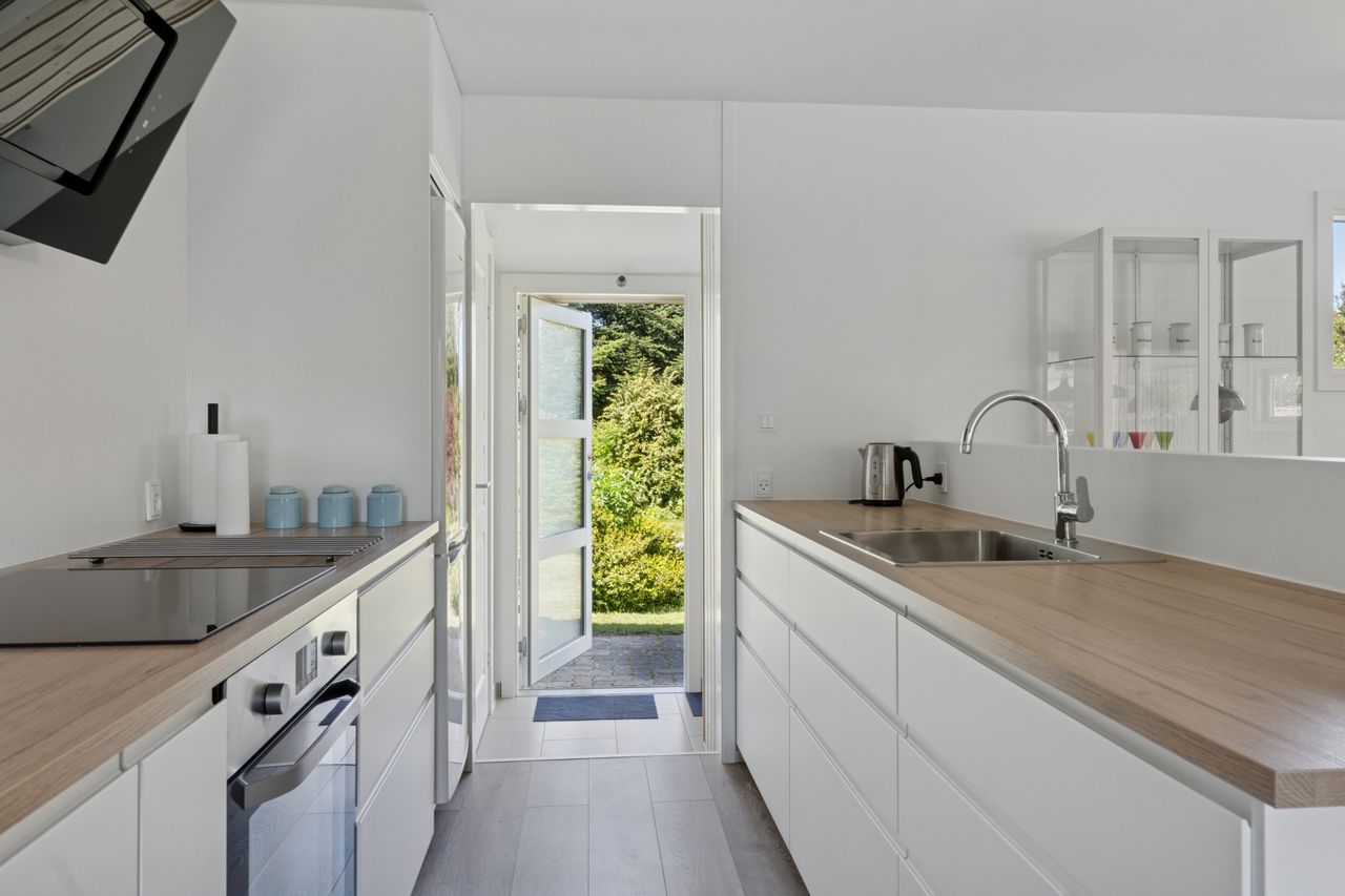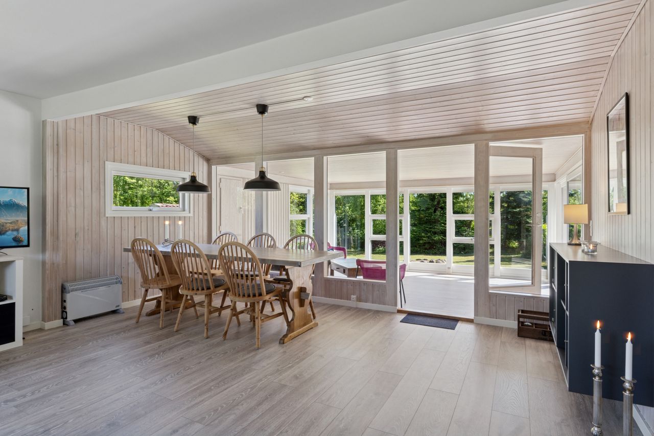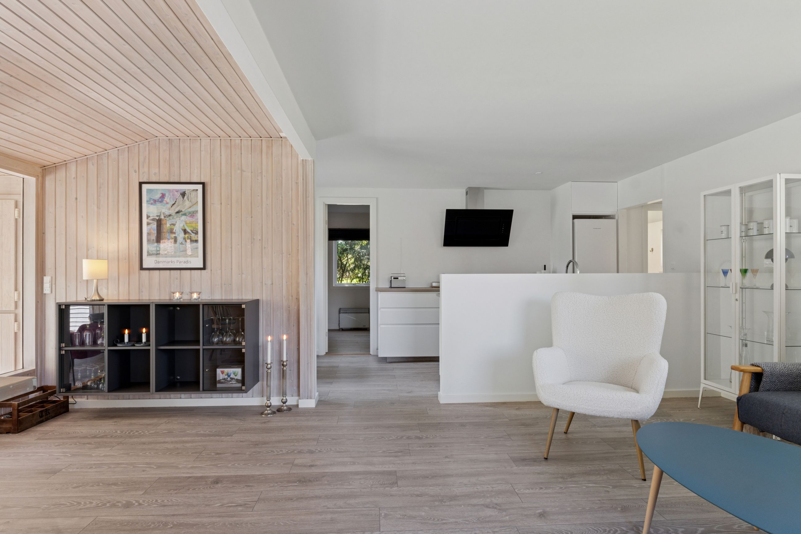 Indenfor venter jer et yderst flot indre, der i løbet af de sidste fire år er renoveret. Her er der blandt andet lagt nye smukke gulve, opsat andre lofter, ligesom køkkenet og badeværelset også har fået en tur. Køkkenet og stuen er fordelagtigt i åben forbindelse, så I kan bruge tiden i hinandens selskab på tværs af madlavning og samtaler. Fra stuen er der dør ud til den lyse ekstra stue med et skønt lysindfald, der er det oplagte sted at opholde sig de sene aftentimer. Sommerhuset har yderligere et godt soveværelse samt et lækkert badeværelse med bruseniche.