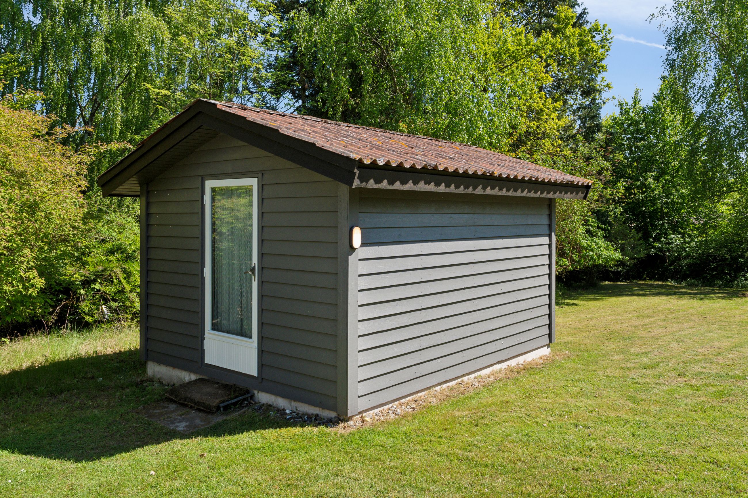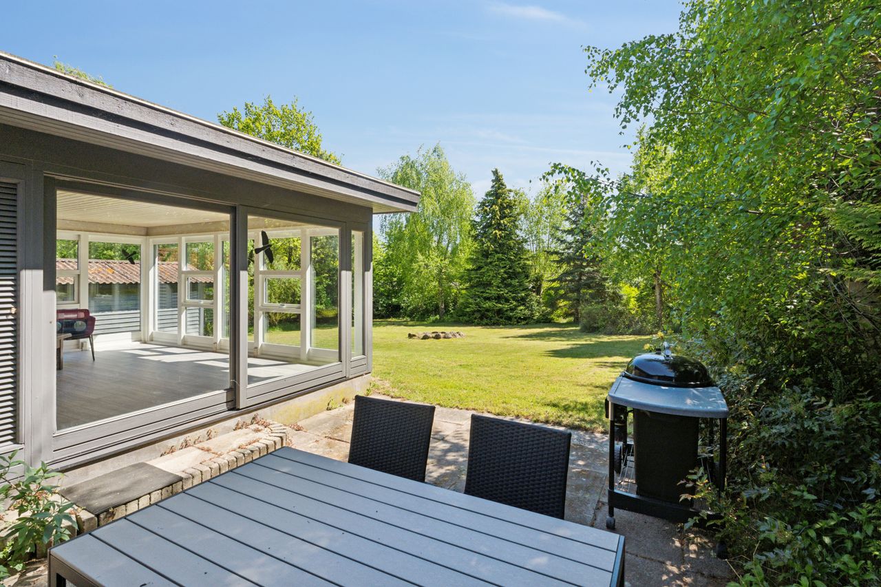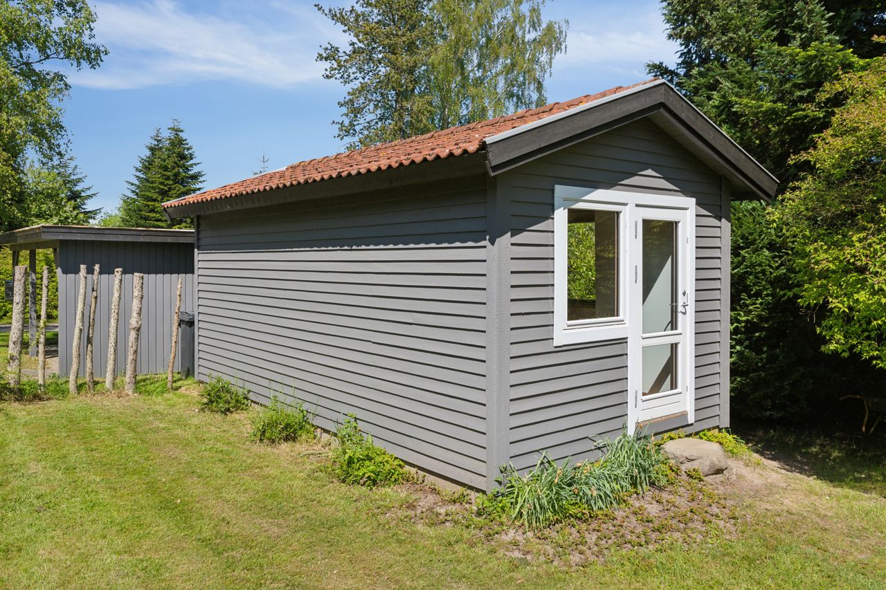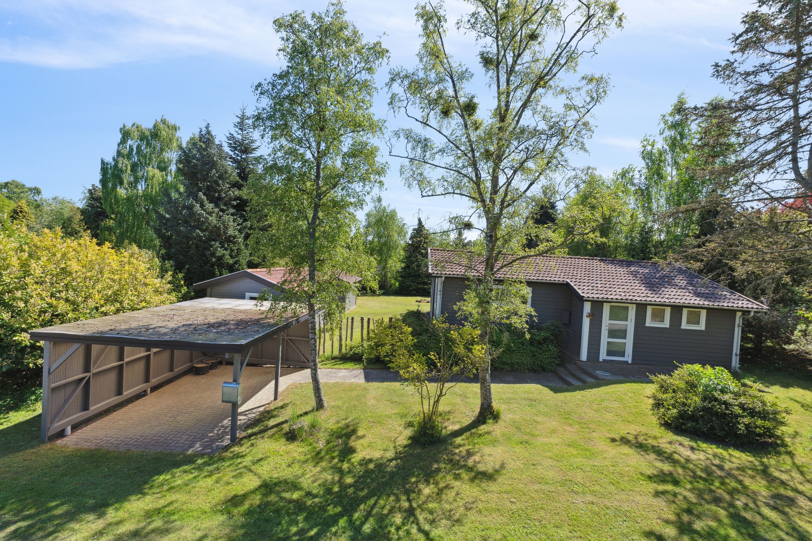 Huset ligger i et roligt og naturskønt område, hvor I med garanti vil kunne opleve det rige dyreliv med fugle og hjorte på tæt hånd. Sommerhuset er velholdt og er i løbet af de sidste tre år blevet malet, ligesom nogle af dørene og vinduerne er blevet udskiftet. Grunden omkranses af høje træer, så I dermed kan opholde jer helt ugeneret, når I bruger tiden udendørs. Her er der plads til havemøblerne på terrassen, mens græsplænen indbyder til leg og sjove stunder.