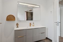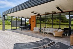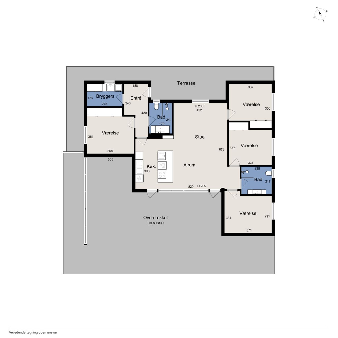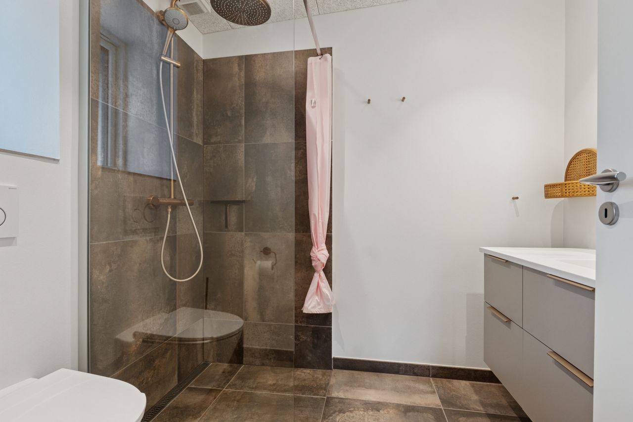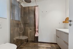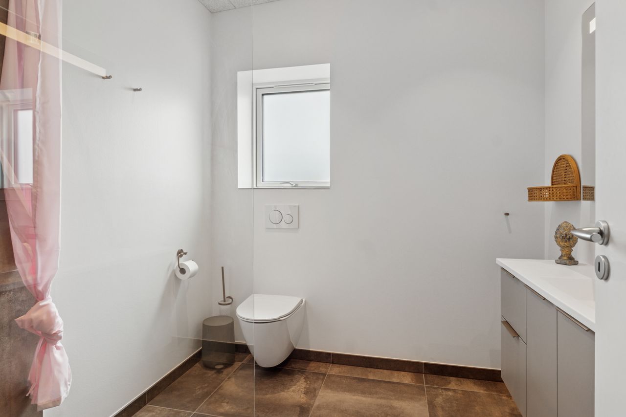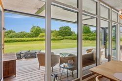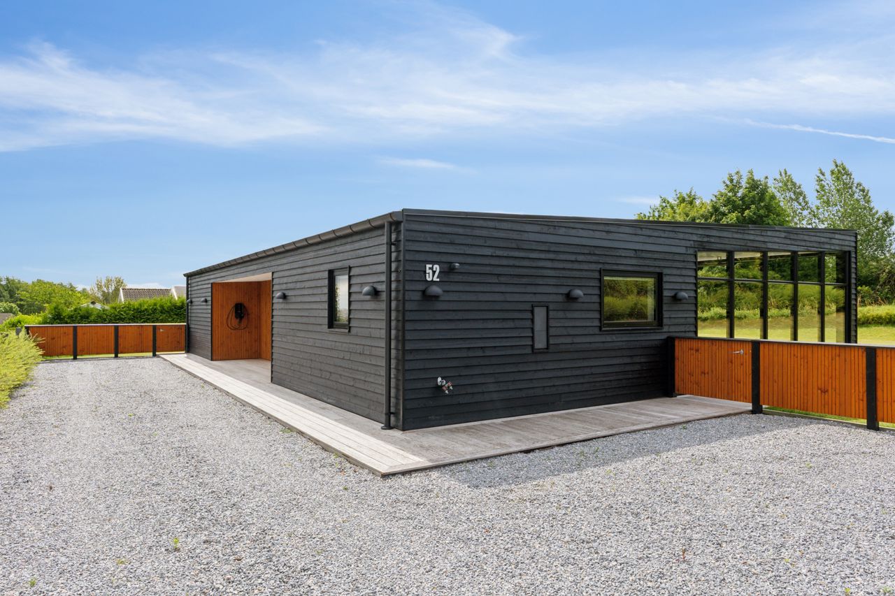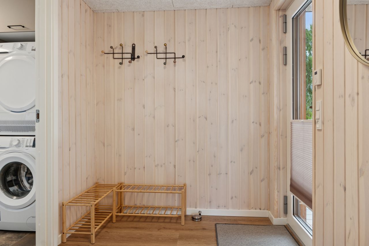 Tømrermesteren har kræset for detaljerne både ude og inde. Indenfor får du eksempelvis luft til vand varmepumpe, der skaber gulvvarme overalt, luft til luft varmepumper i værelserne, der skaber aircondition, samt et blødgøringsanlæg til vandet. Planløsningen byder på 120 m2 og rummer et bryggers, to badeværelser med flotte klinker samt fire værelser til store og små. Fritidshusets hjerte er det skønne køkken-alrum, som ligger i åben forbindelse til stuen, hvilket skaber et sammensmeltet opholdsmiljø. Bemærk især de moderne og luksuriøse tilvalg såsom køkkenø, indbygget kaffemaskine, vinkøleskab, Quooker, akustiklofter og elpejs. Om sommeren er det oplagt at åbne dørene til terrassen og forene ude og inde.