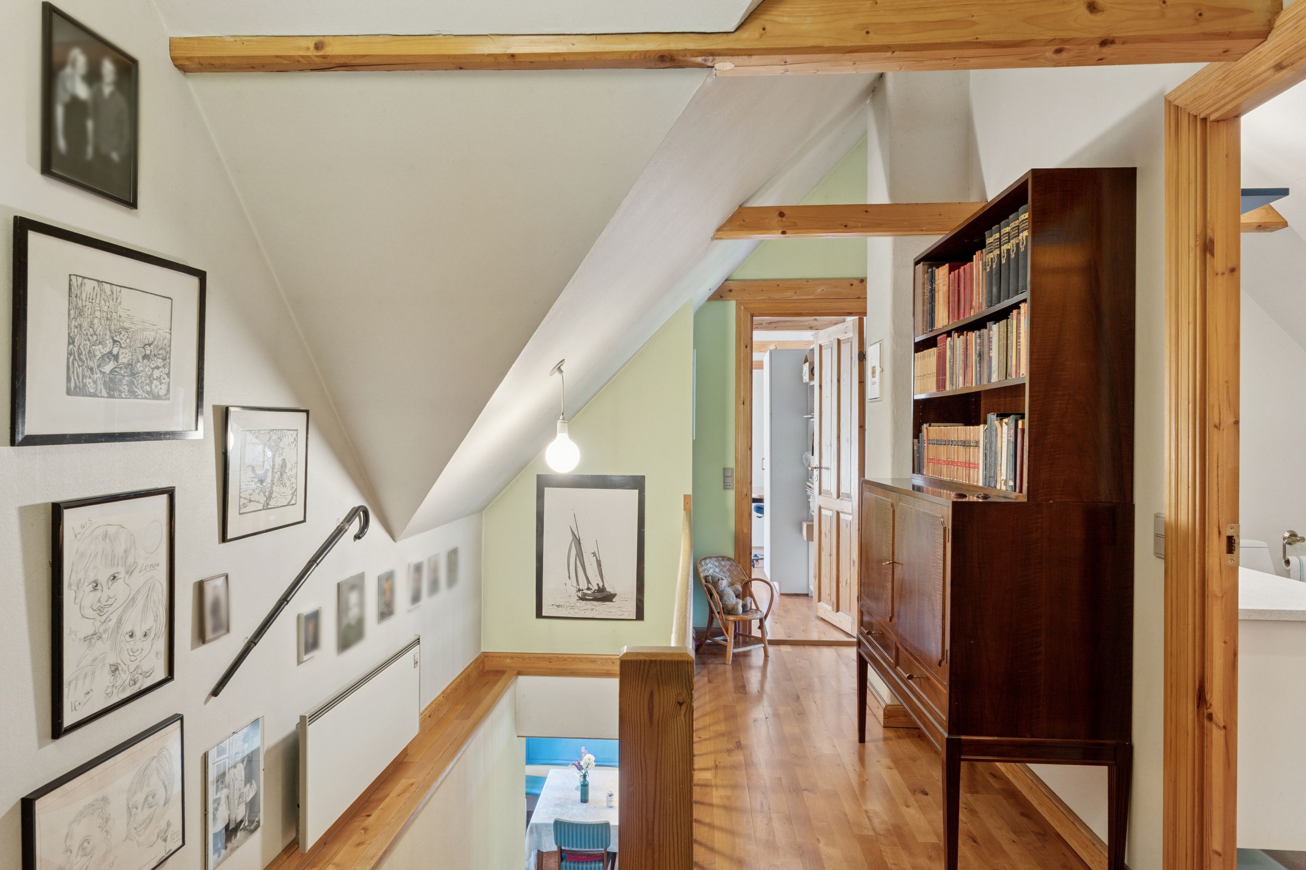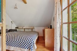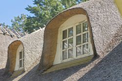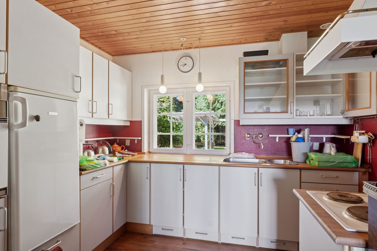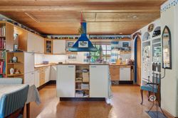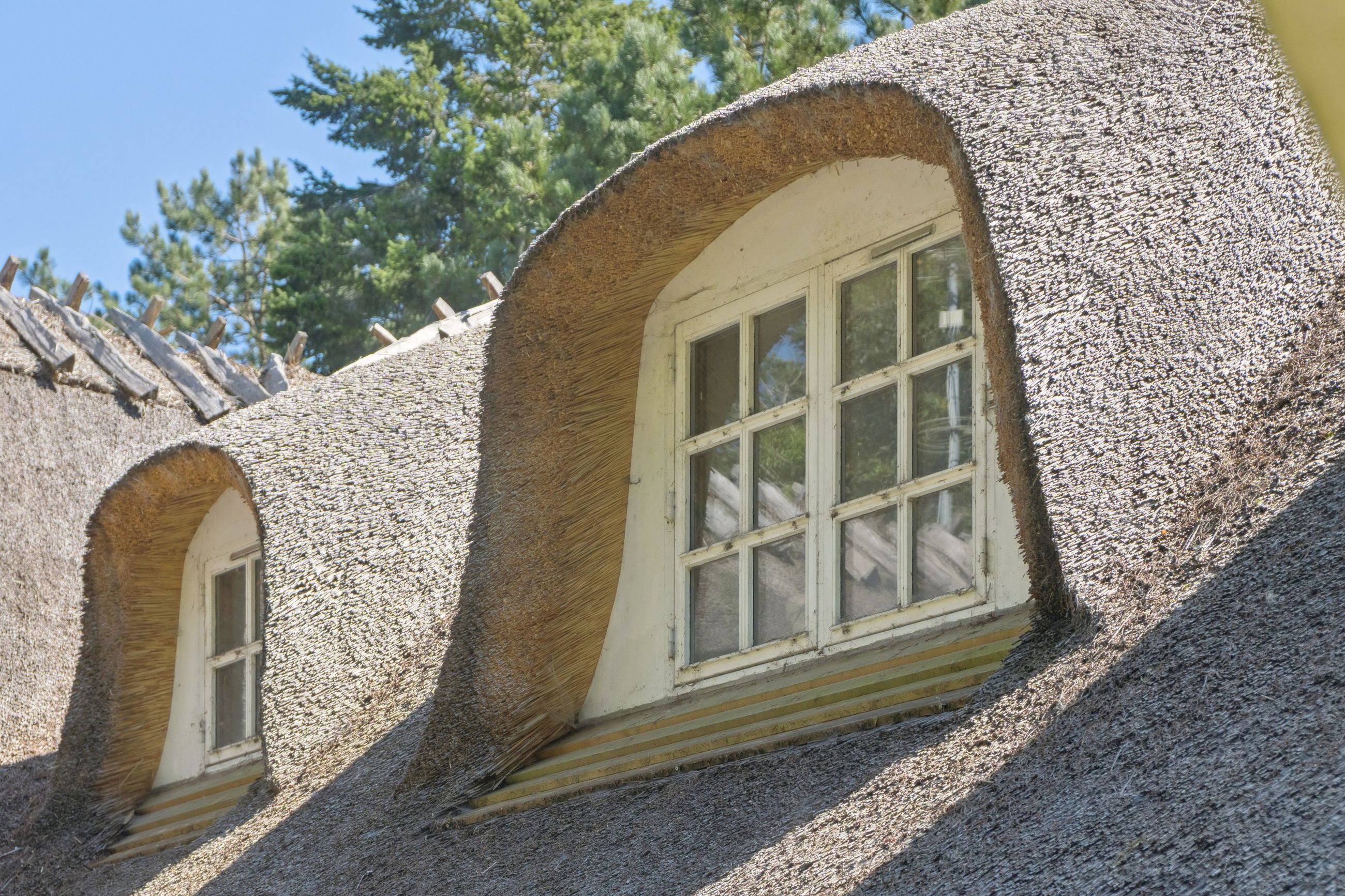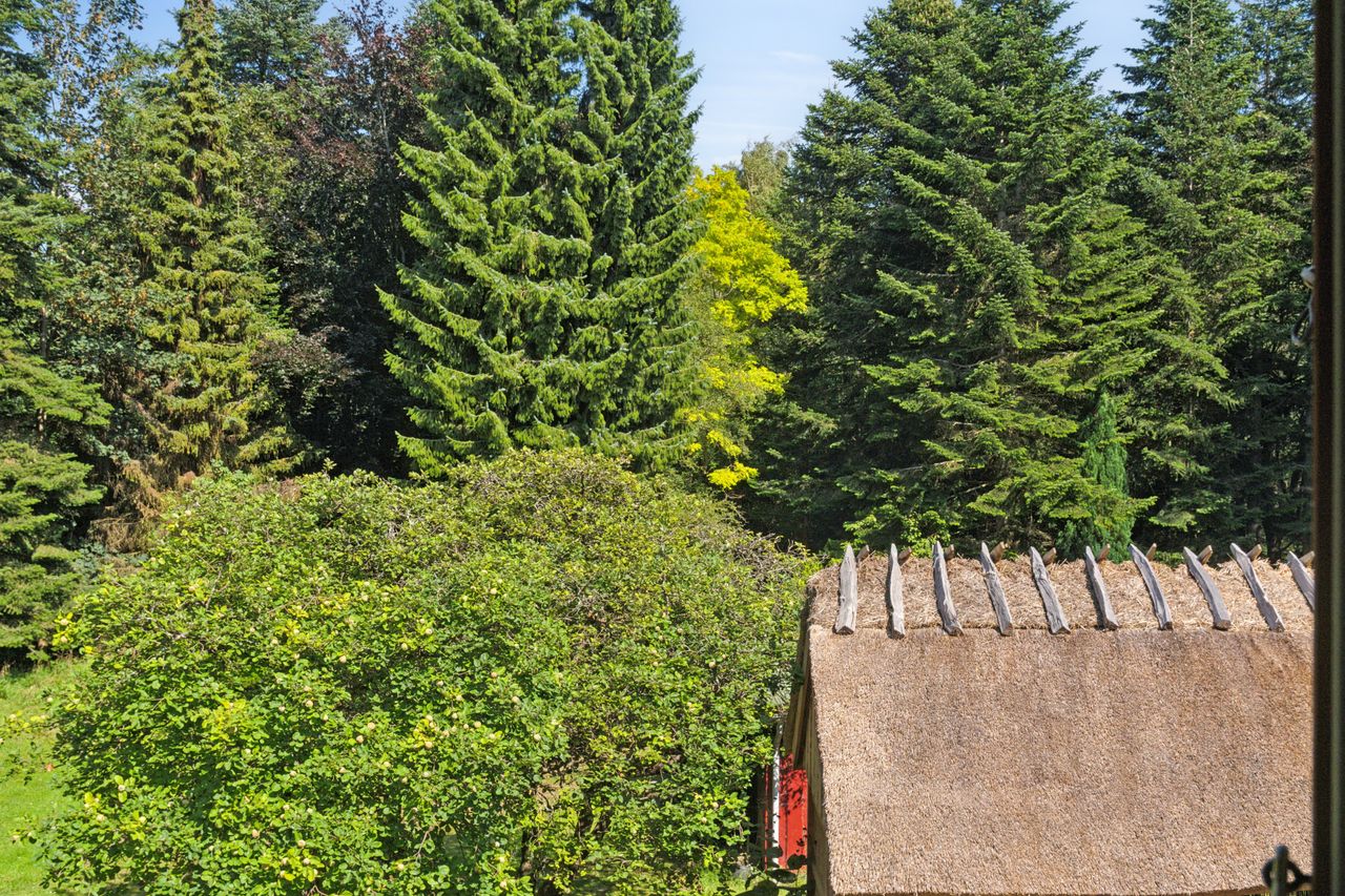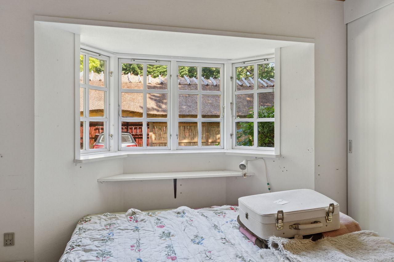 De originale detaljer og den herlige bondehusstil lever i bedste velgående, hvilket blandt andet ses på sprossevinduerne, de buede kviste og stråtaget, som i øvrigt blev fornyet så sent som i 2022. Inden døre er rammerne i overensstemmelse med husets ydre, og detaljegraden er høj.