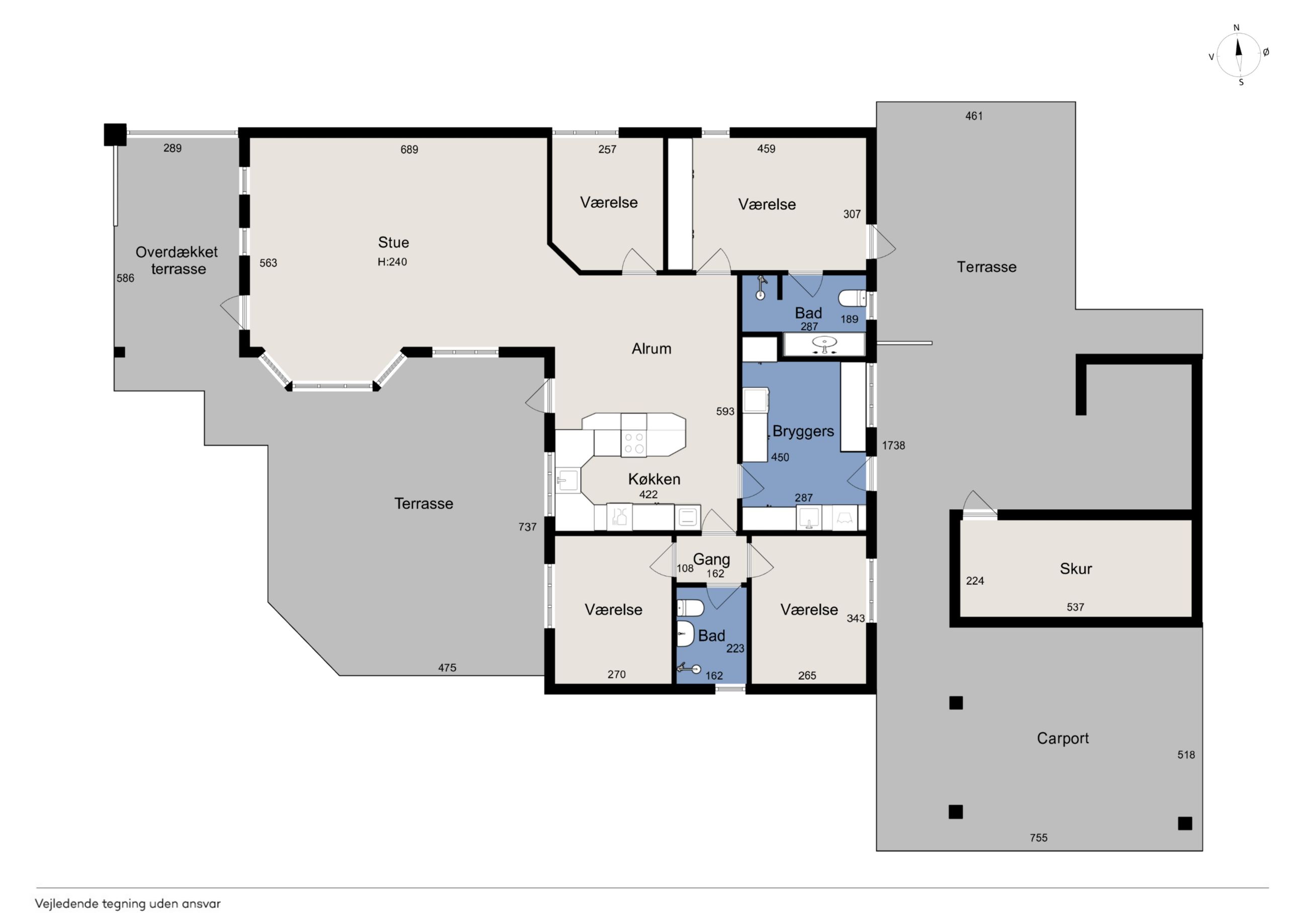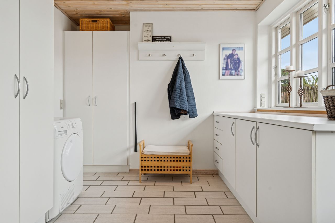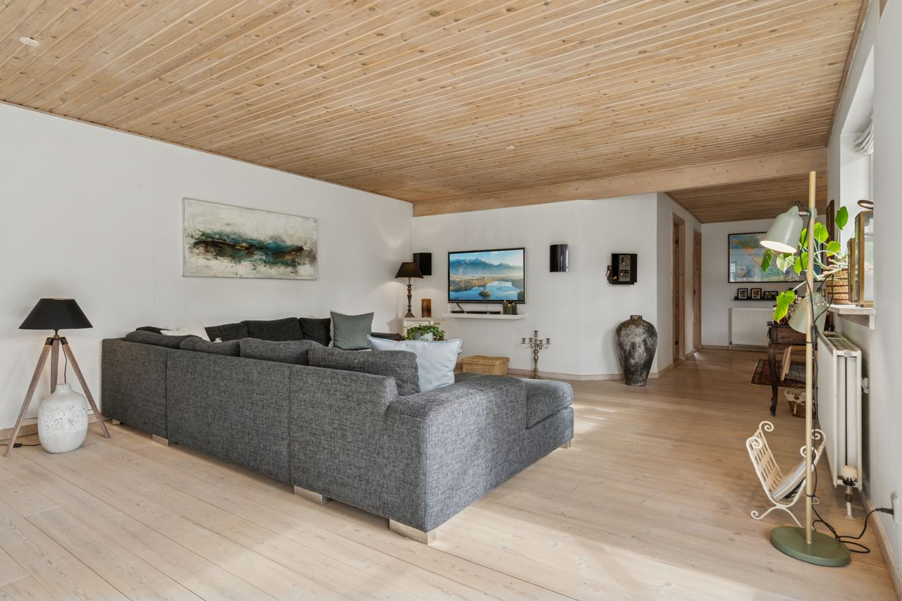 Boligen rummer en separat børneafdeling, hele fire store værelser, et lækkert bryggers med masser af skabsplads samt flere fleksible indretningsmuligheder, hvis du ønsker at opdatere eller tilpasse huset dine behov.