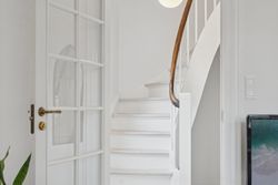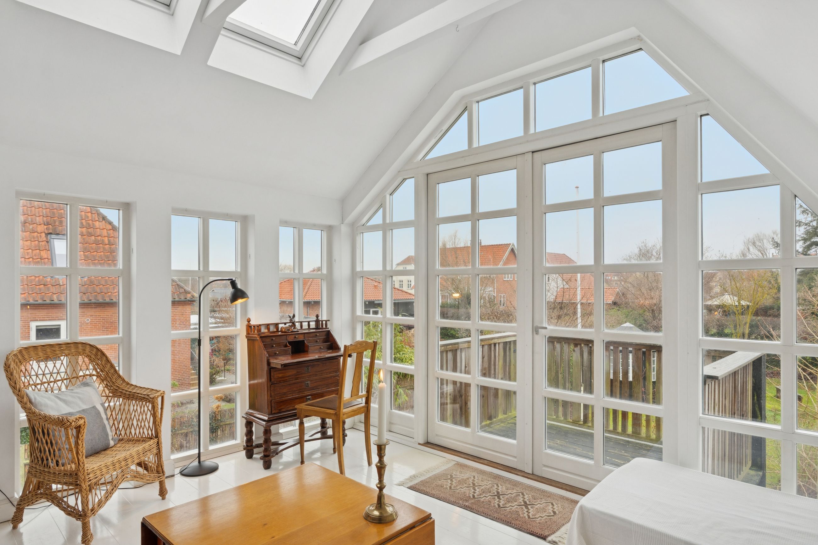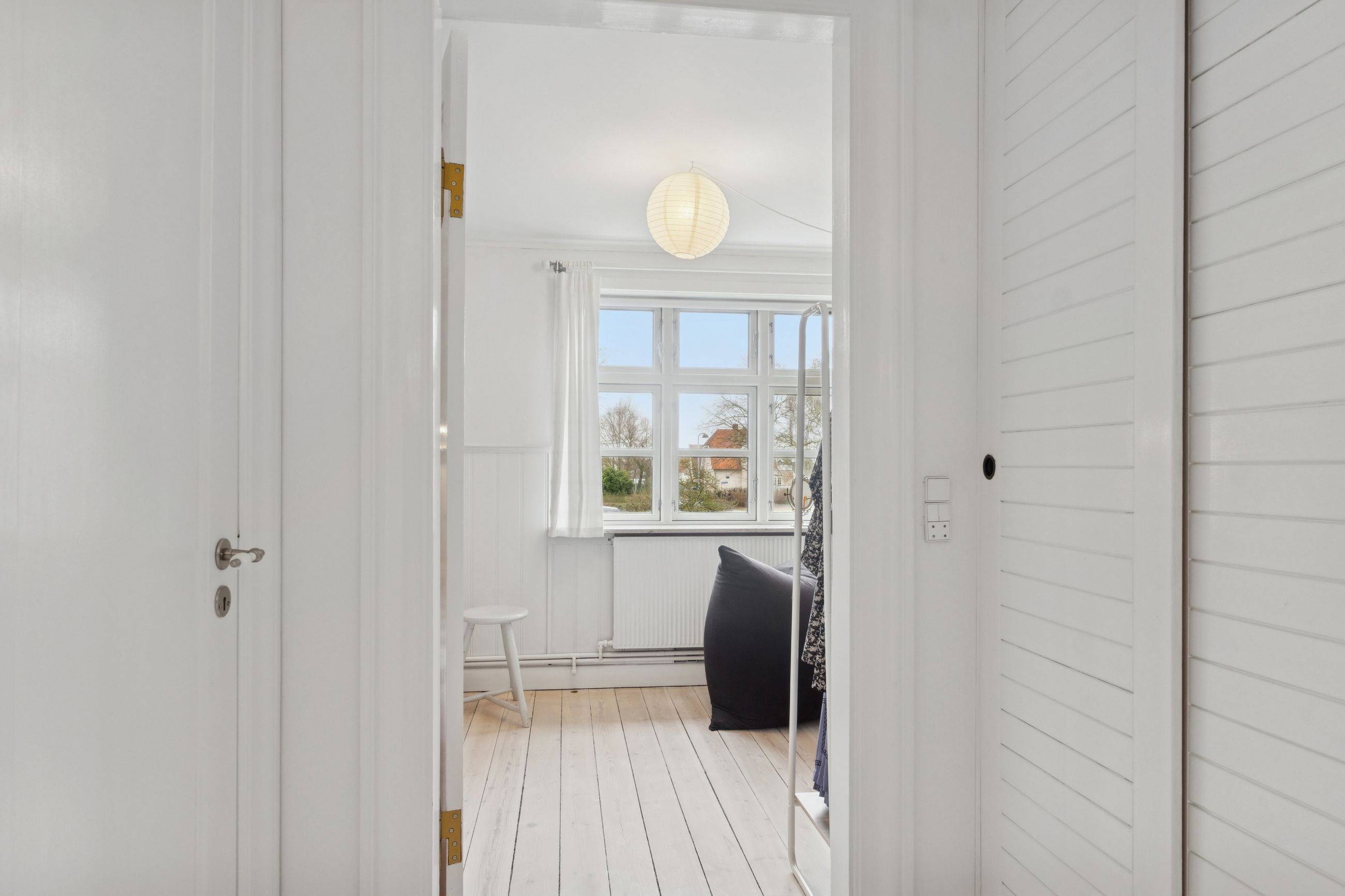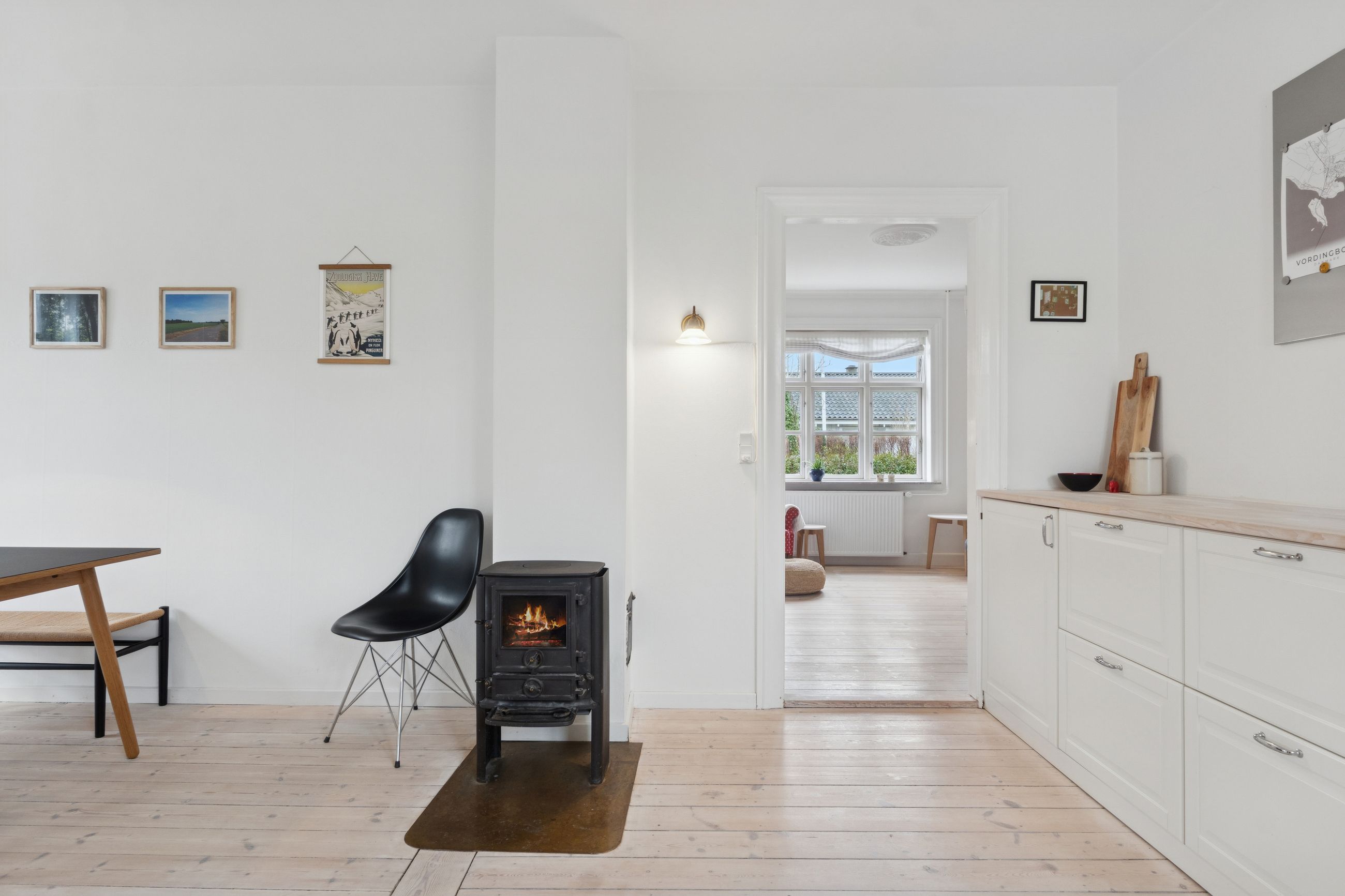 De fantastiske lysindfald er noget, I straks får øje på, når I kommer til denne tiltalende villa. I den store og markante stue fremhæver dagslyset stukkaturen og loftrosetten sammen med det klassiske plankegulv, som i øvrigt går igen i flere rum. Stuen er istandsat i 2020, og samme år blev køkkenet skiftet. Køkkenet fremtræder nydeligt med hvide fyldningsfronter, der skaber en flot stil til hjemmet, og der er adgang til et viktualierum. De sprossede dobbeltdøre åbner til terrassen.