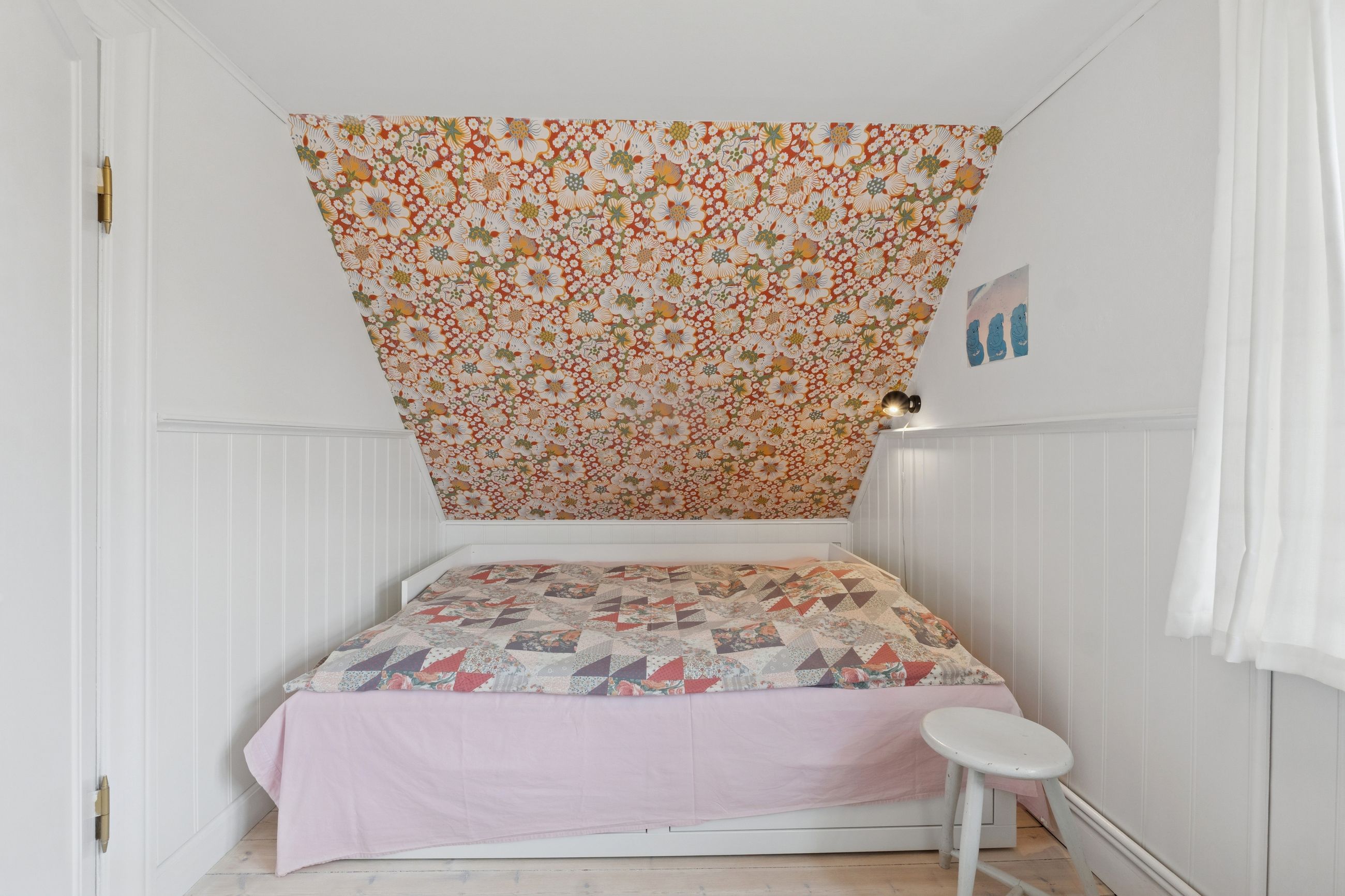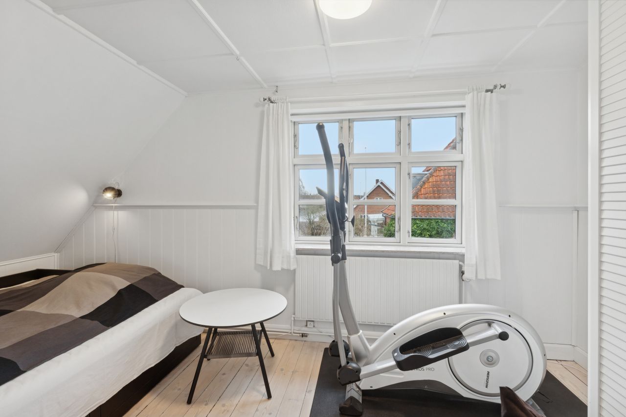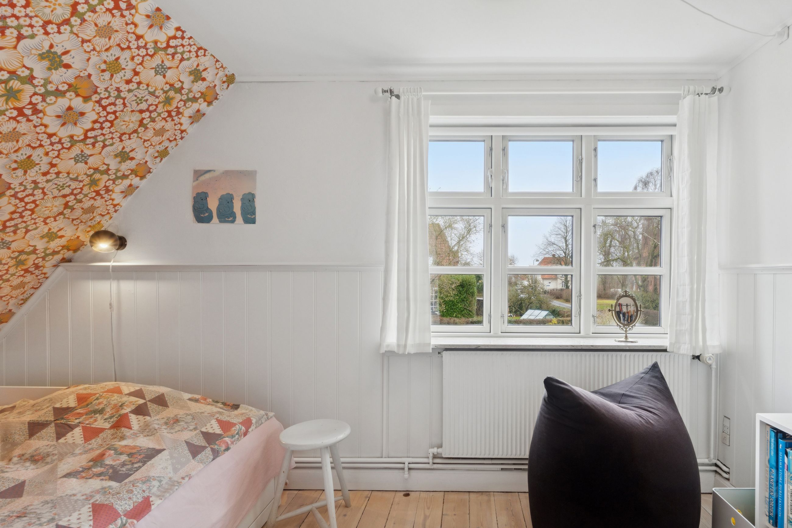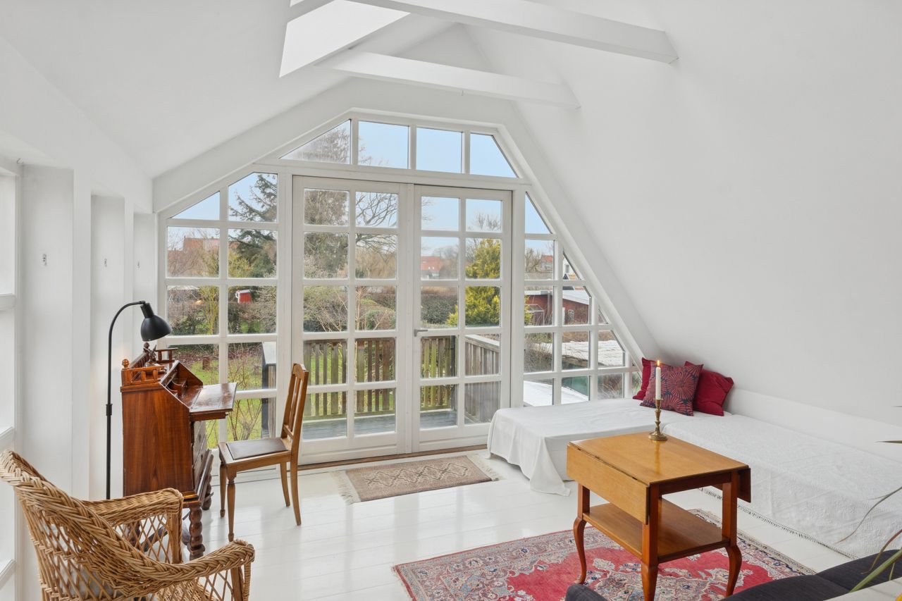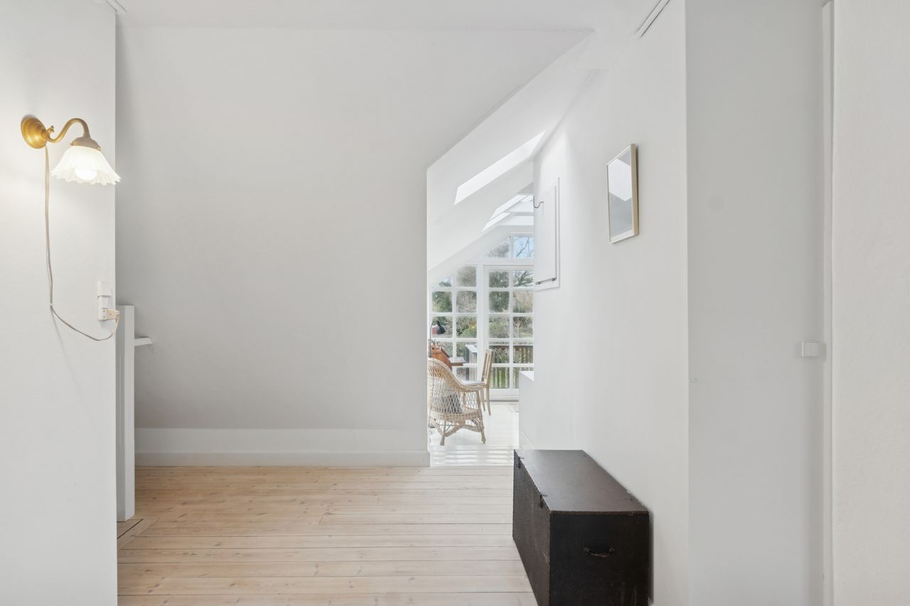 Stueplanet byder også på et praktisk bryggers og et badeværelse med brus. På førstesalen venter de tre værelser sammen med et toilet, og så er der også en ekstra stue, som har udgang til en altan. Stuen har loft til kip med fritlagte bjælker, og der er et tagvindue og et stort glasparti i gavlen.