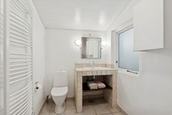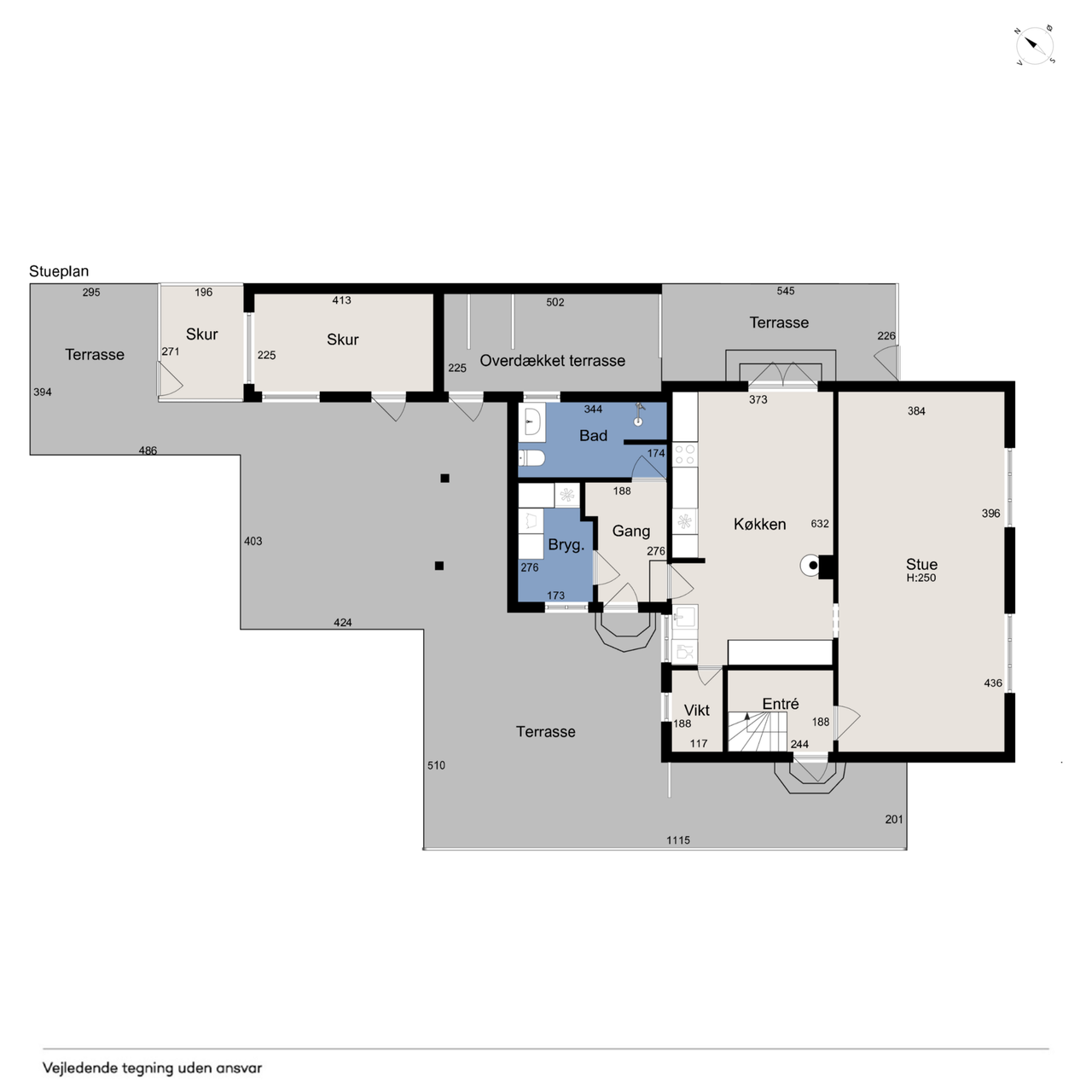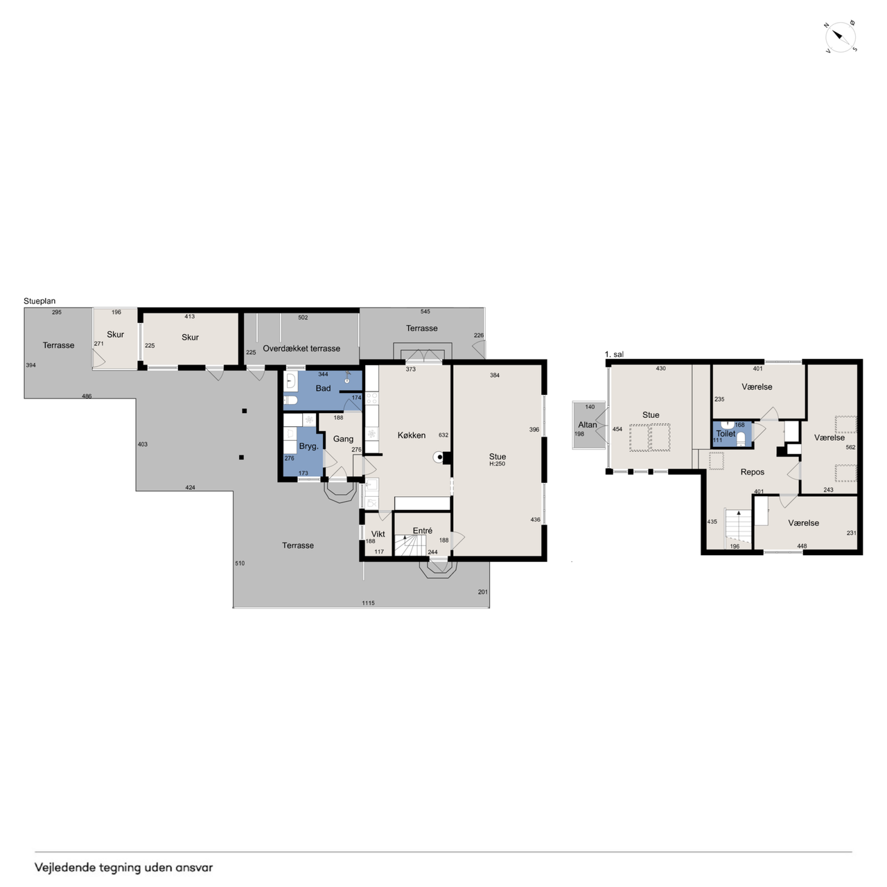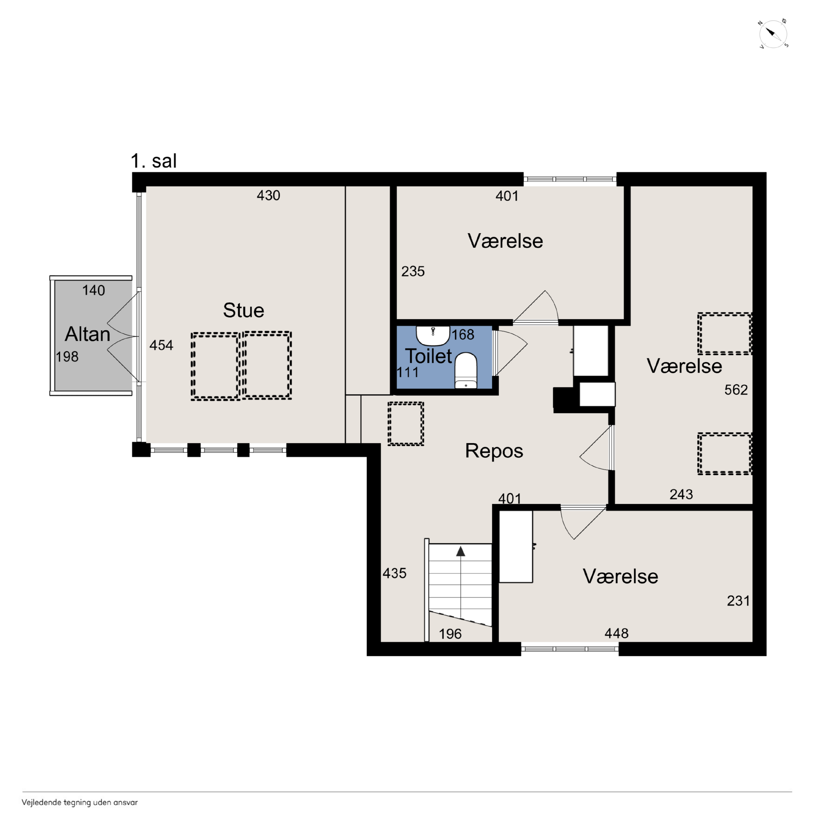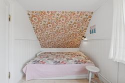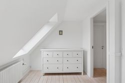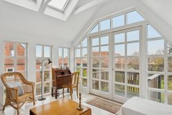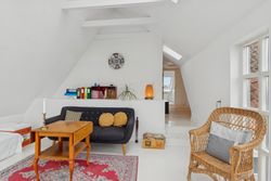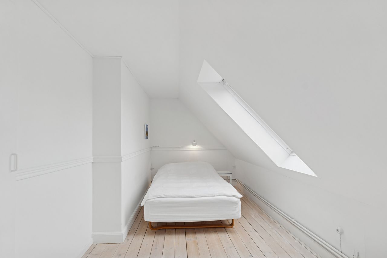 Stueplanet byder også på et praktisk bryggers og et badeværelse med brus. På førstesalen venter de tre værelser sammen med et toilet, og så er der også en ekstra stue, som har udgang til en altan. Stuen har loft til kip med fritlagte bjælker, og der er et tagvindue og et stort glasparti i gavlen.