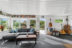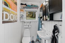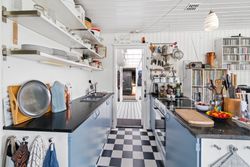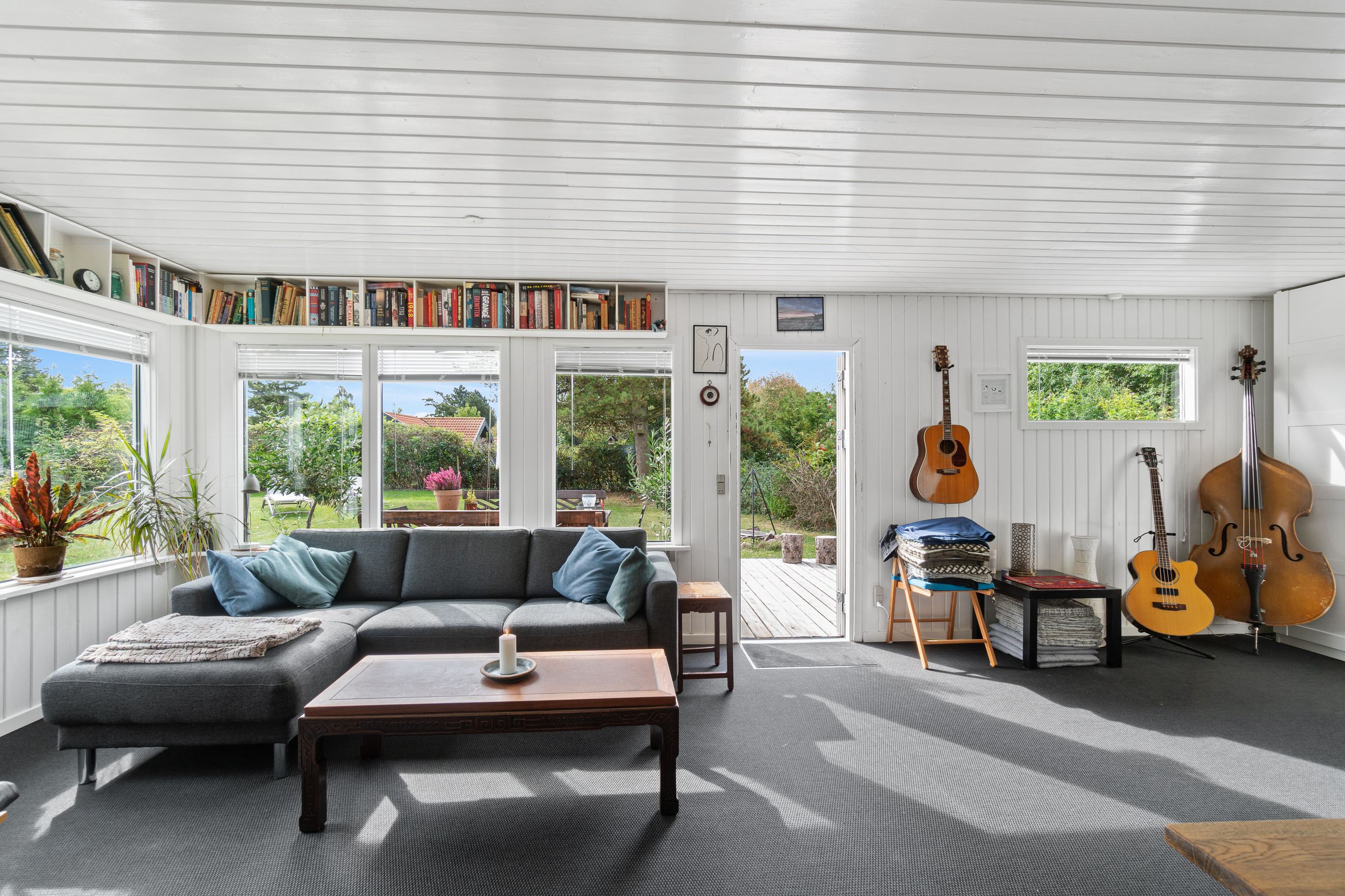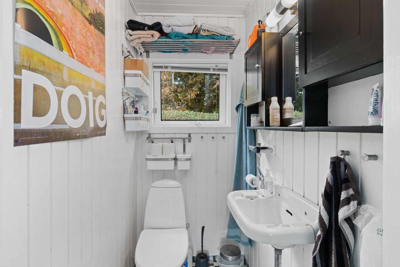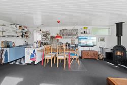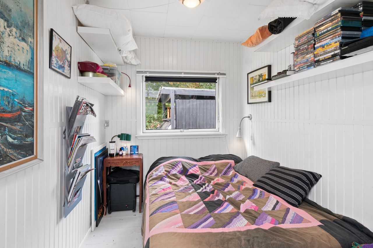 Den klassiske sommerhusstemning fortsætter indenfor, og i det store alrum kan I glæde jer til indendørshygge ved brændeovnen. Der er god plads til både sofasektionen og spiseafdelingen, og så er der også fine rammer om madlavningen i køkkenet. Hertil supplerer den overdækkede terrasse/"udestuen", og endelig får I to værelser, et toilet og et bryggers med en brusekabine fra 2021.