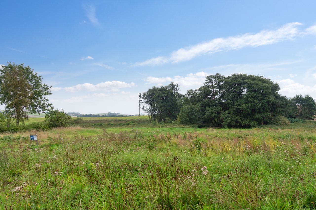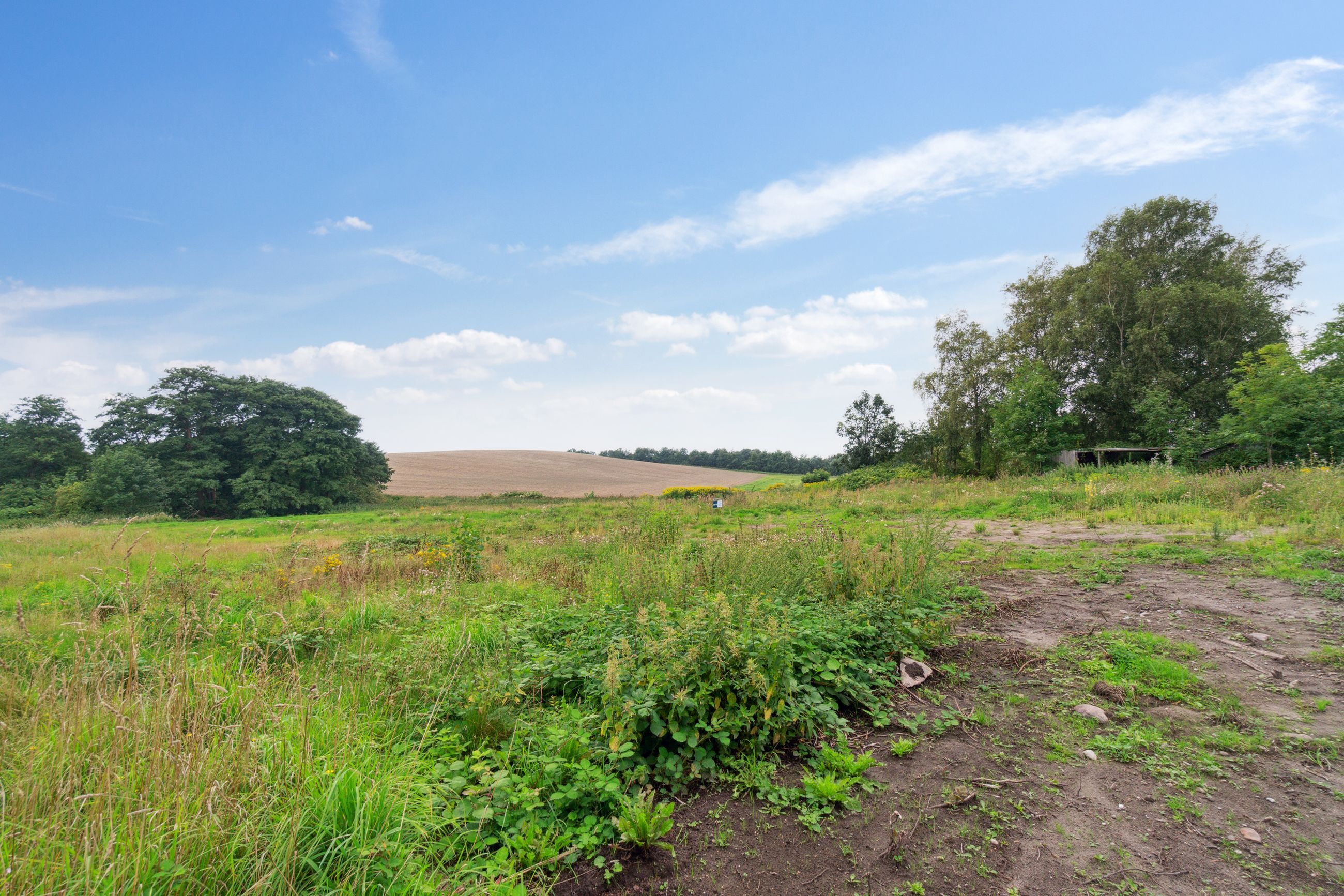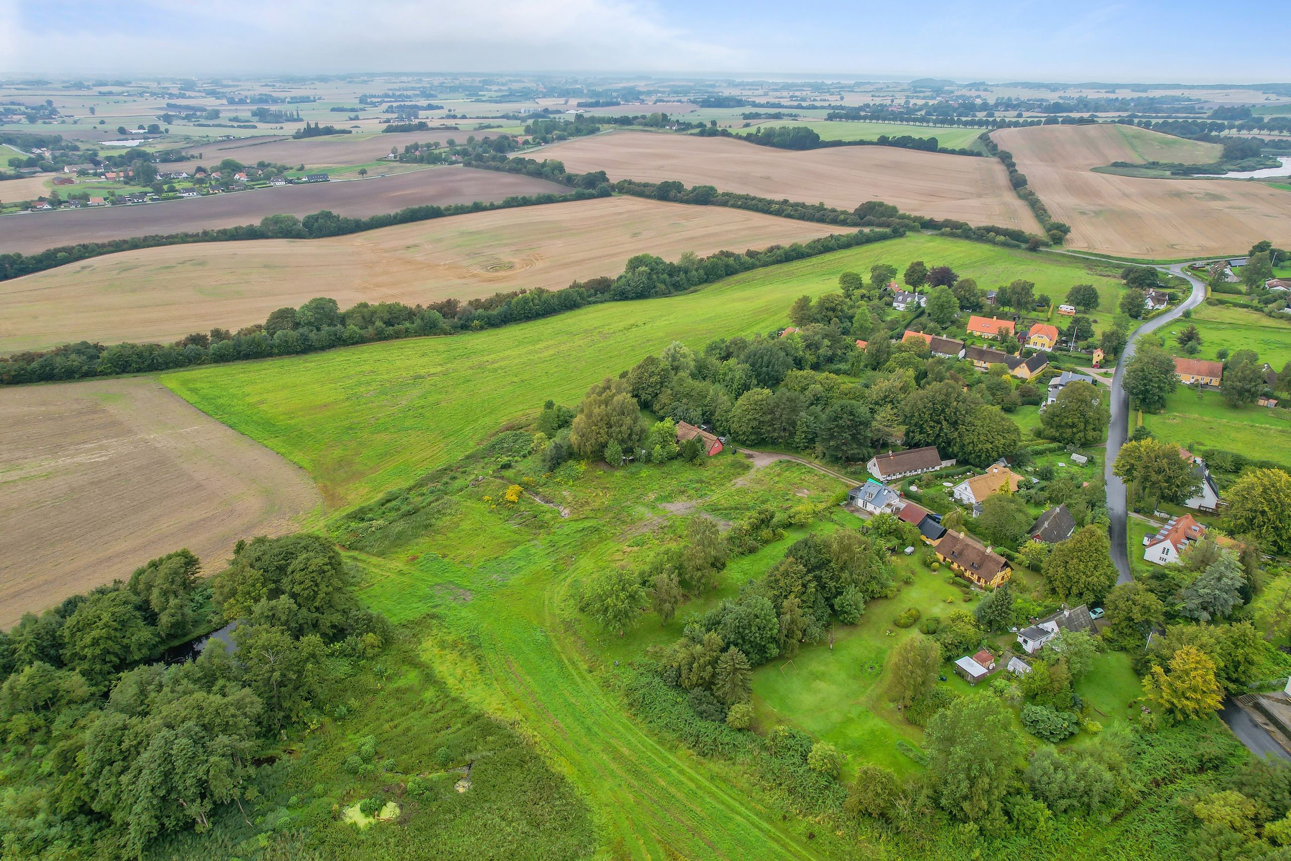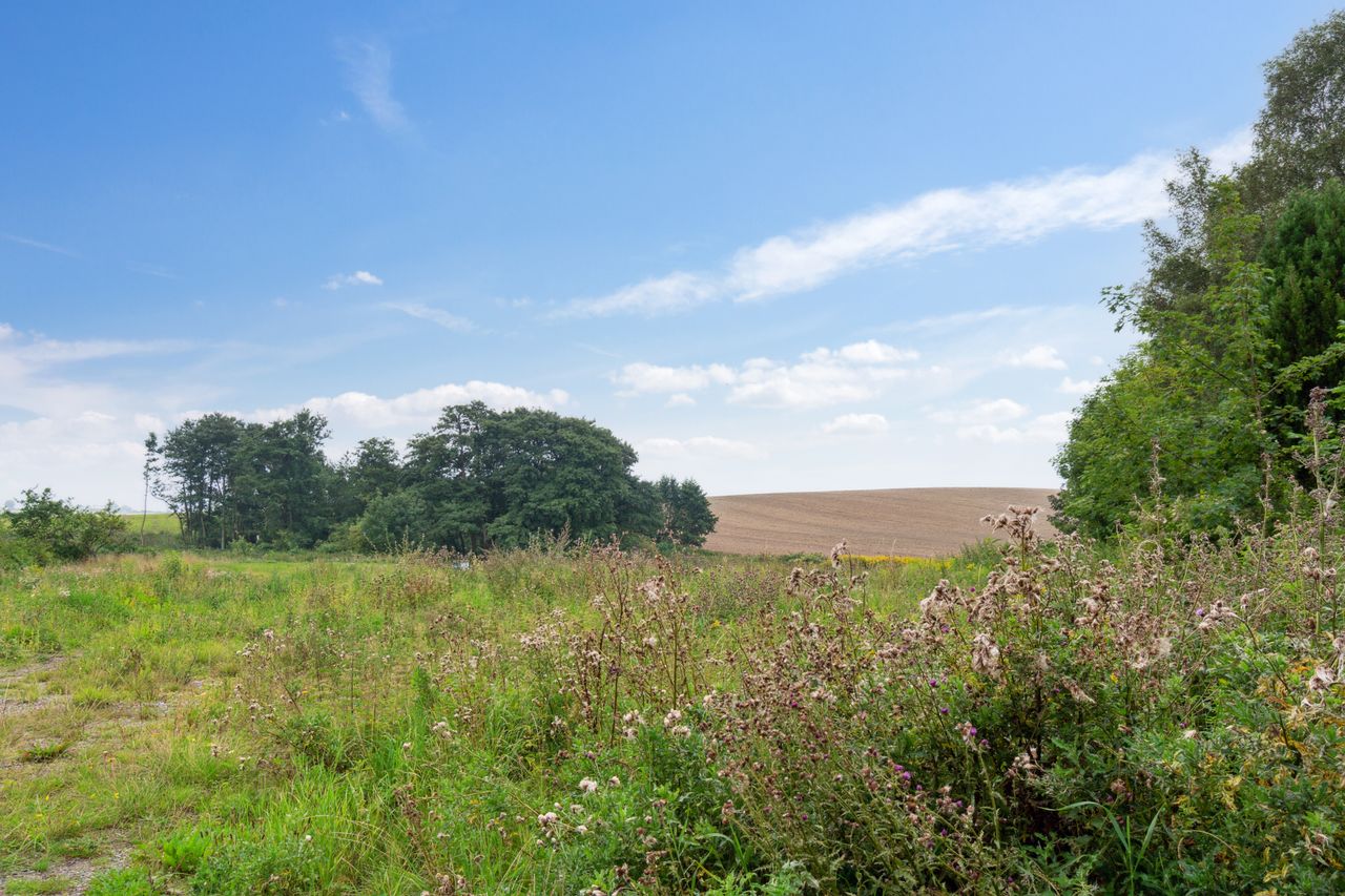 Grunden ligger højt og tilbagetrukket, næsten for enden af en blind stikvej, hvilket sikrer både udsigt og privatliv. Fra grunden er der frit kig ud over det smukke, bølgende landskab, hvor naturen folder sig ud i alle retninger og inviterer til både ro og oplevelser.