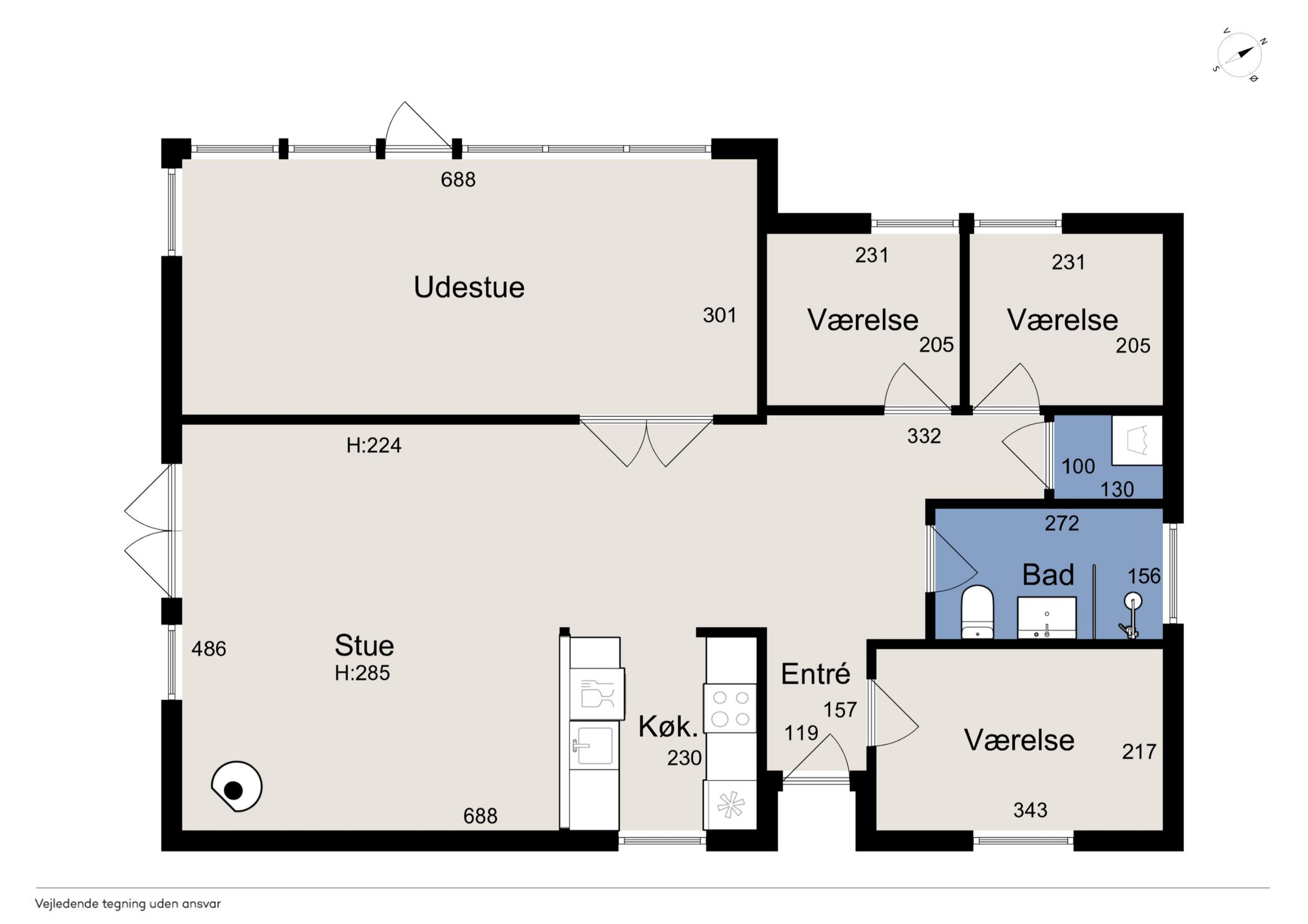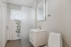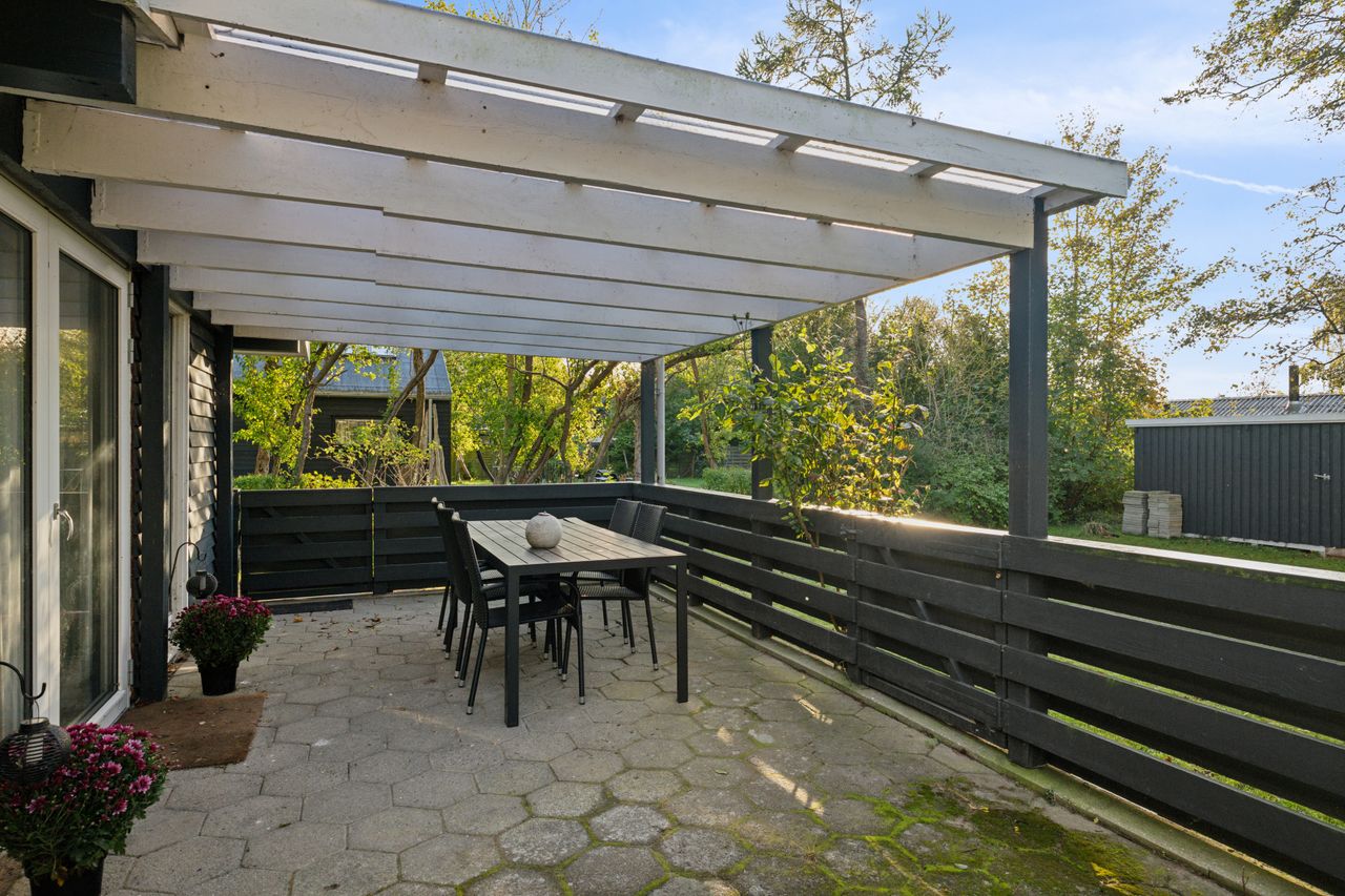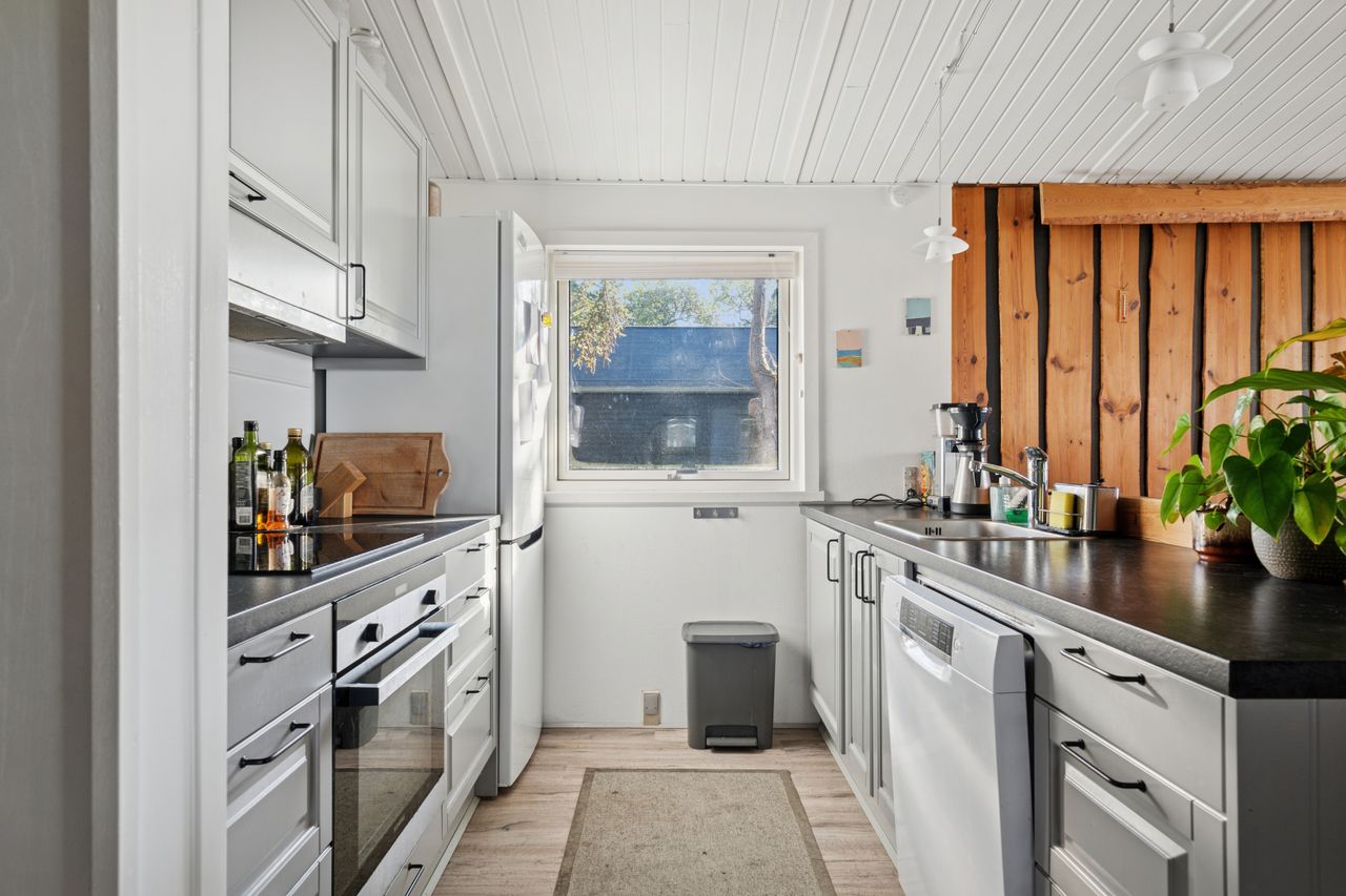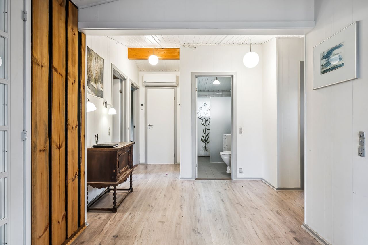 Udestuen er omdannet til endnu et opholdsrum med masser af muligheder – fra filmhygge og afslapning til ekstra sovepladser for gæster eller flere generationer på ferie. Badeværelset er moderne med bruseniche og behagelig gulvvarme, og hele huset fremstår indflytningsklart.