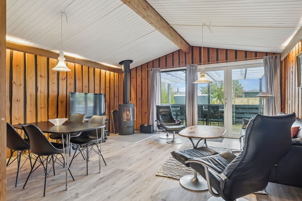 Sommerhusets byder på 104 lyse og veludnyttede kvadratmeter fordelt på tre gode soveværelser, et åbent køkken-alrum med plads til sofa hygge foran den hyggelige brændeovn. Indretningen er lys og venlig med store vinduespartier mod syd, der inviterer både dagslyset og havudsigten helt indenfor – en perfekt ramme for afslapning og nærvær med familie og venner året rundt.