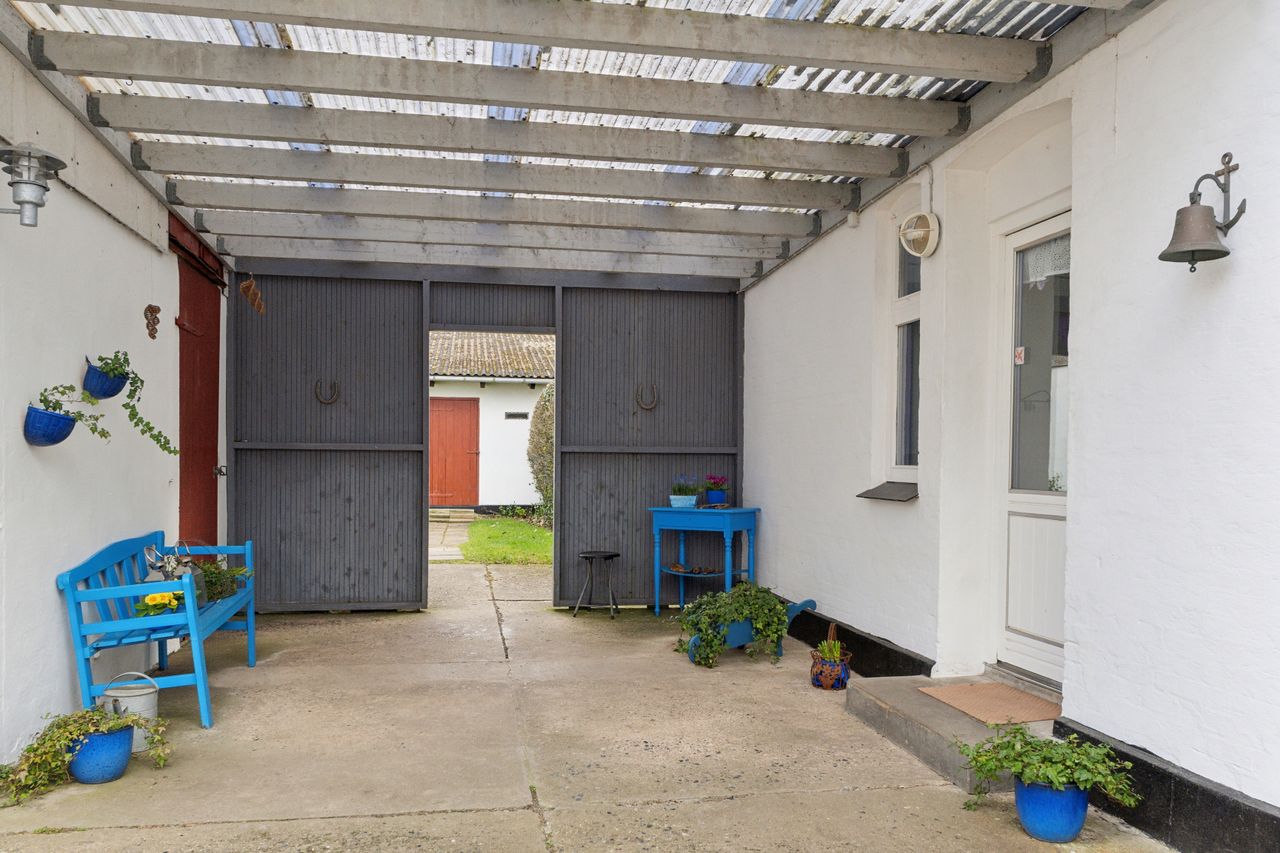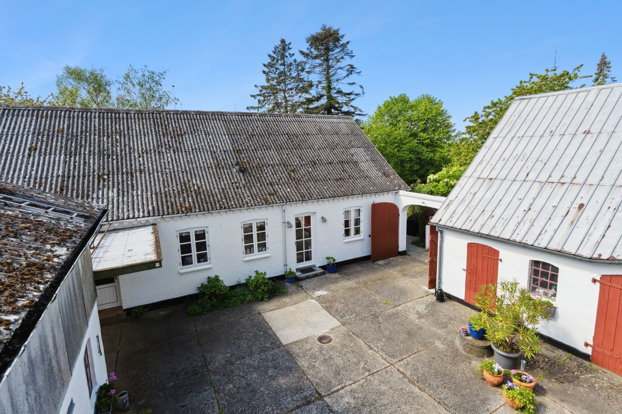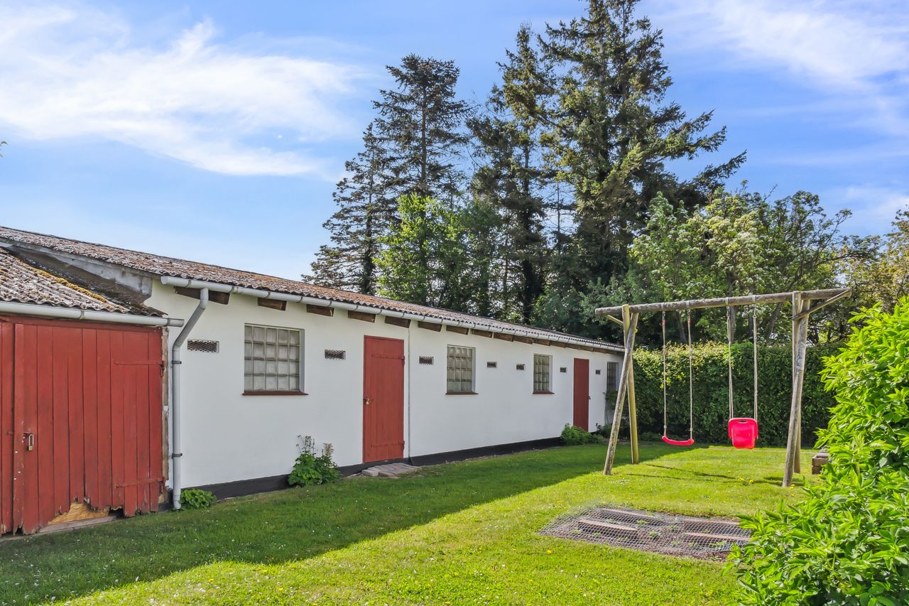 På ejendommens firlængede gård er der et dejligt, lukket gårdmiljø, som indbyder til afslapning, lege og hygge. Ejendommens pæne staldlænger giver både funktionalitet og muligheder for kreative projekter. Her er der også et fyrrum og et isoleret værksted. En separat staldlænge er indrettet med praktisk plads til værksted, hobbyrum eller andre aktiviteter.