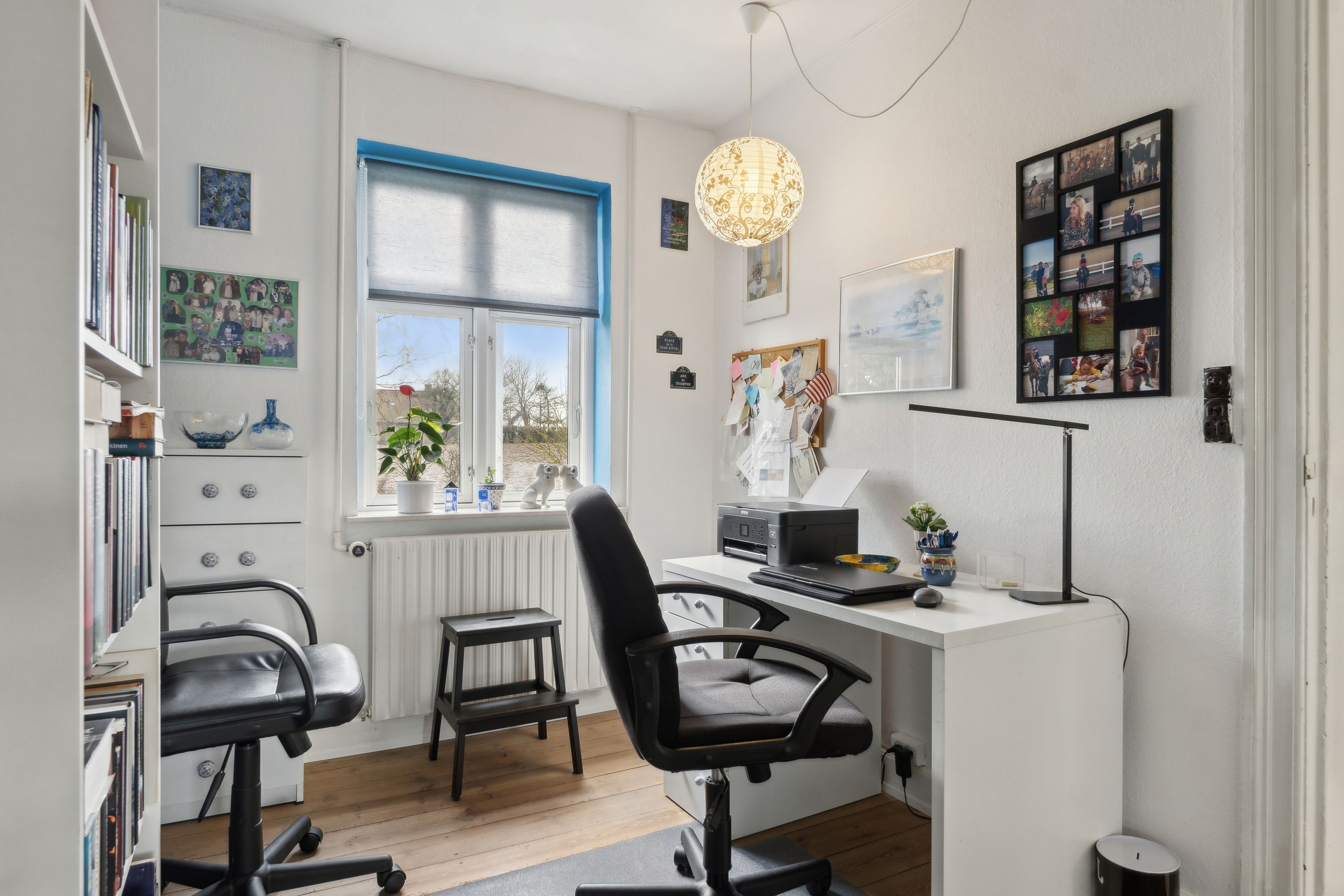 Spisekøkken med gulvvarme, der danner en hyggelig ramme om familiens måltider. Dertil et dejligt soveværelse og to gode børneværelser samt et gennemgangsværelse velegnet til kontor eller måske walk-through. I stuen er der flotte trægulve og et fantastisk lysindfald, der skaber en behagelig atmosfære, perfekt til både afslapning og samvær. I entreen med god plads til sko og overtøj samt et lyst og indbydende badeværelse samt gæstetoilet.