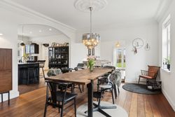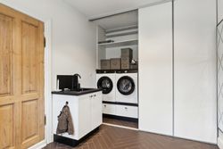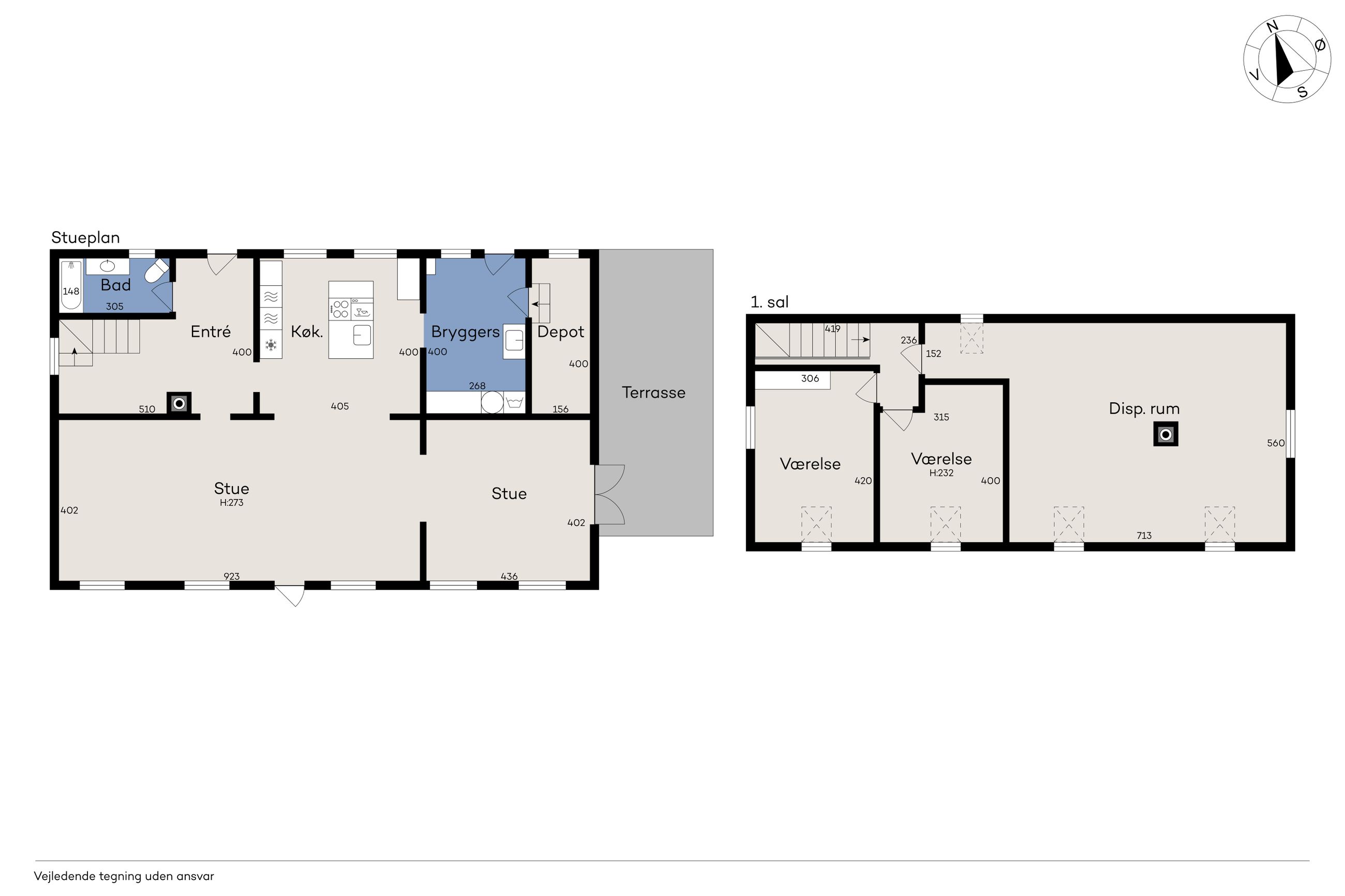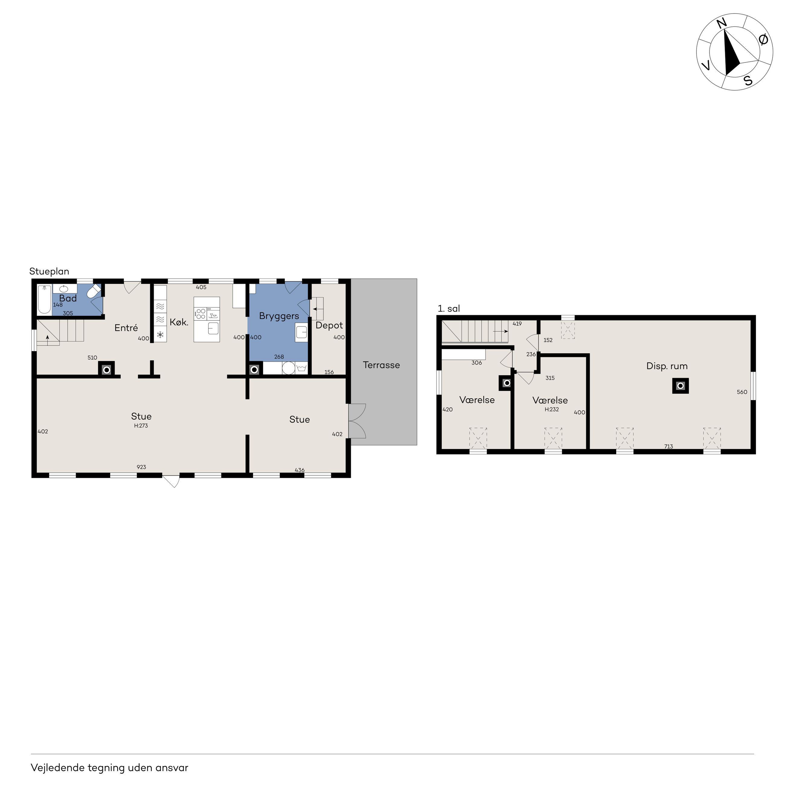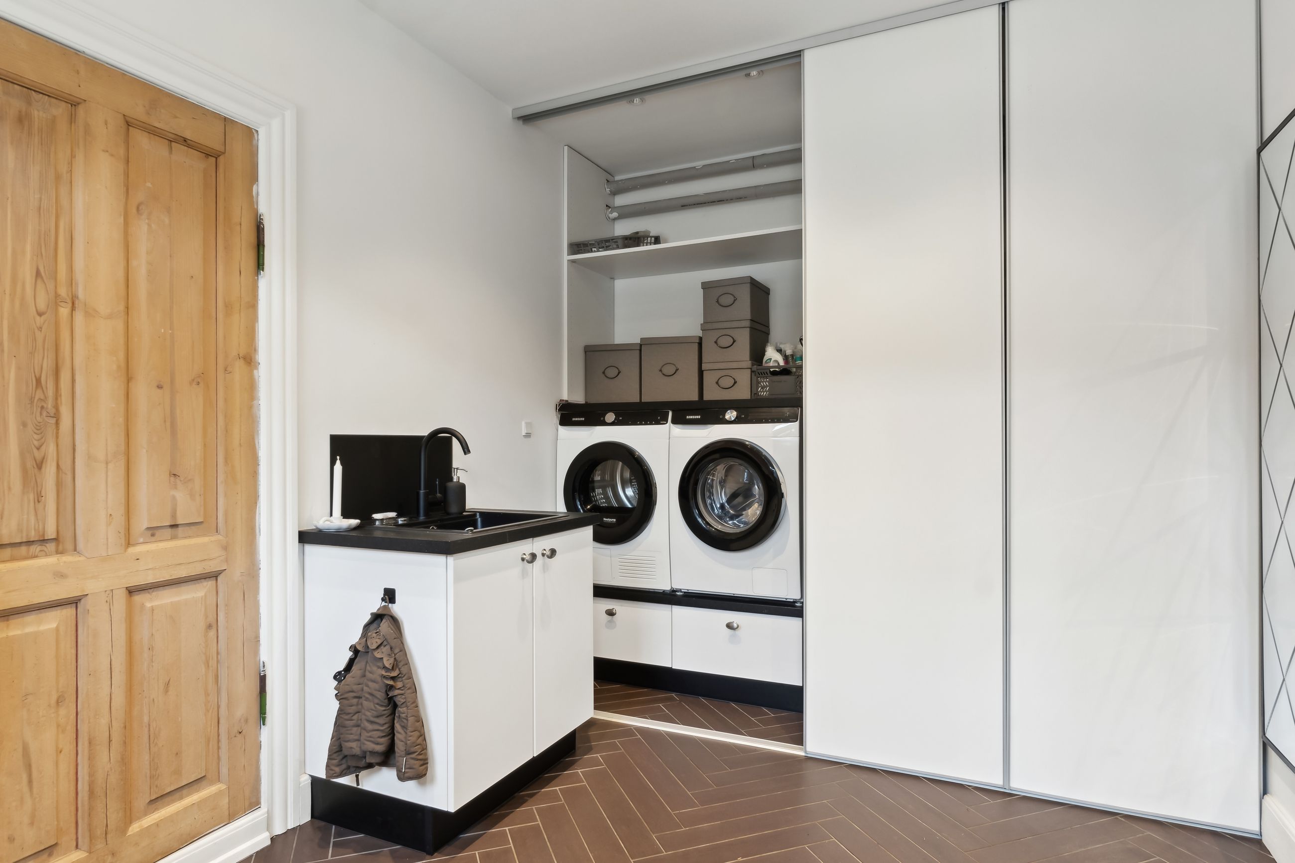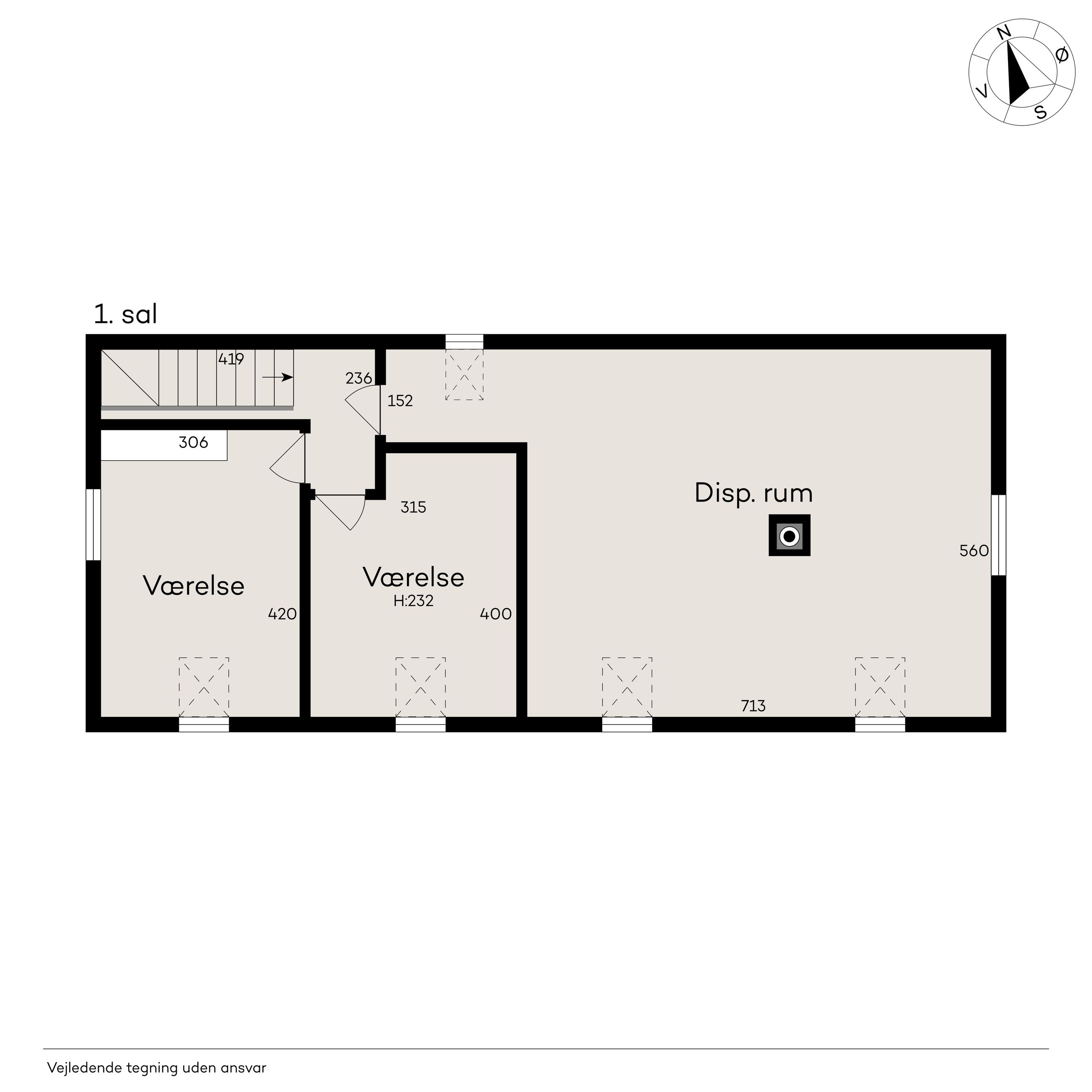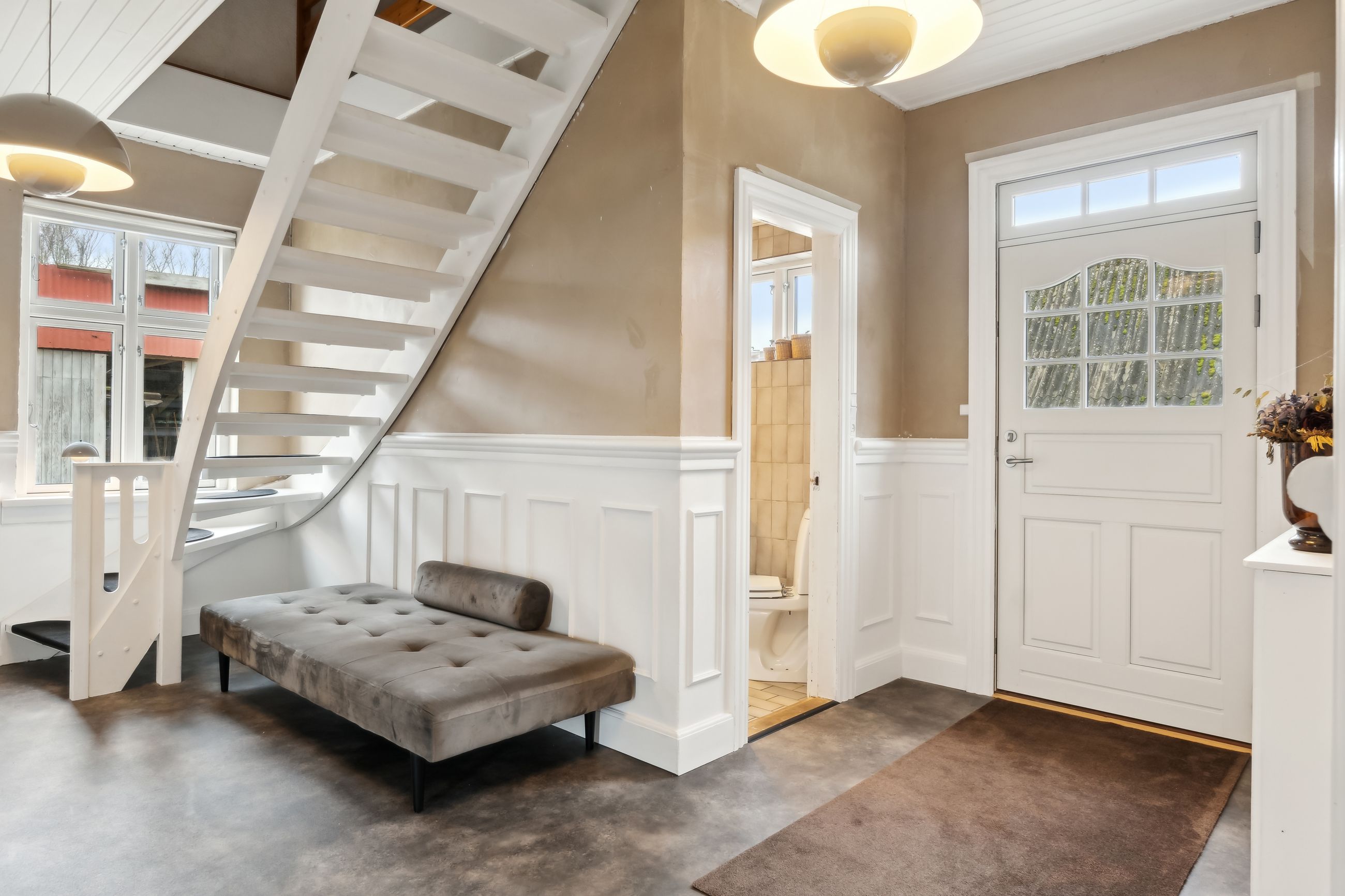 Badeværelset er funktionelt med badekar og gulvvarme, og baggangen rummer gulvvarme samt en praktisk skabsvæg med vaskesøjle samt adgang til et charmerende fadebur og en viktualiekælder. 1. salen byder på to værelser og et stort, uudnyttet loftsrum, der nemt kan indrettes som soveværelse, kontor eller hobbyrum efter behov.