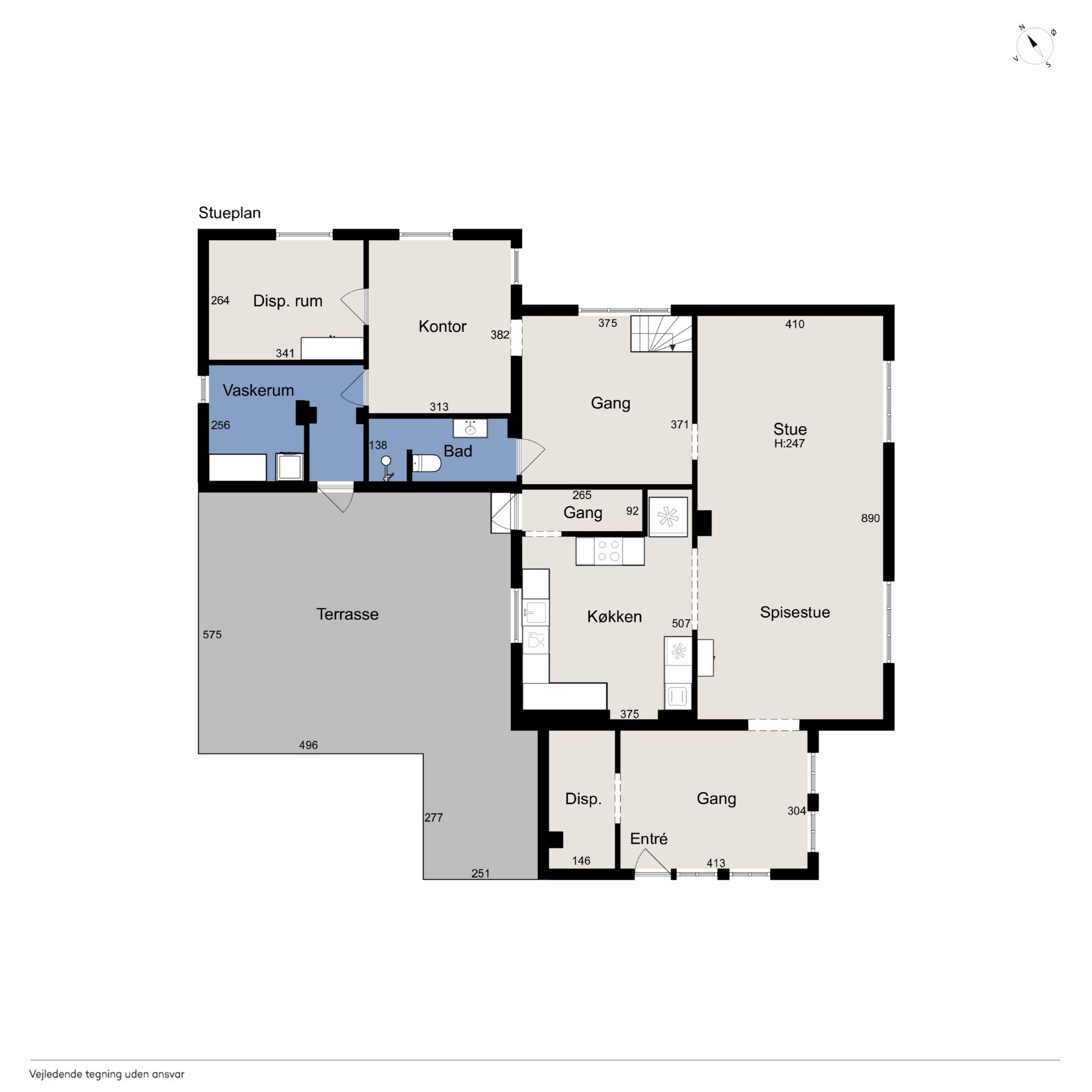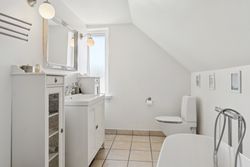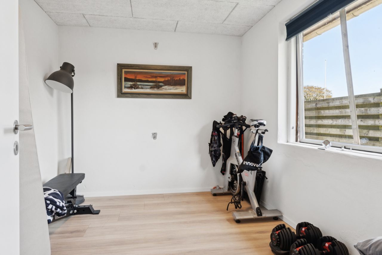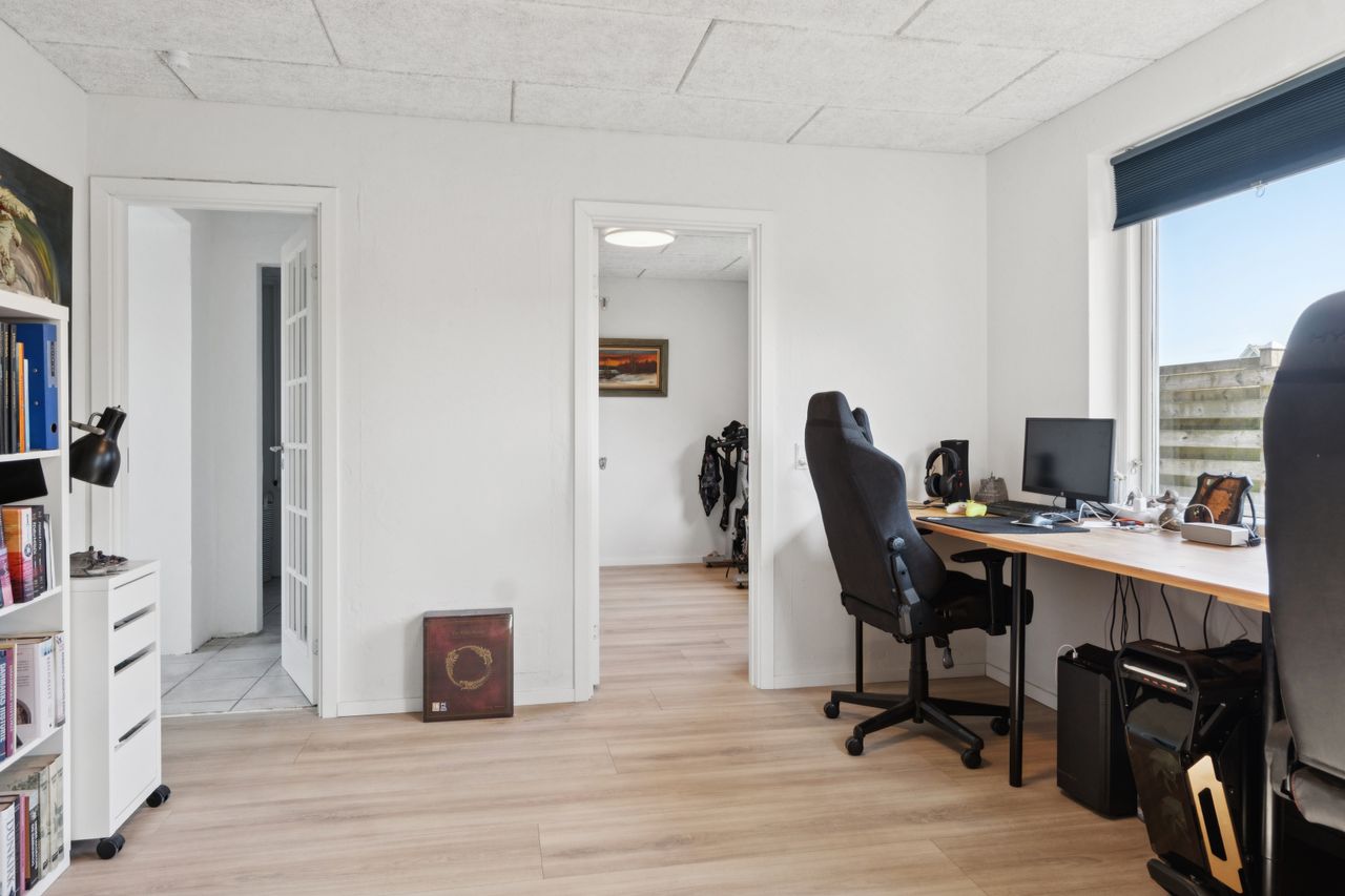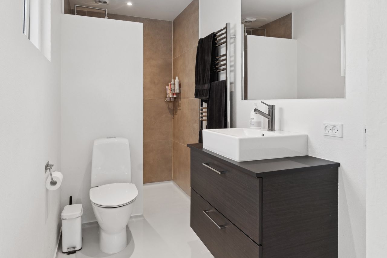 I stueplan finder I desuden et nyere badeværelse i moderne stil med epoxy gulv og flotte klinker, et praktisk bryggers med vaskefaciliteter, samt et ekstra værelse, som nemt kan fungere som kontor, gæsteværelse eller hobbyrum. Fra bryggerset er der direkte udgang til en af boligens skønne terrasser.