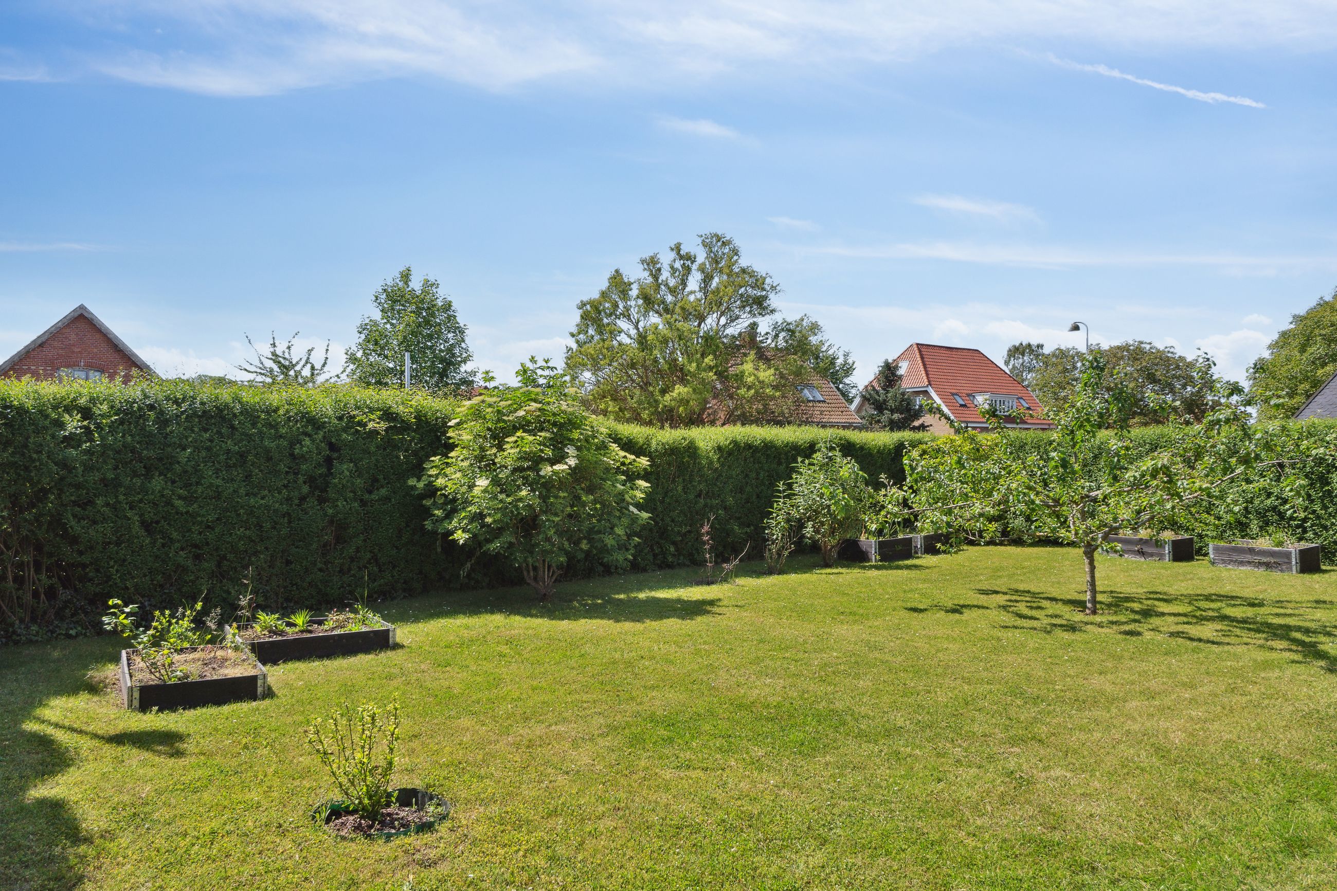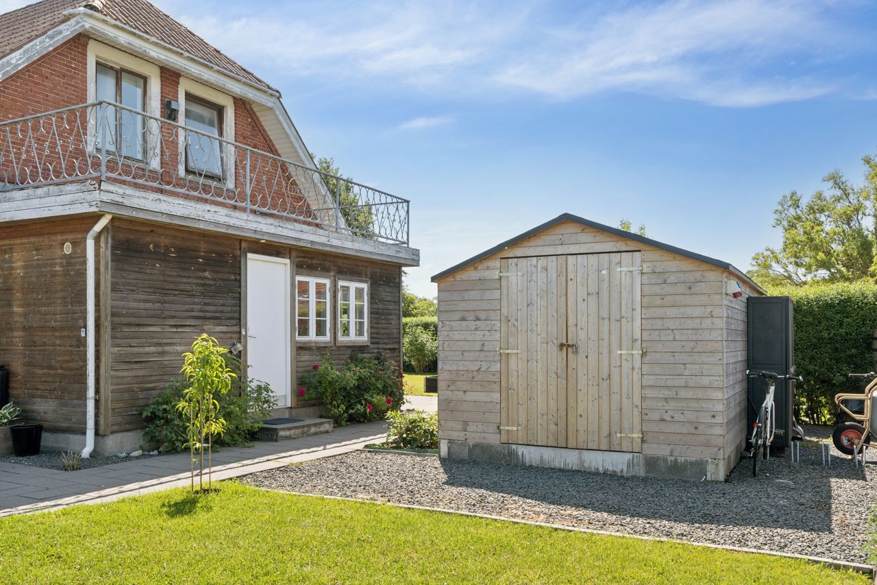 Udenfor venter en skøn, lukket have, omkranset af hæk og hegn – ideel til både leg og afslapning. Haven byder på flere solrige terrasser, frugttræer, buske, græsplæne og højbede, der gør det let at skabe et lille grønt paradis midt i byen.