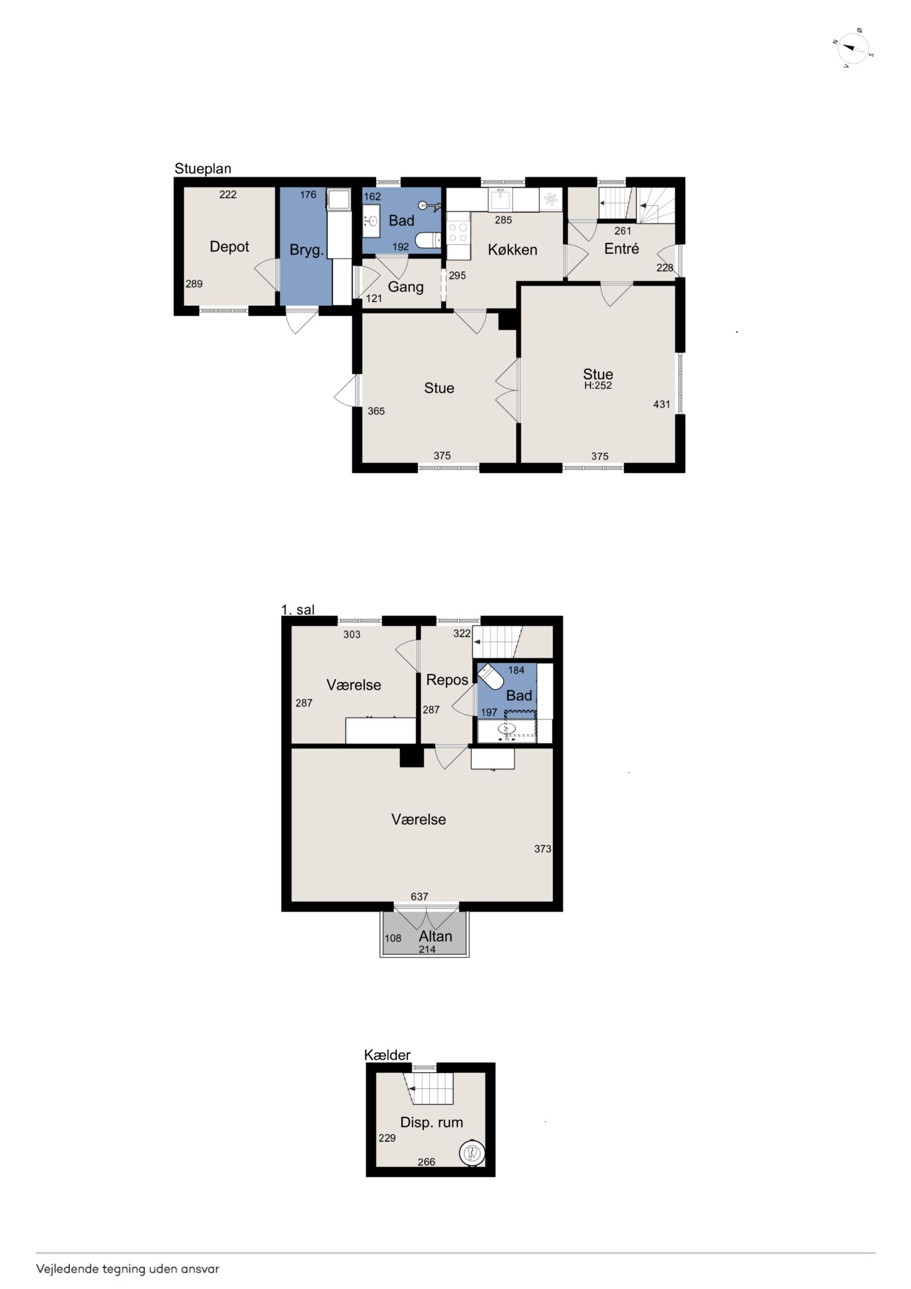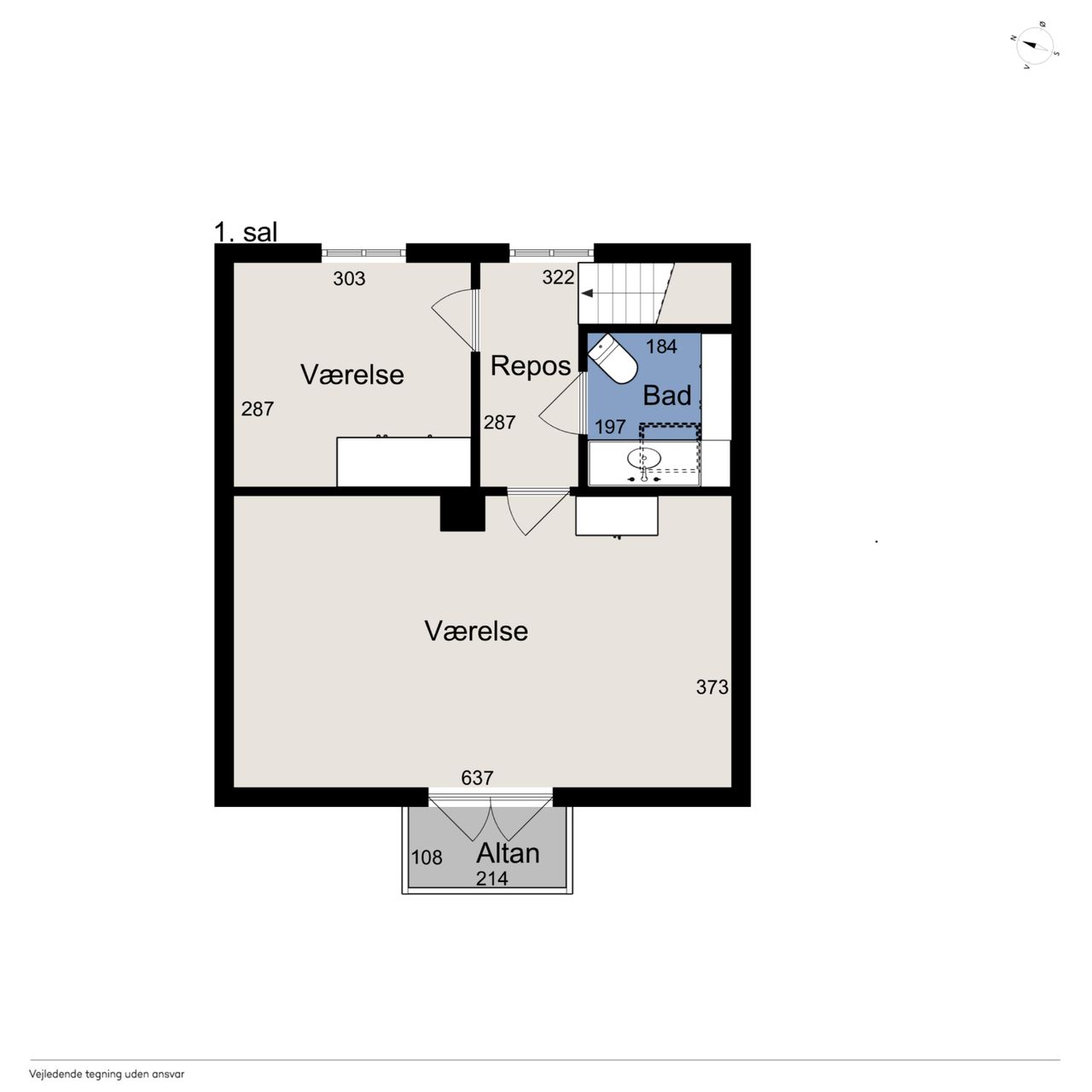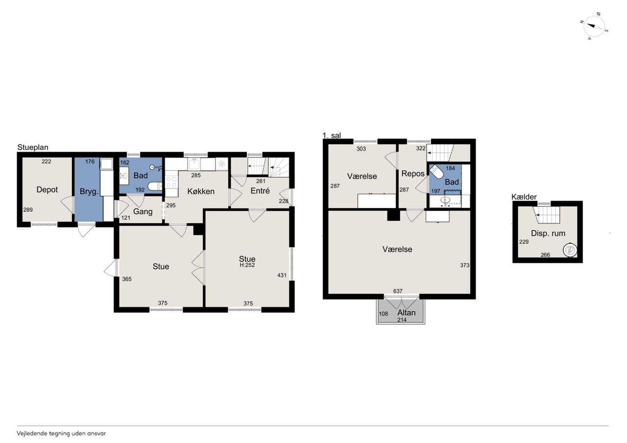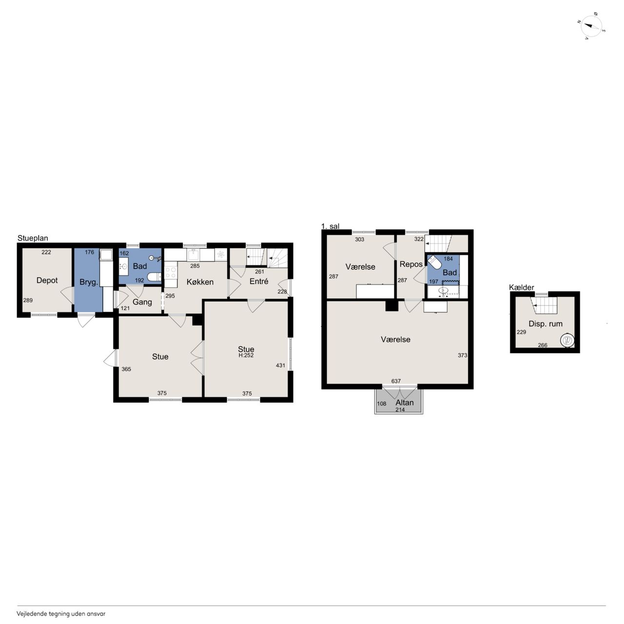 I stueplan findes desuden en mellemgang med adgang til badeværelse med gulvvarme, praktisk bryggers med separat udgang samt et disponibelt rum, der egner sig perfekt som kontor, hobbyrum eller lille værksted. Fra entré adgang til lille kælderrum.