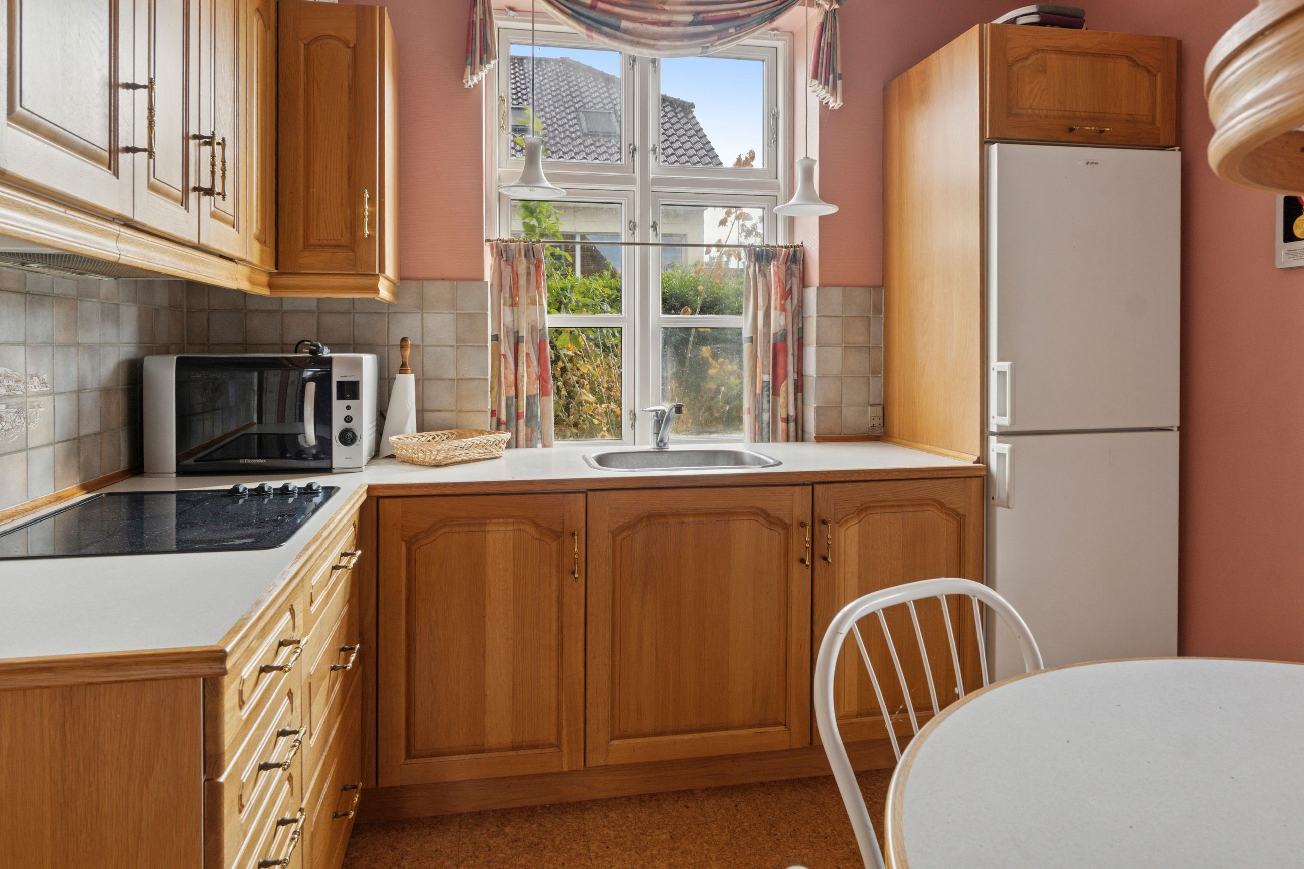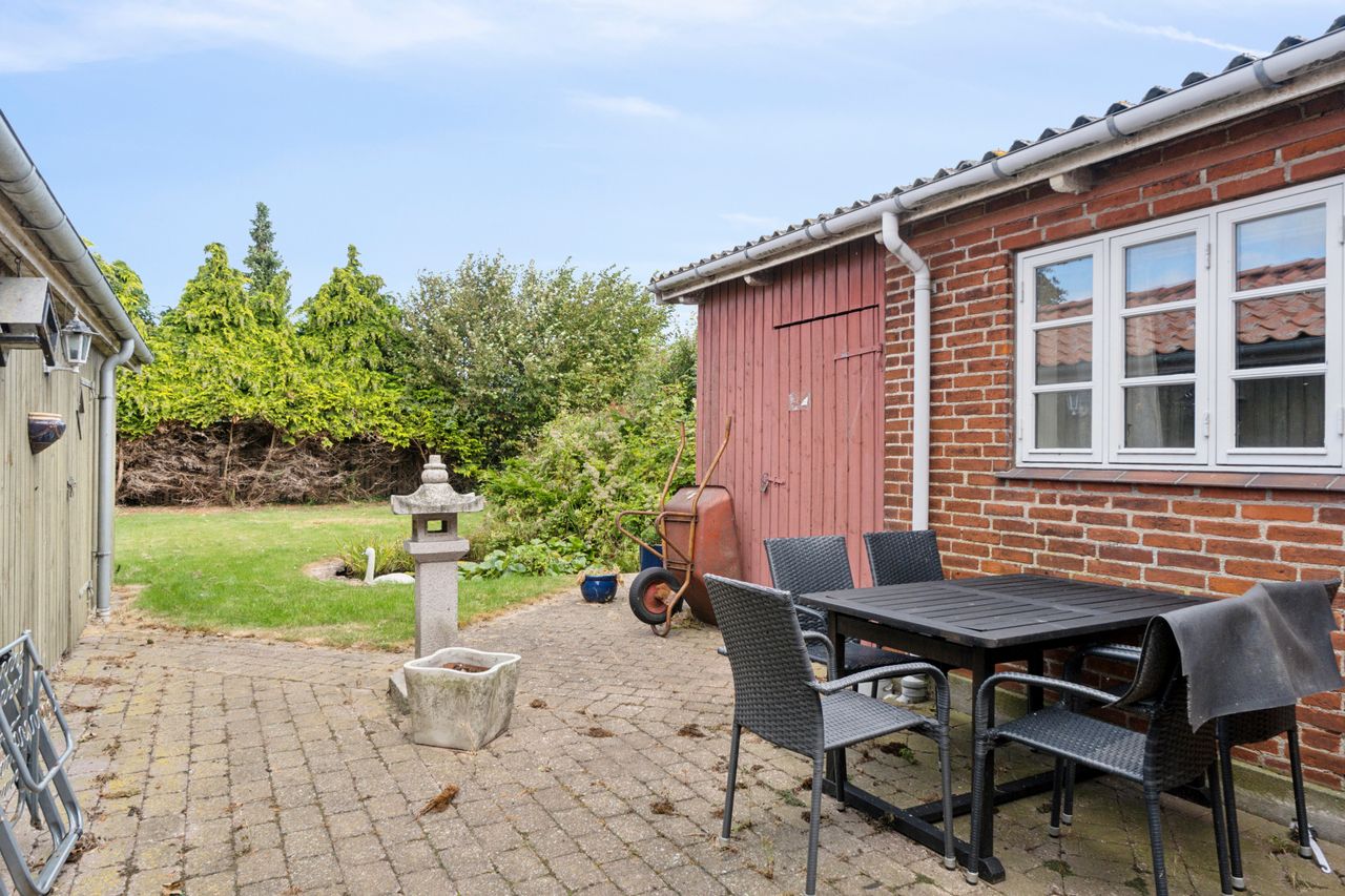 Udenfor venter et hyggeligt og ugeneret gårdmiljø, en overskuelig have, garage og god udhusplads – alt sammen med plads til både afslapning og små projekter.