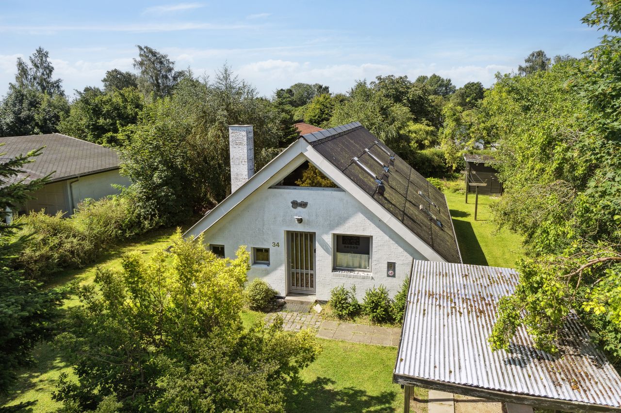Velkommen til Bundgarnet 34 – et charmerende og velholdt sommerhus med hvide murede facader og flotte grå vinduer, beliggende i rolige omgivelser tæt på en af områdets aller bedste badestrande.