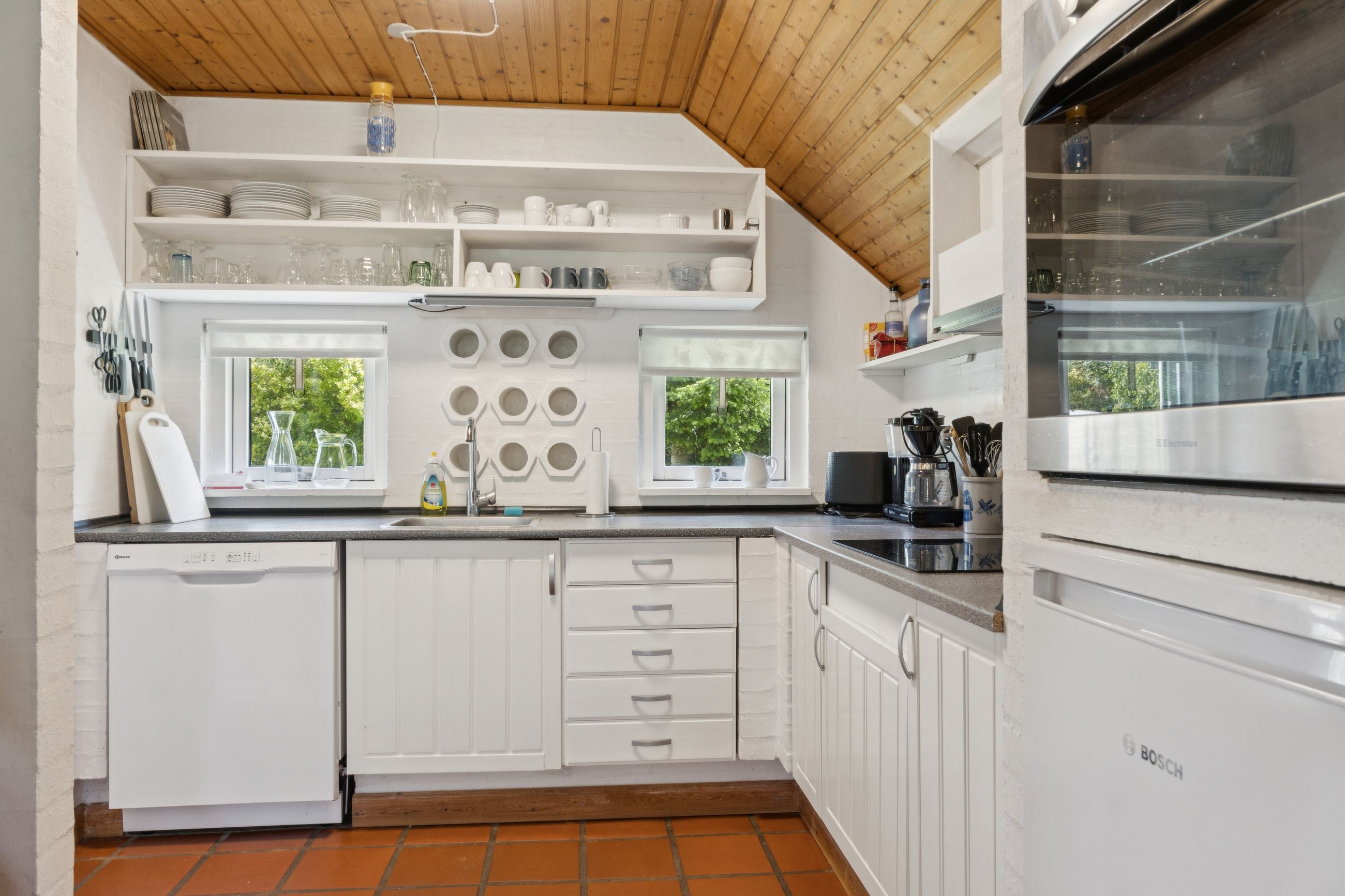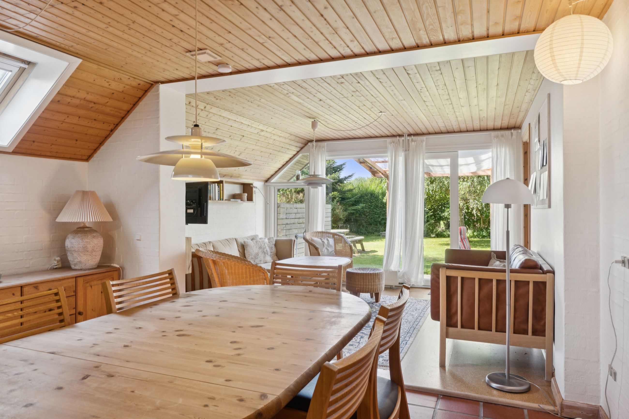 Udendørs venter en skøn, ugeneret have med god plads til leg, afslapning og udendørs måltider. Beliggenheden er både fredelig og naturskøn, med kort afstand til stranden, hvor sommerdage kan nydes med sand mellem tæerne og bølger i horisonten.
