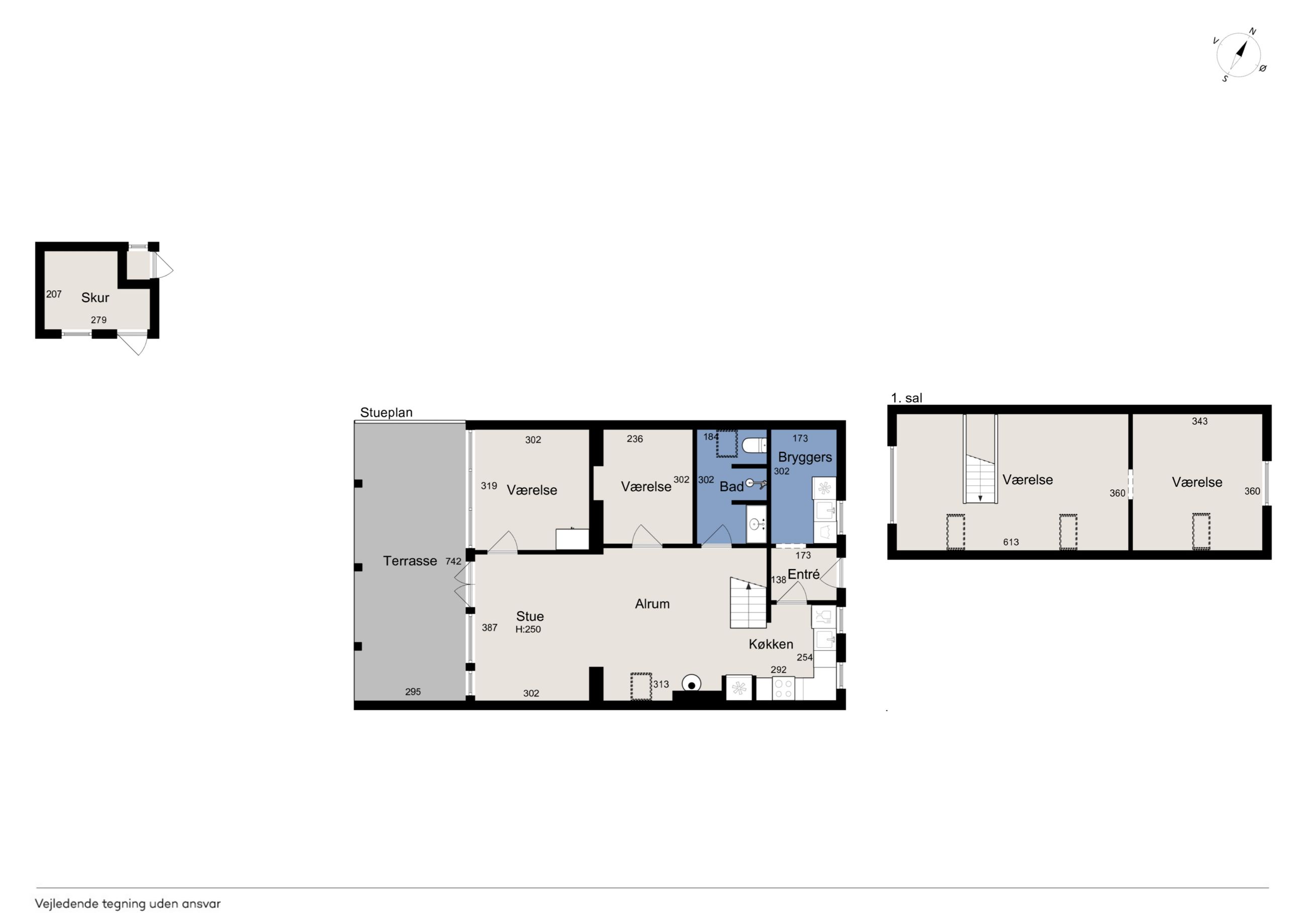 På førstesalen er pladsen udnyttet optimalt og byder på yderligere to værelser – ideelle som børneværelser, kontor eller gæsteværelser.