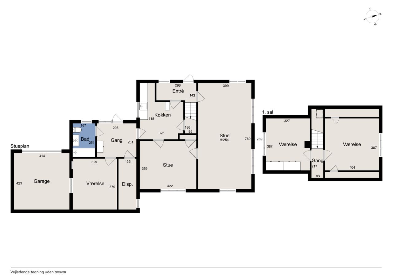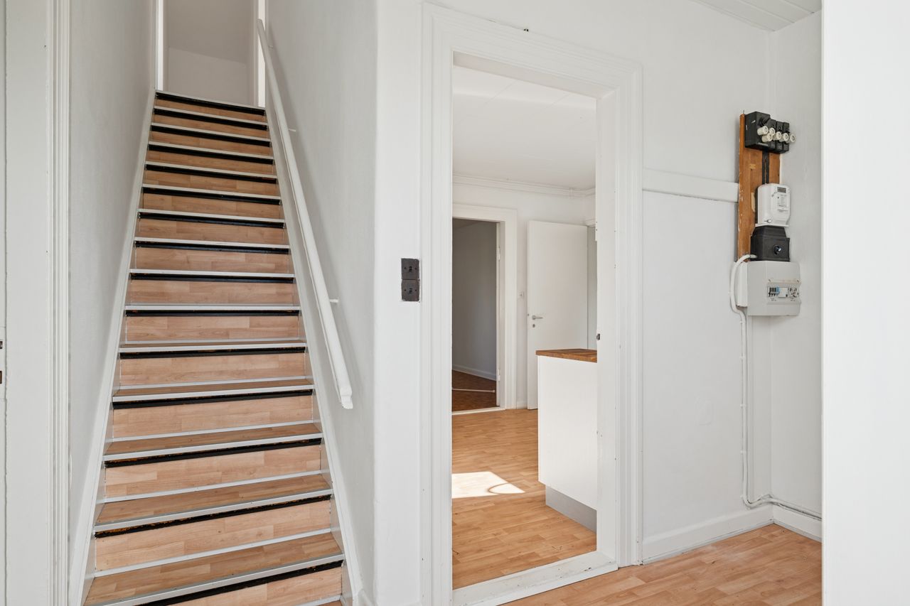 Indretningen byder på en entré med adgang til en skøn stor opholds- og dagligstue, et lyst hvidt køkken med lille spiseplads, samt et soveværelse. Hertil kommer en bryggersafdeling med adgang til viktualierum og lille kælder, samt et badeværelse med badekar. I bagbygningen finder du desuden fyrrum/disponibelt rum og garage, som giver gode muligheder for både opbevaring og hobby. 1. salen indeholder 2 gode soveværelser med trægulve.