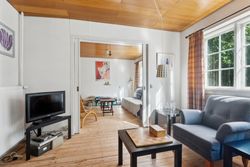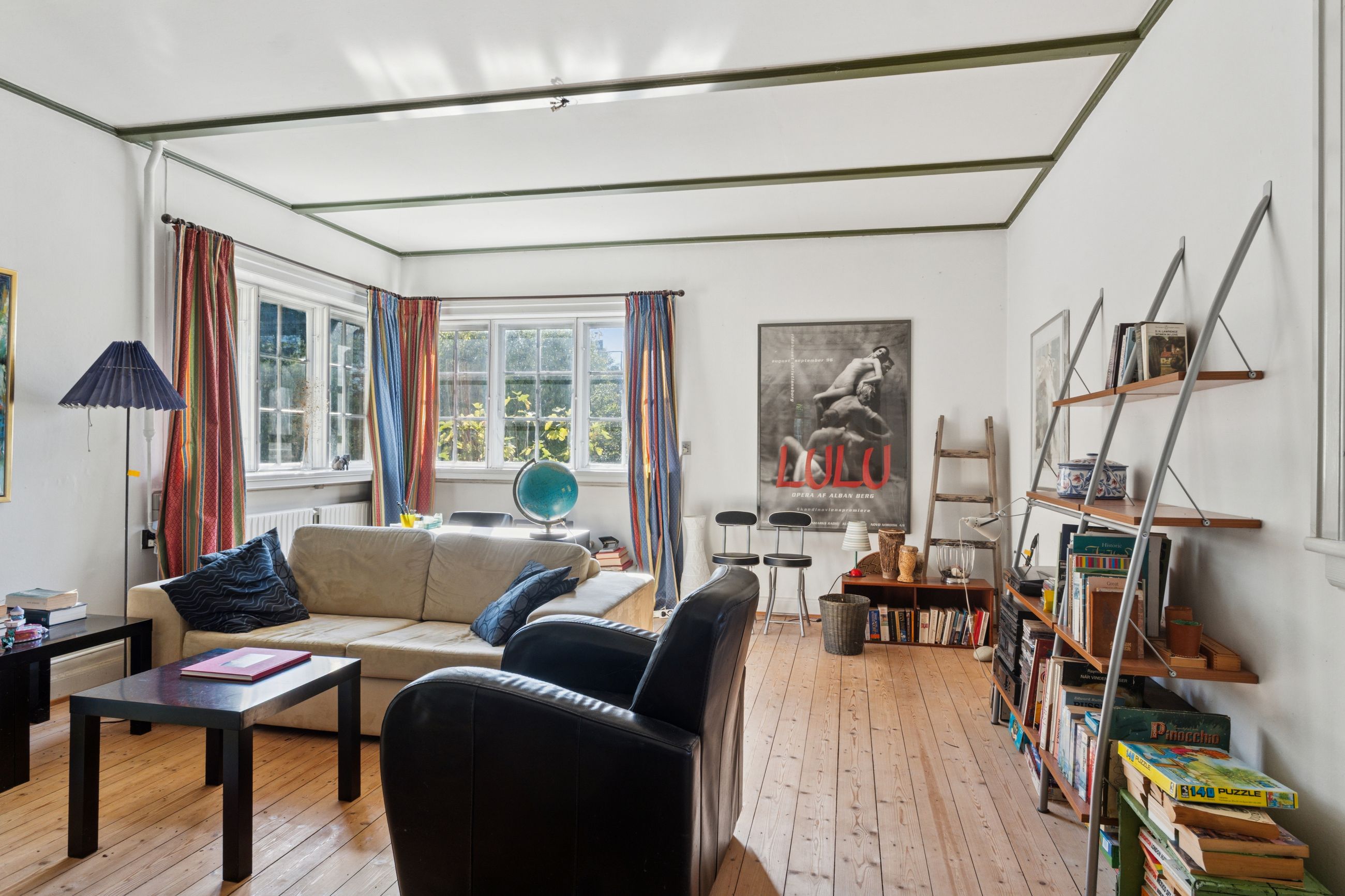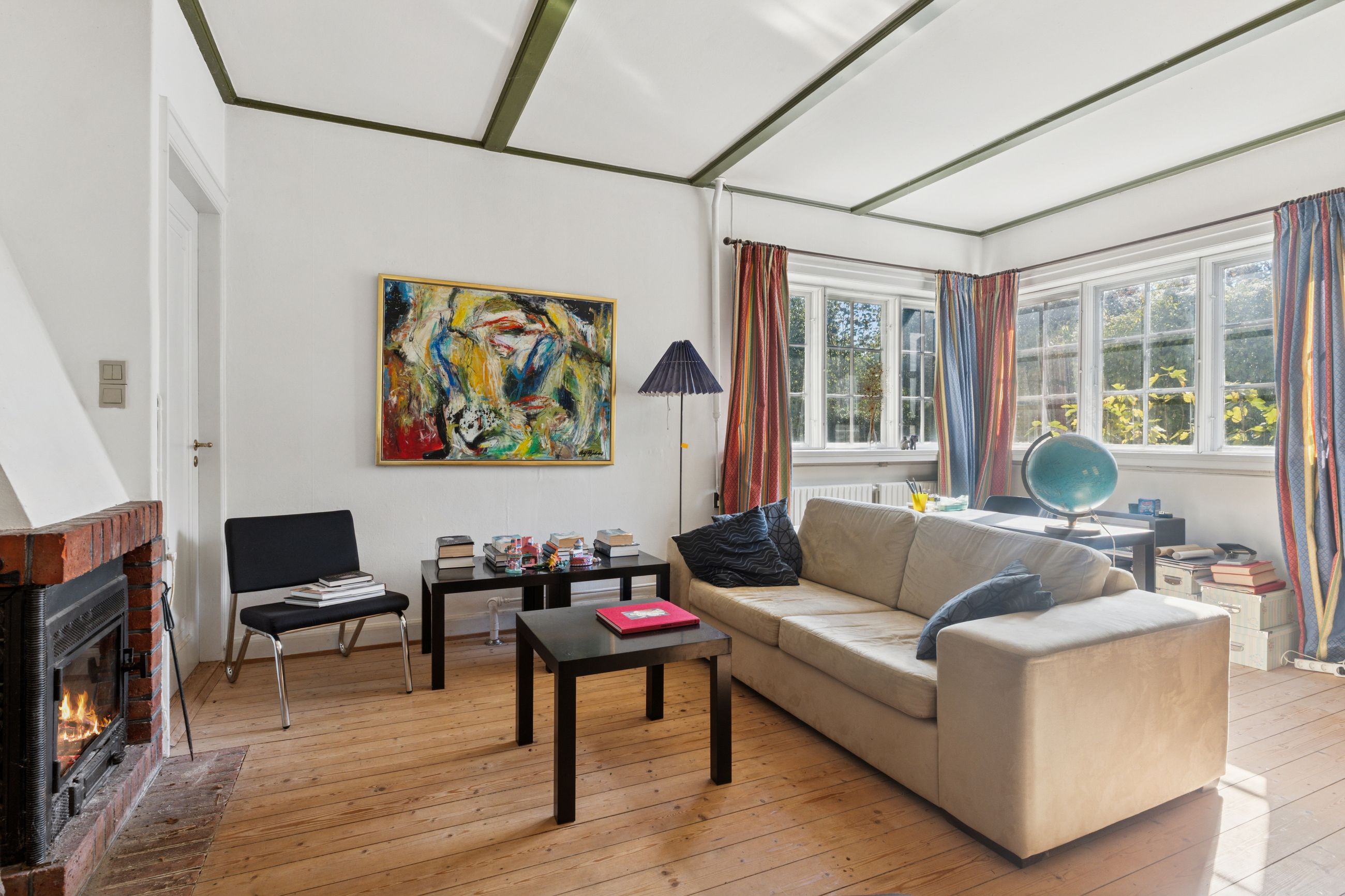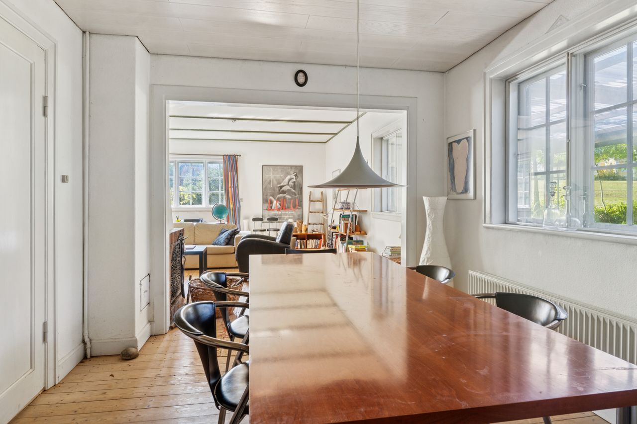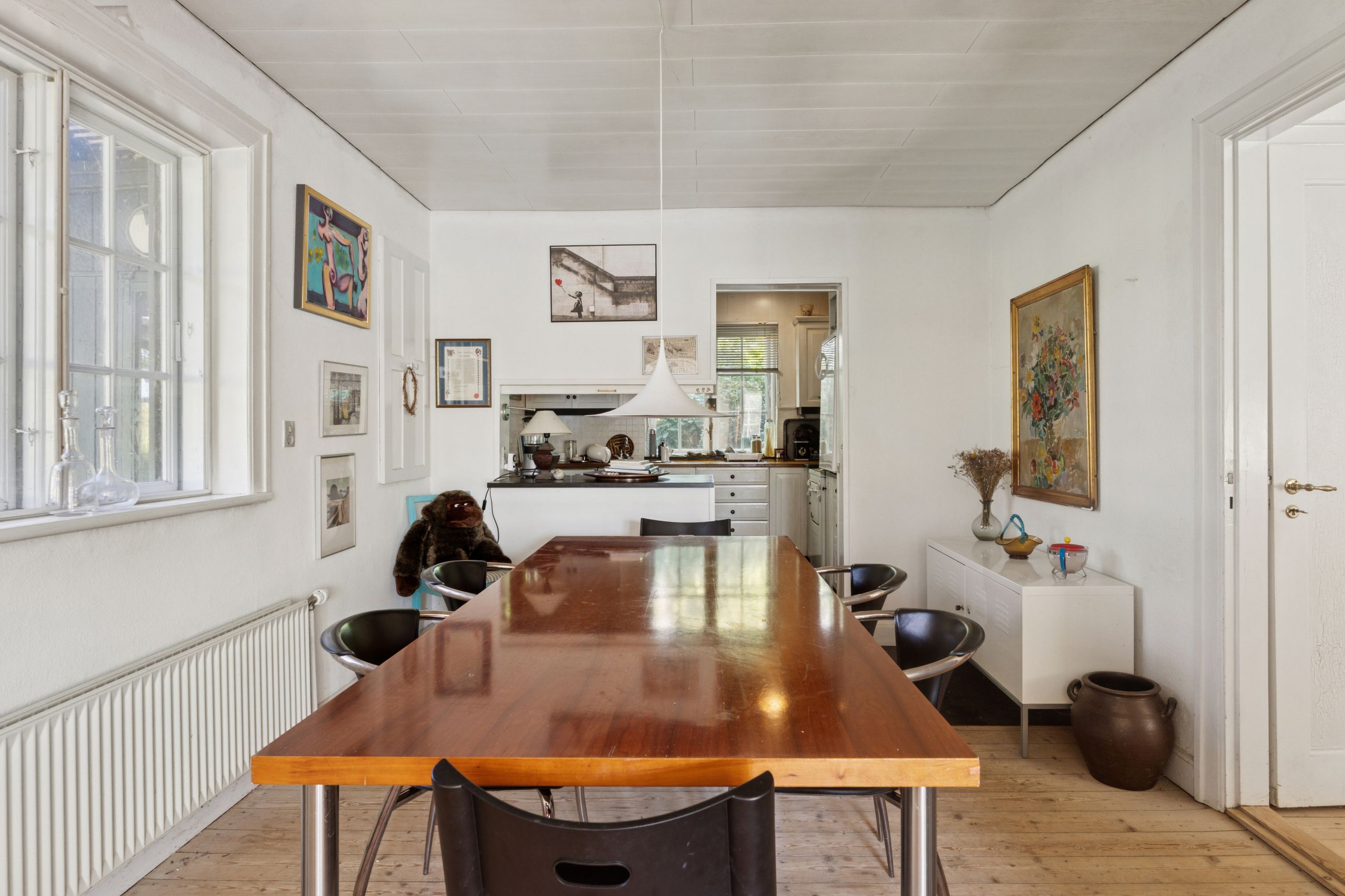Boligens hjerte er den højloftede og smukt oplyste opholds- og spisestue, som ligger i åben forbindelse med køkkenet – et skønt samlingspunkt med masser af atmosfære og udsigt til haven.