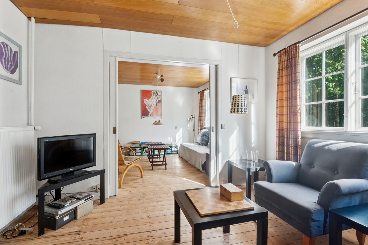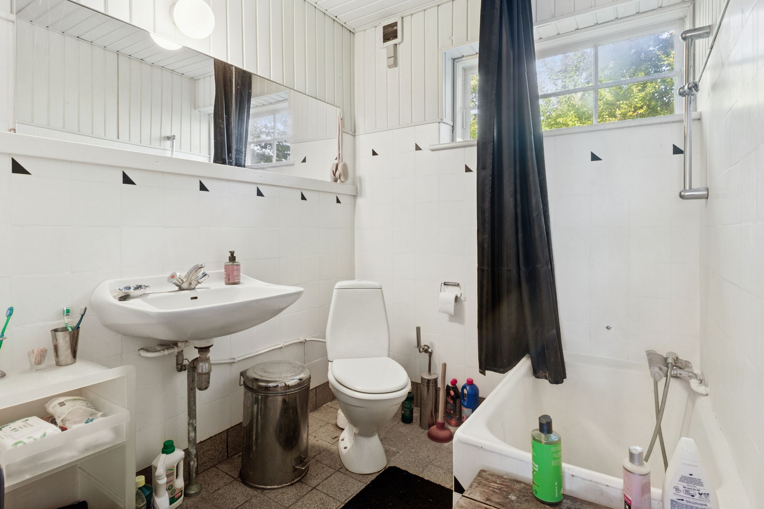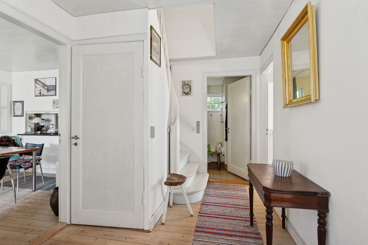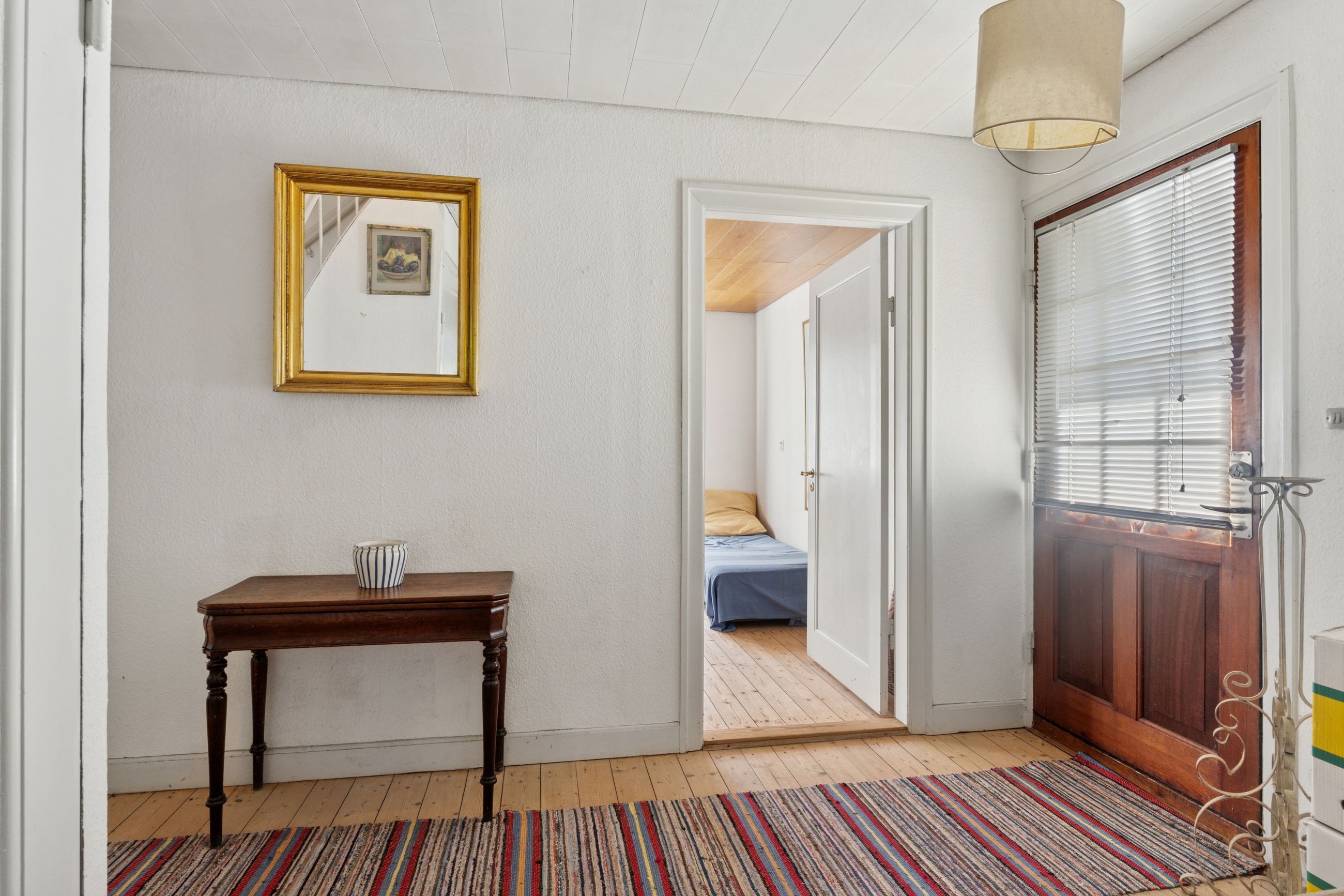 Du ankommer til et indgangsparti med entré, hvorfra der er adgang til to oprindelige værelser med trægulve samt et badeværelse med badekar. Herfra er der også nedgang til husets fyrkælder.