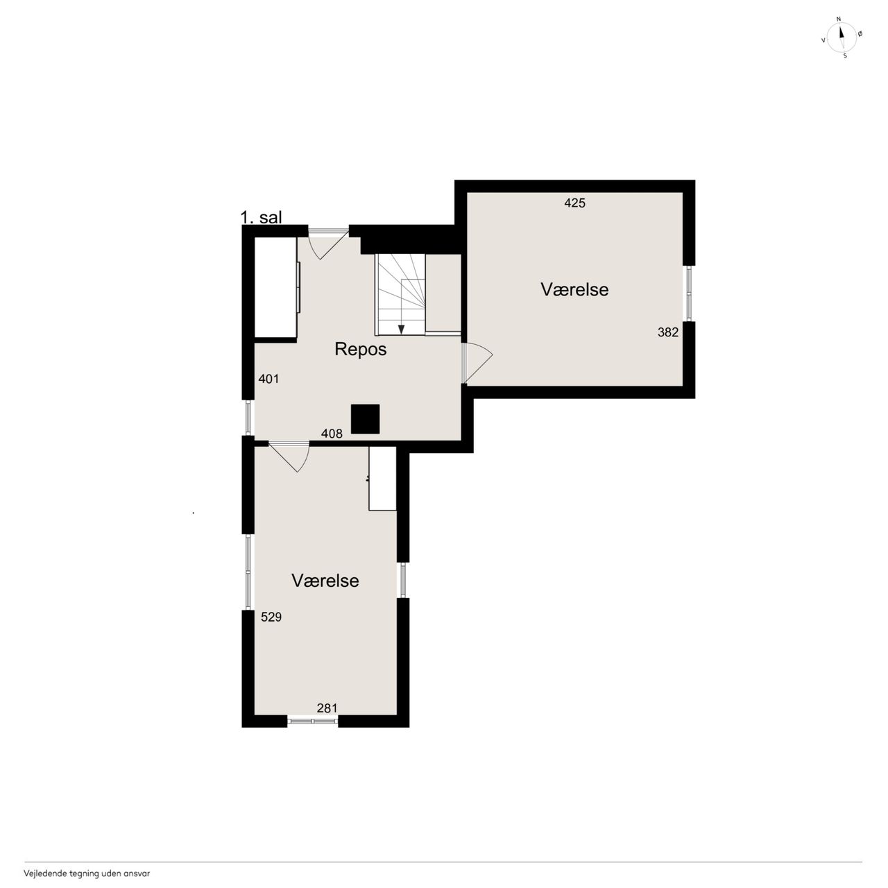 På 1. salen findes en repos samt et soveværelse og et hyggeligt gæsteværelse – perfekt til både fast beboelse og som fristed til weekender og ferier.