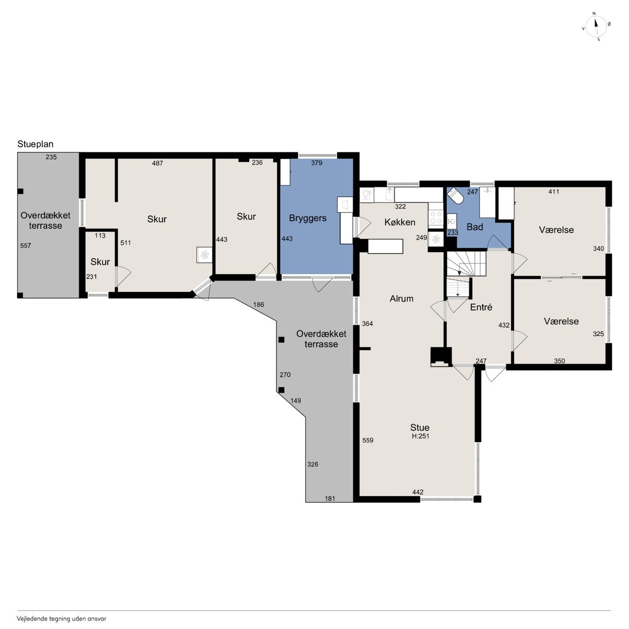 Fra en separat indgang er der adgang til et stort, disponibelt rum, der kan bruges som bryggers, værksted, hobbyrum eller efter behov.
