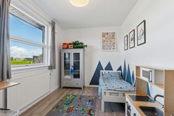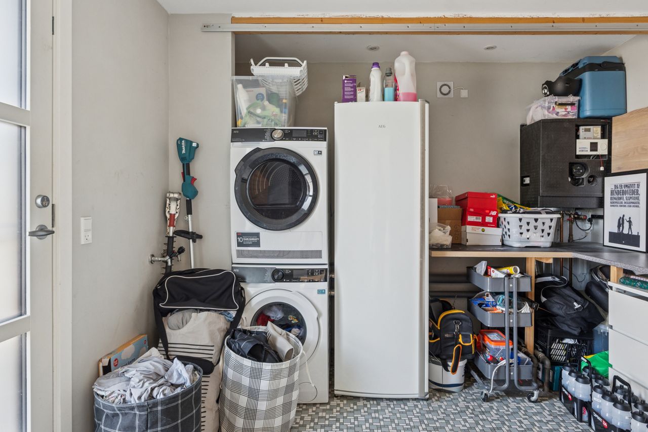 Derudover byder boligen på et praktisk bryggers med vaskefaciliteter og ekstra opbevaringsmuligheder. Huset opvarmes med fjernvarme og der er desuden installeret luft til luft varmepumpe.