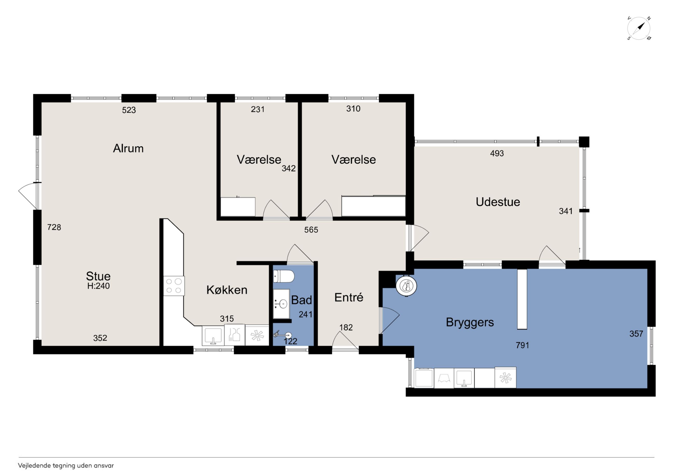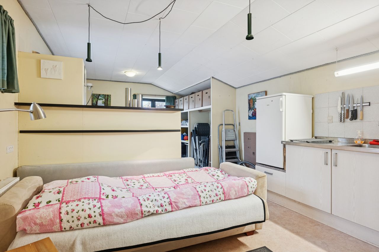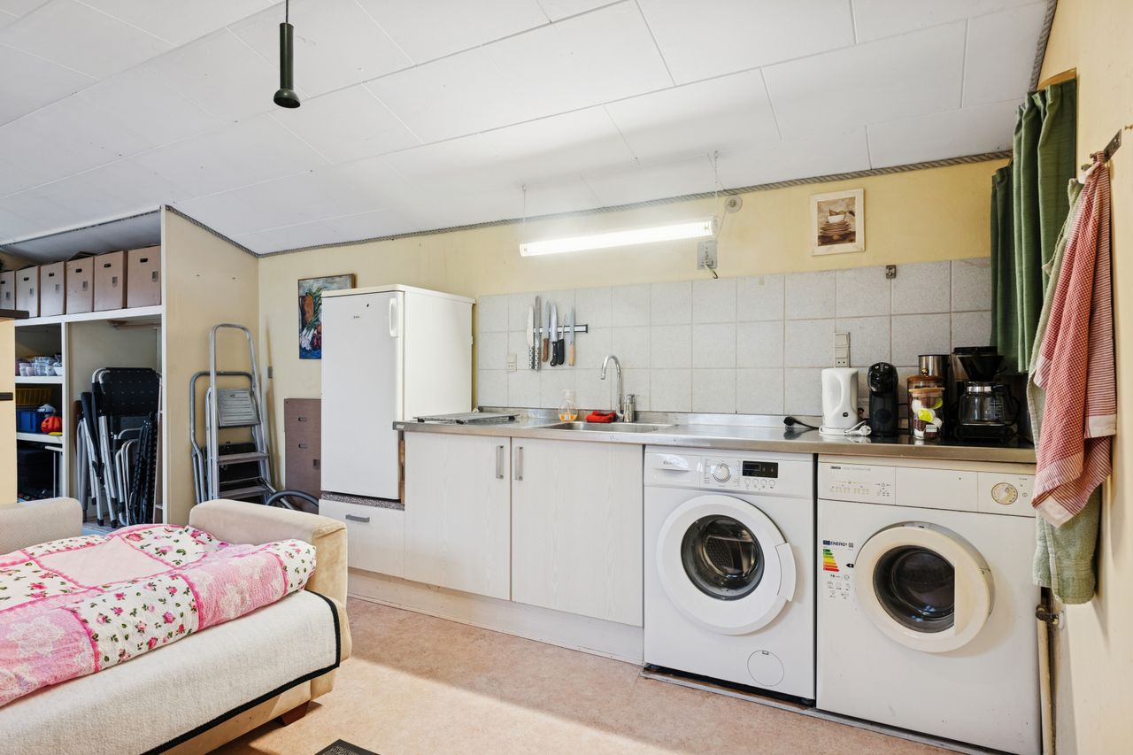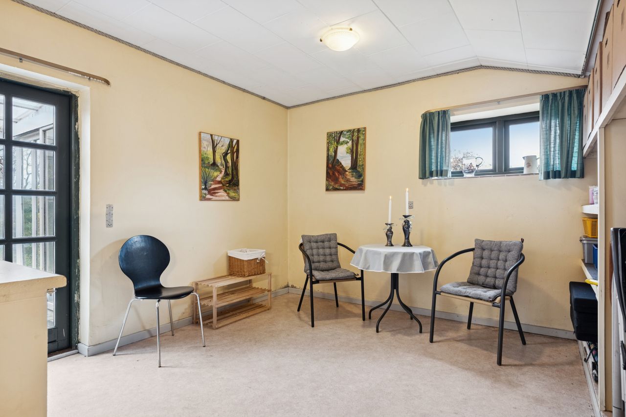 Den store entré er en perfekt velkomst med masser af plads til overtøj og sko og et stort bryggers giver gode muligheder for opbevaring og praktisk anvendelse. Det kan nemt renoveres til et hobbyrum, værksted eller måske endda et ekstra badeværelse, hvilket giver boligen endnu mere fleksibilitet og potentiale.