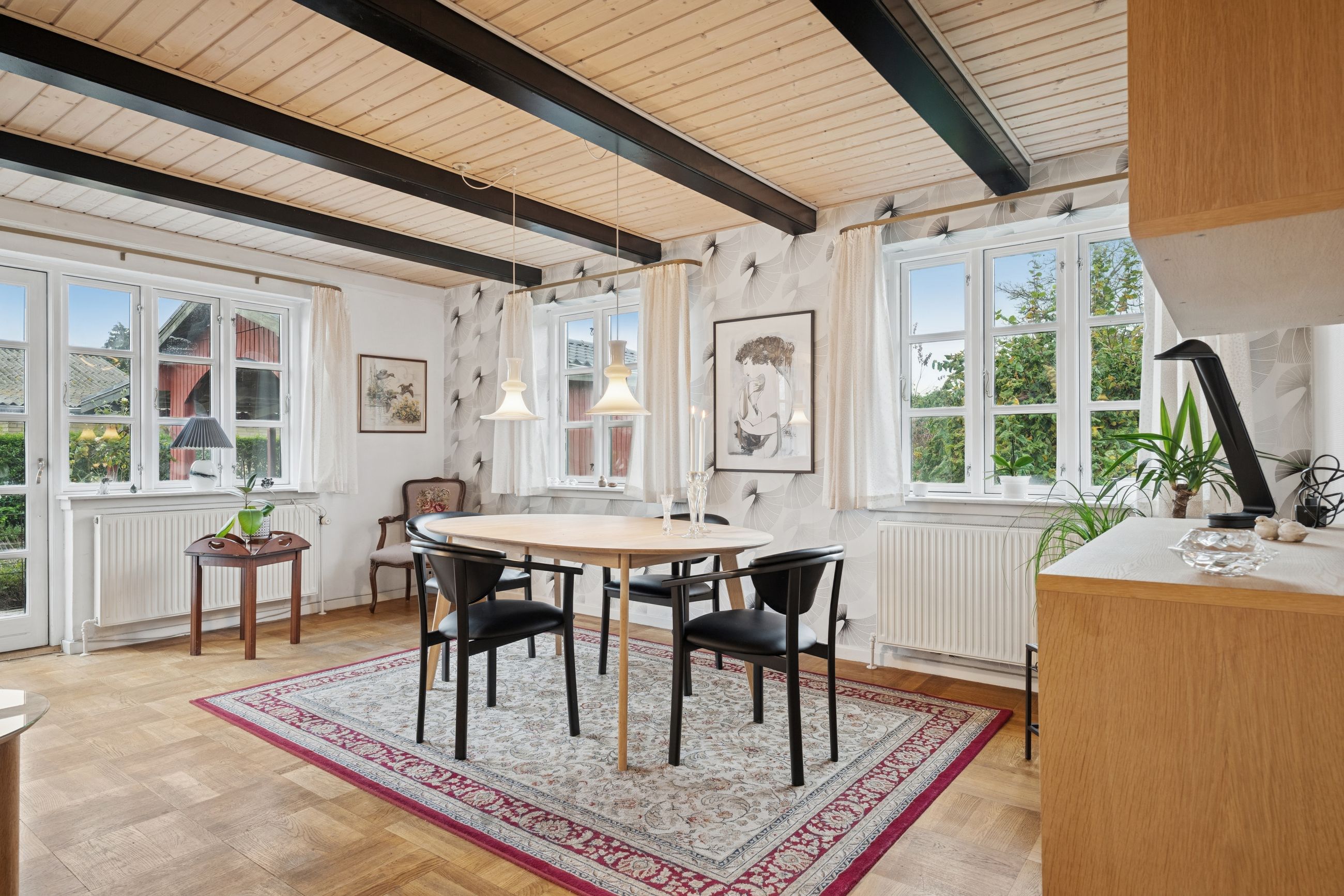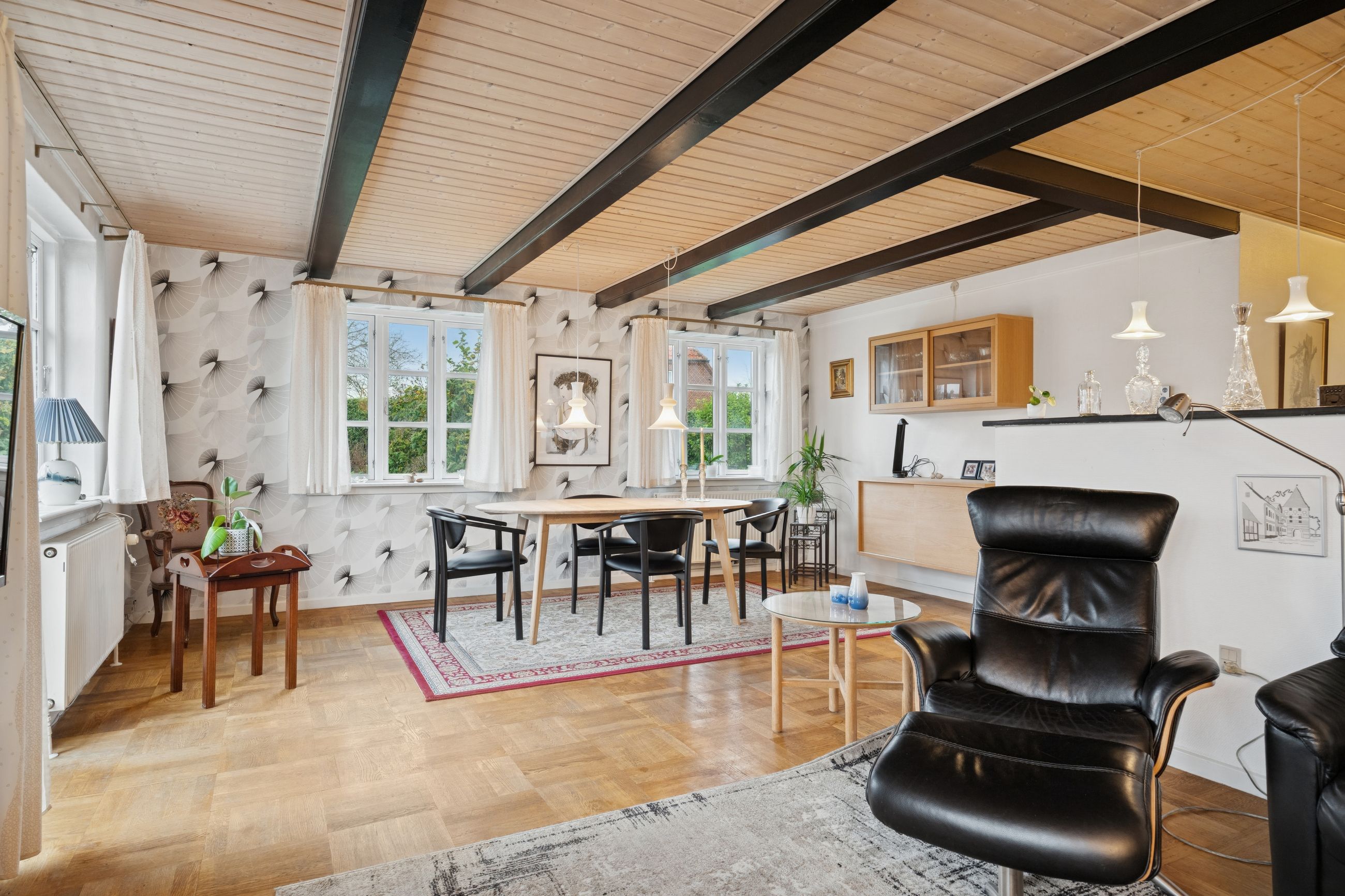 Boligen byder på en praktisk og funktionel indretning, der både er ideel til hverdagslivet og til hyggelige stunder med familien.