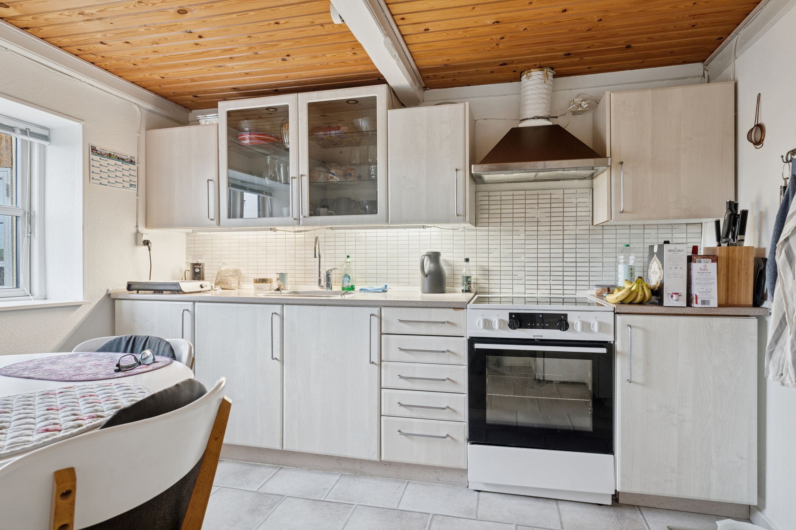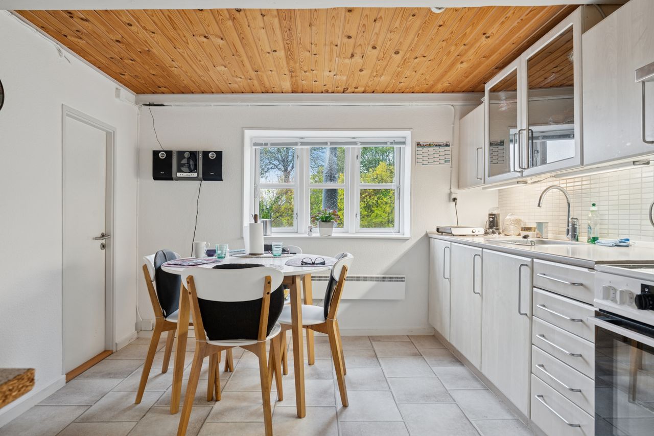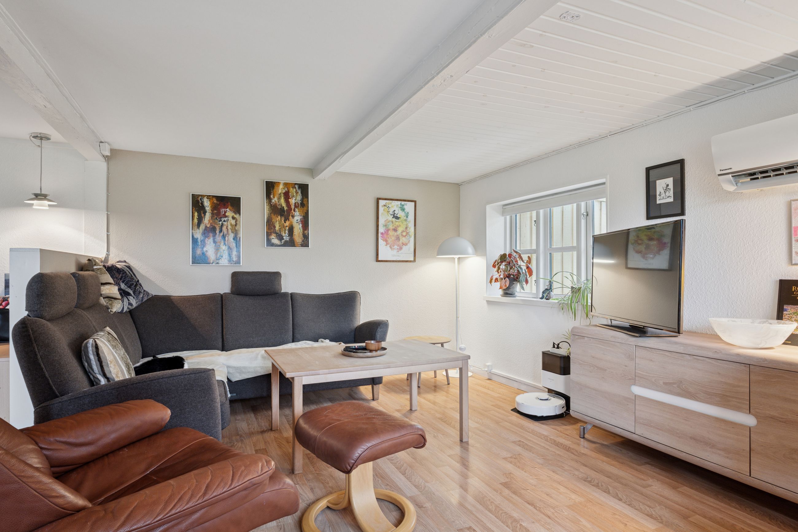 Indvendigt mødes du af en entré, der fører ind til en stor og hyggelig stue med synlige loftsbjælker og luft-til-luft varmepumpe, som sikrer behagelig varme året rundt. Det lyse køkken har en hyggelig spiseplads samt et praktisk spisekammer. Herudover findes et bryggersrum med adgang til en lys havestue – et oplagt sted til forår og sensommerdage. Fra fordelingsgangen er der adgang til et badeværelse med badekar.