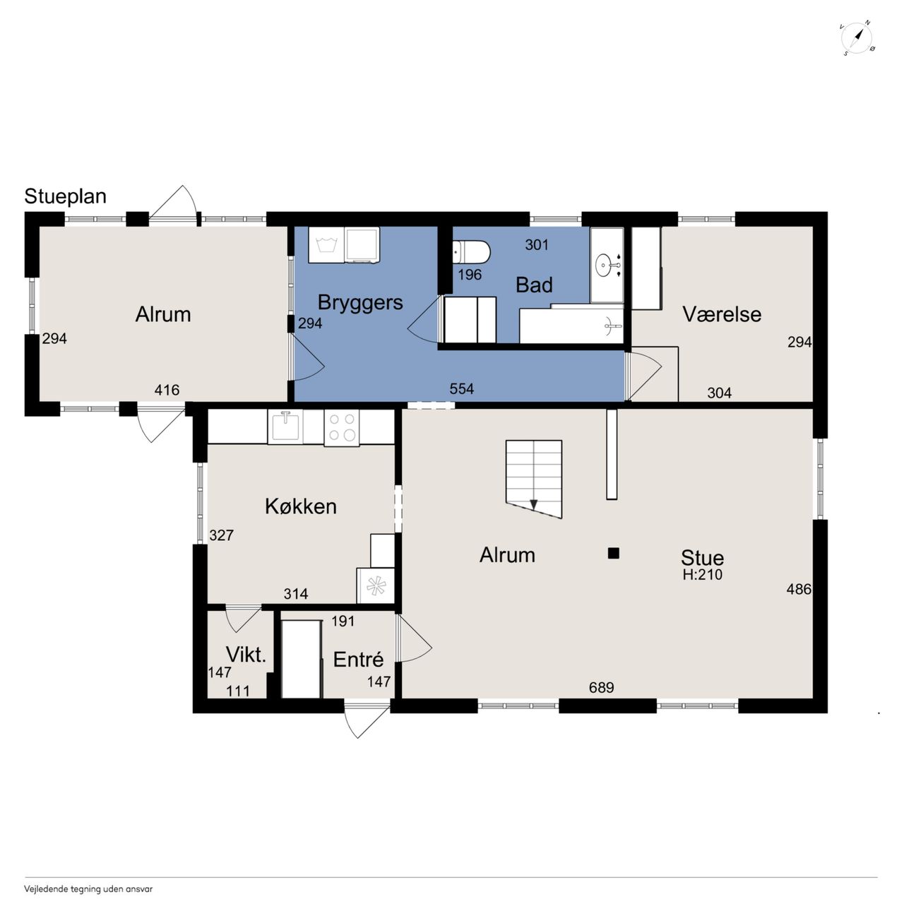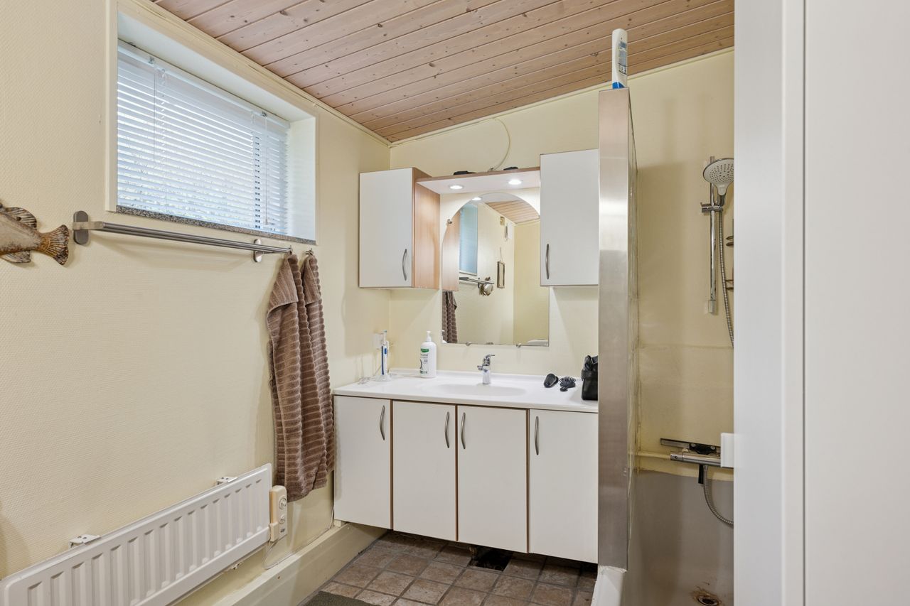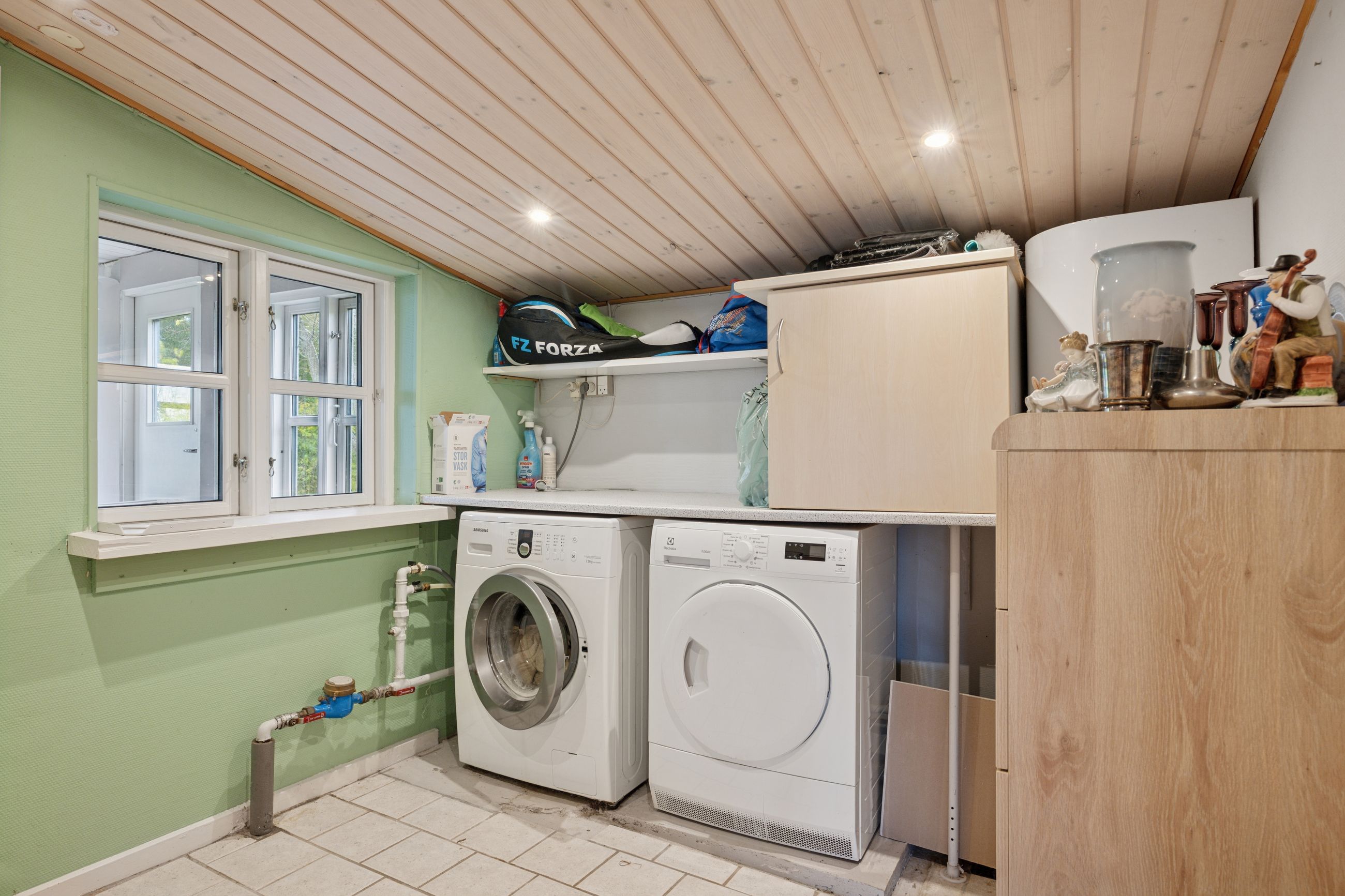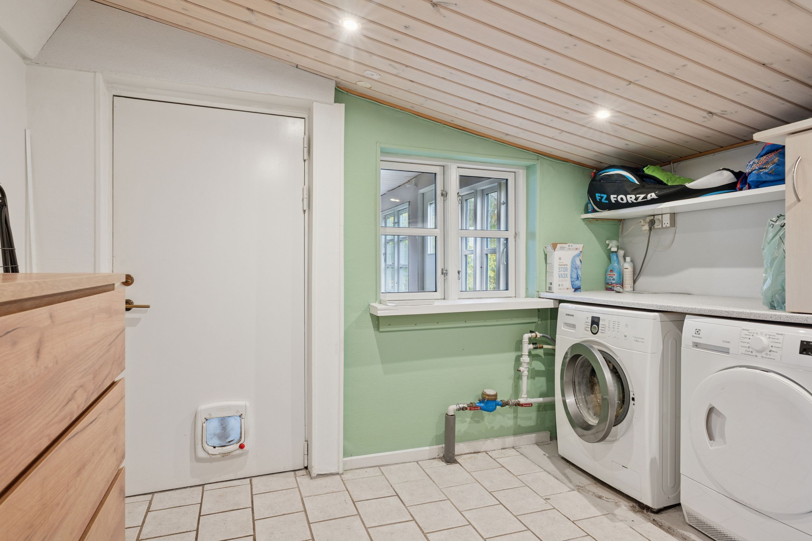Indvendigt mødes du af en entré, der fører ind til en stor og hyggelig stue med synlige loftsbjælker og luft-til-luft varmepumpe, som sikrer behagelig varme året rundt. Det lyse køkken har en hyggelig spiseplads samt et praktisk spisekammer. Herudover findes et bryggersrum med adgang til en lys havestue – et oplagt sted til forår og sensommerdage. Fra fordelingsgangen er der adgang til et badeværelse med badekar.