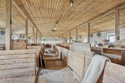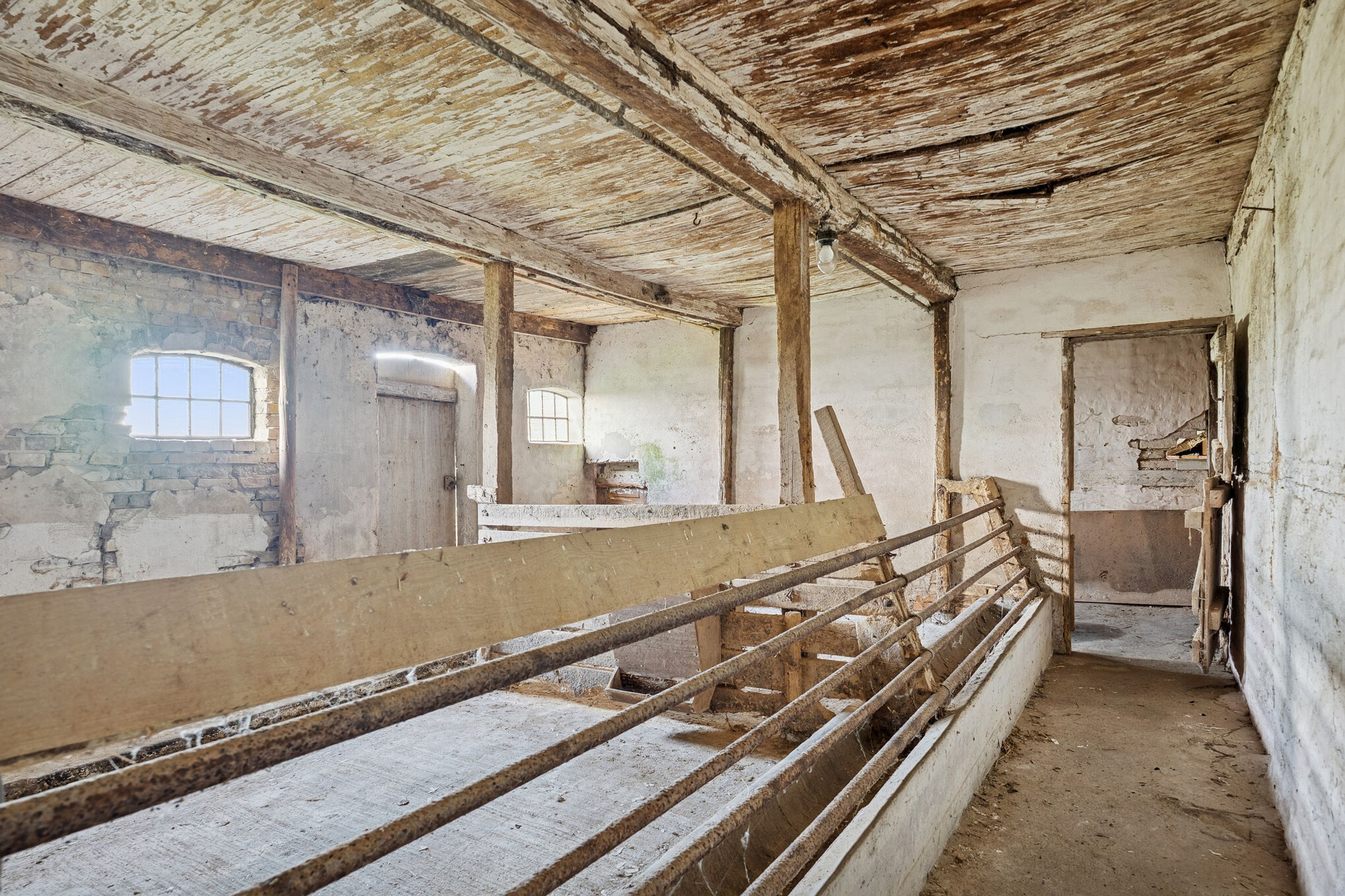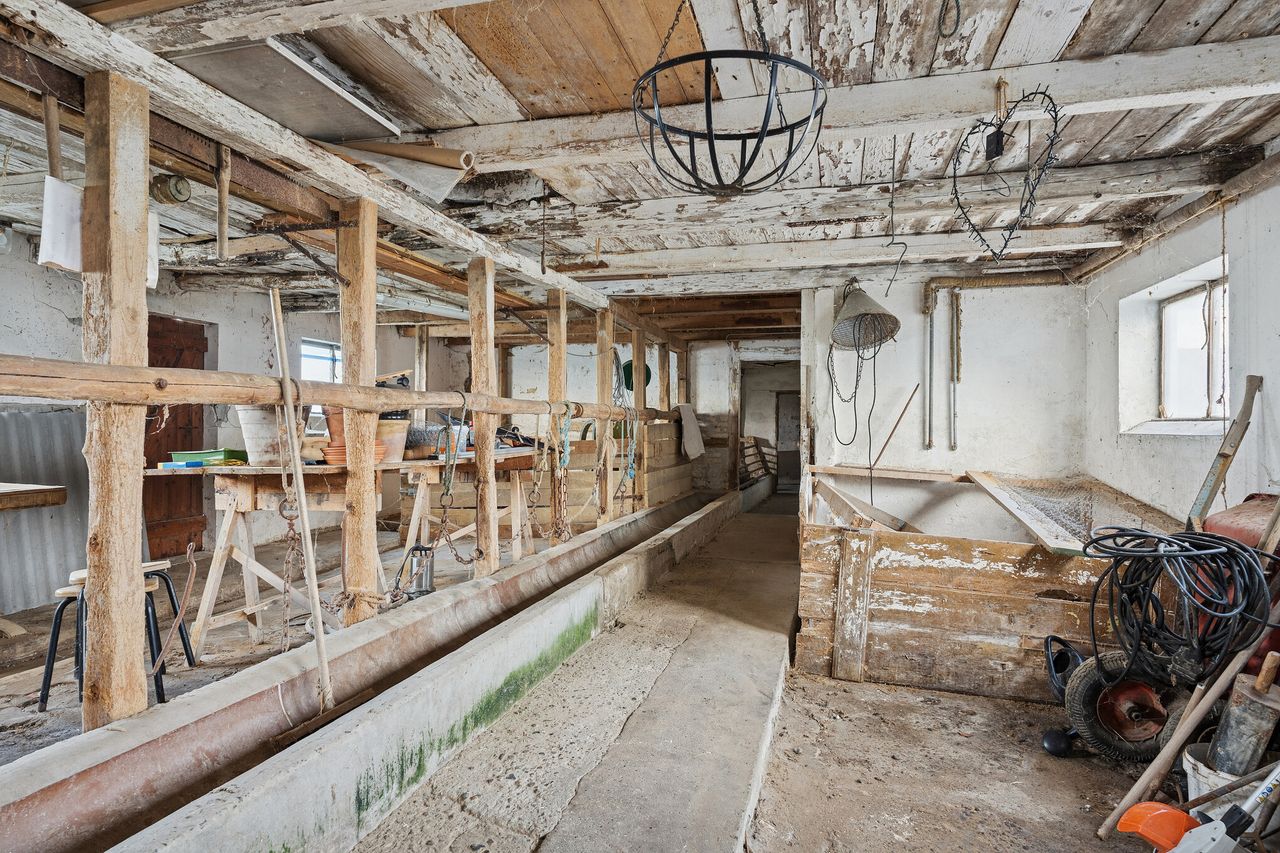 De tilhørende staldlænger er af ældre dato og indeholder båse til dyr. Den nyeste længe er solid og byder på mange muligheder – oplagt til kreative eller pladskrævende hobbyer, værksted, atelier eller opbevaring af maskiner og køretøjer.