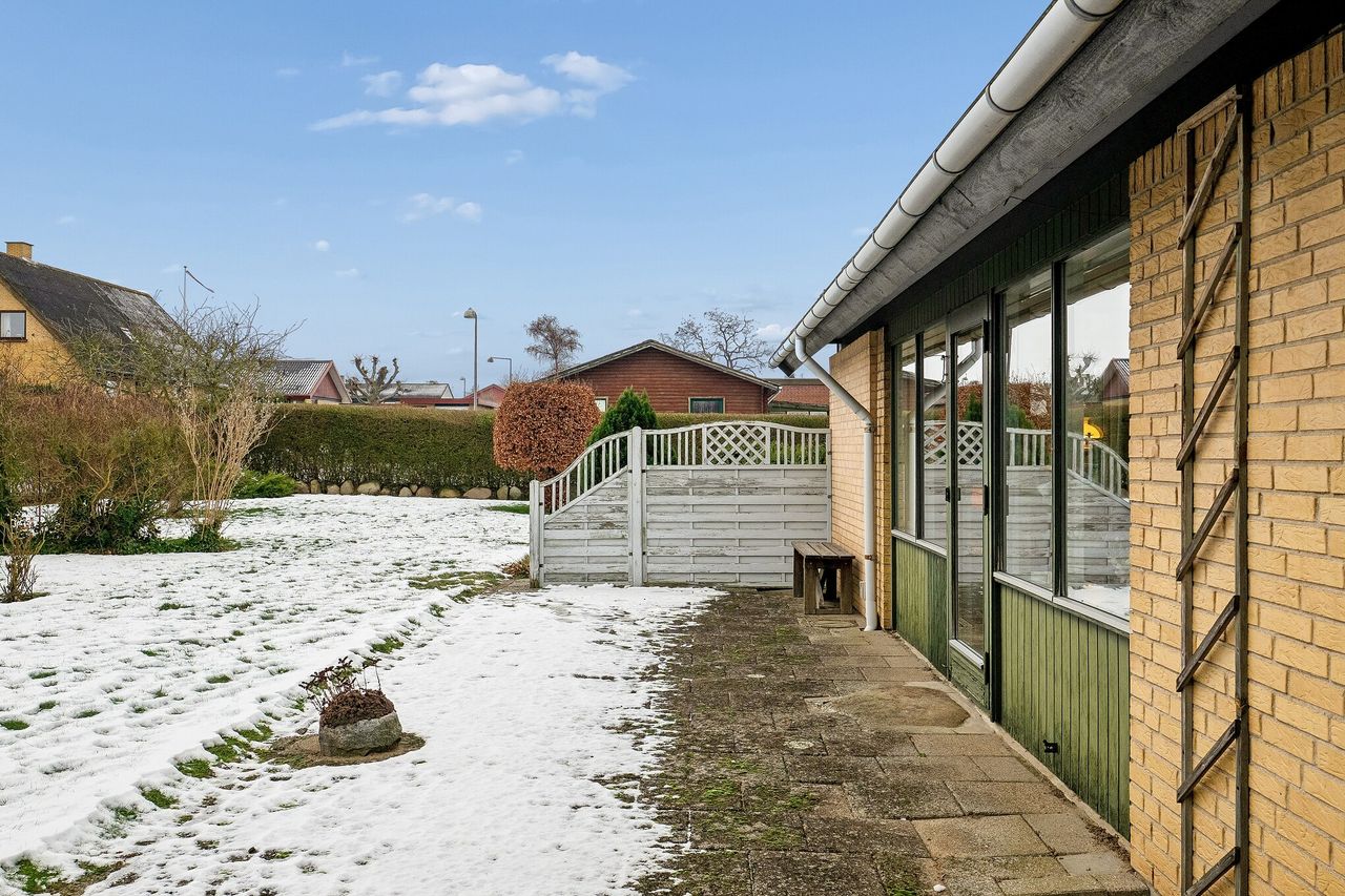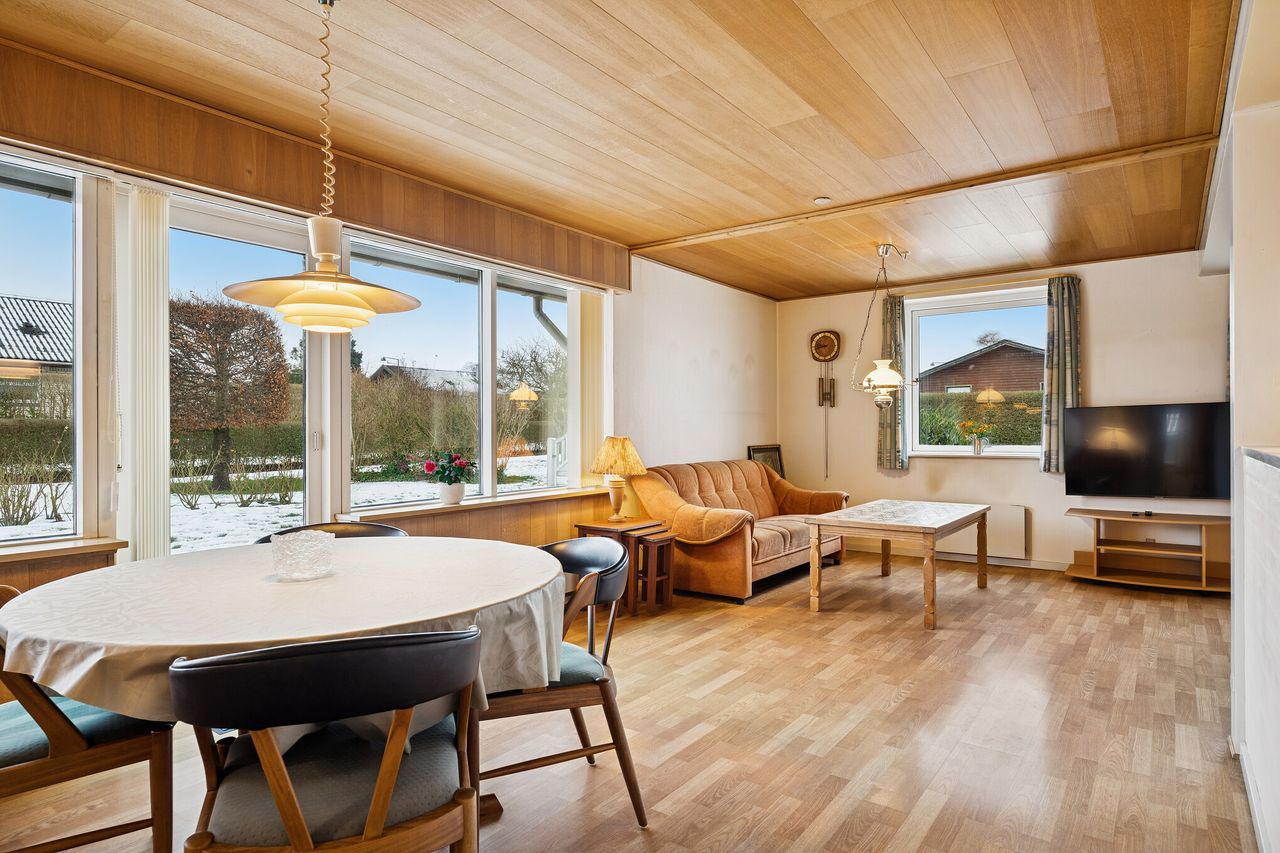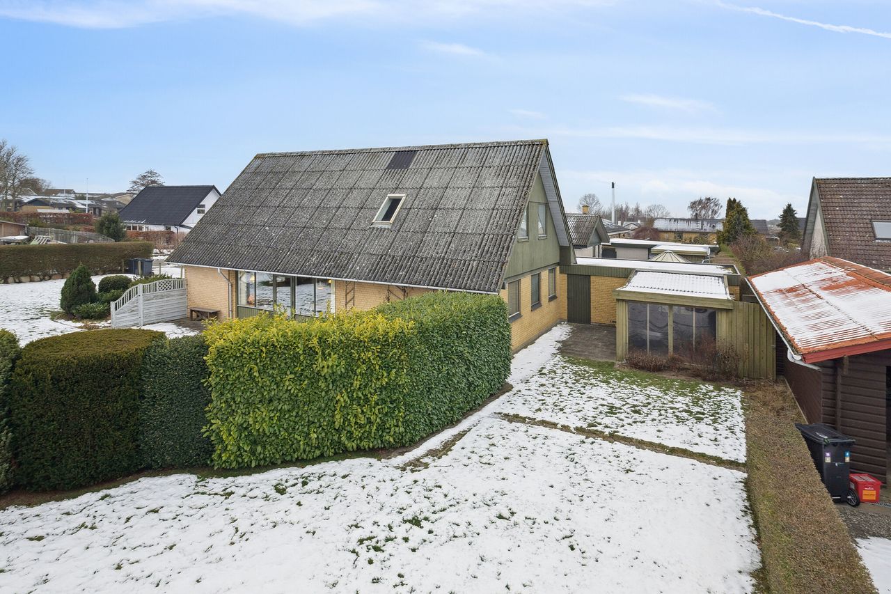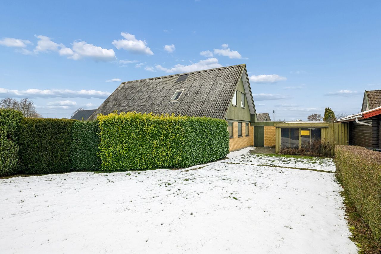 Udenfor får du en garagebygning med værksted og udhus – ideelt til både hobbyprojekter og opbevaring. Den hyggelige, lukkede have giver trygge rammer for leg, boldspil og afslapning.