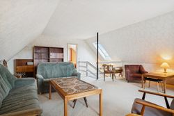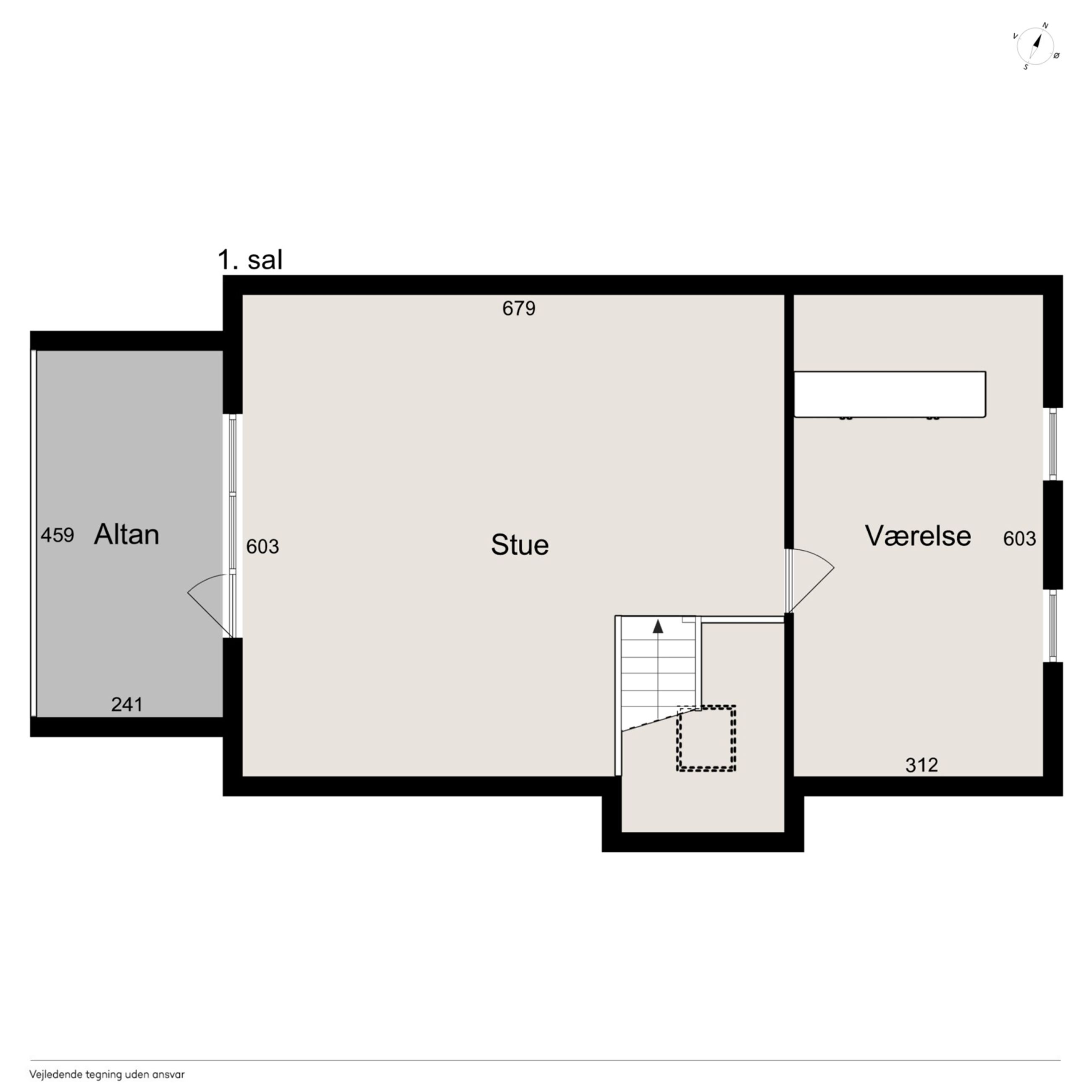 På førstesalen venter en rummelig stue med indbygget altan samt et stort soveværelse, som nemt kan opdeles i to værelser efter behov. Opvarmes med elvarme.