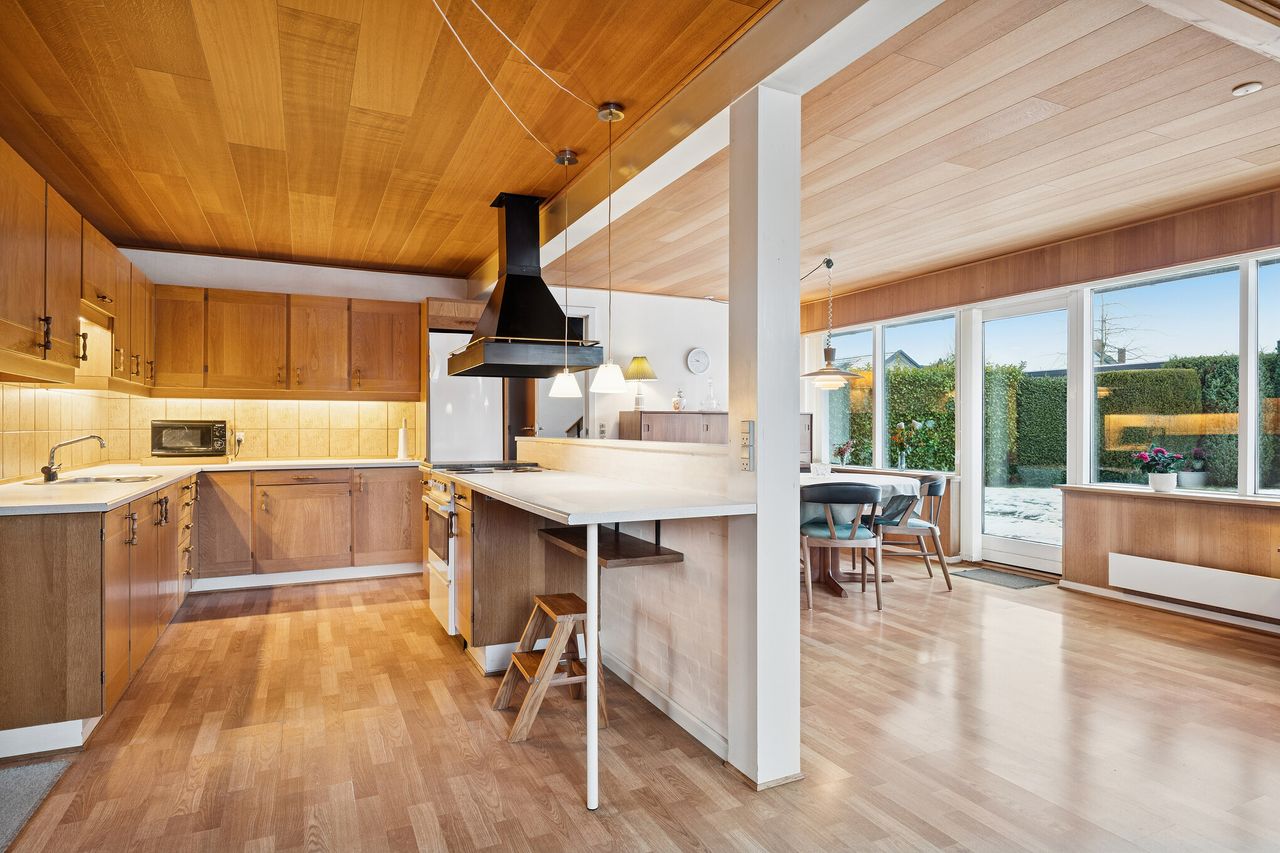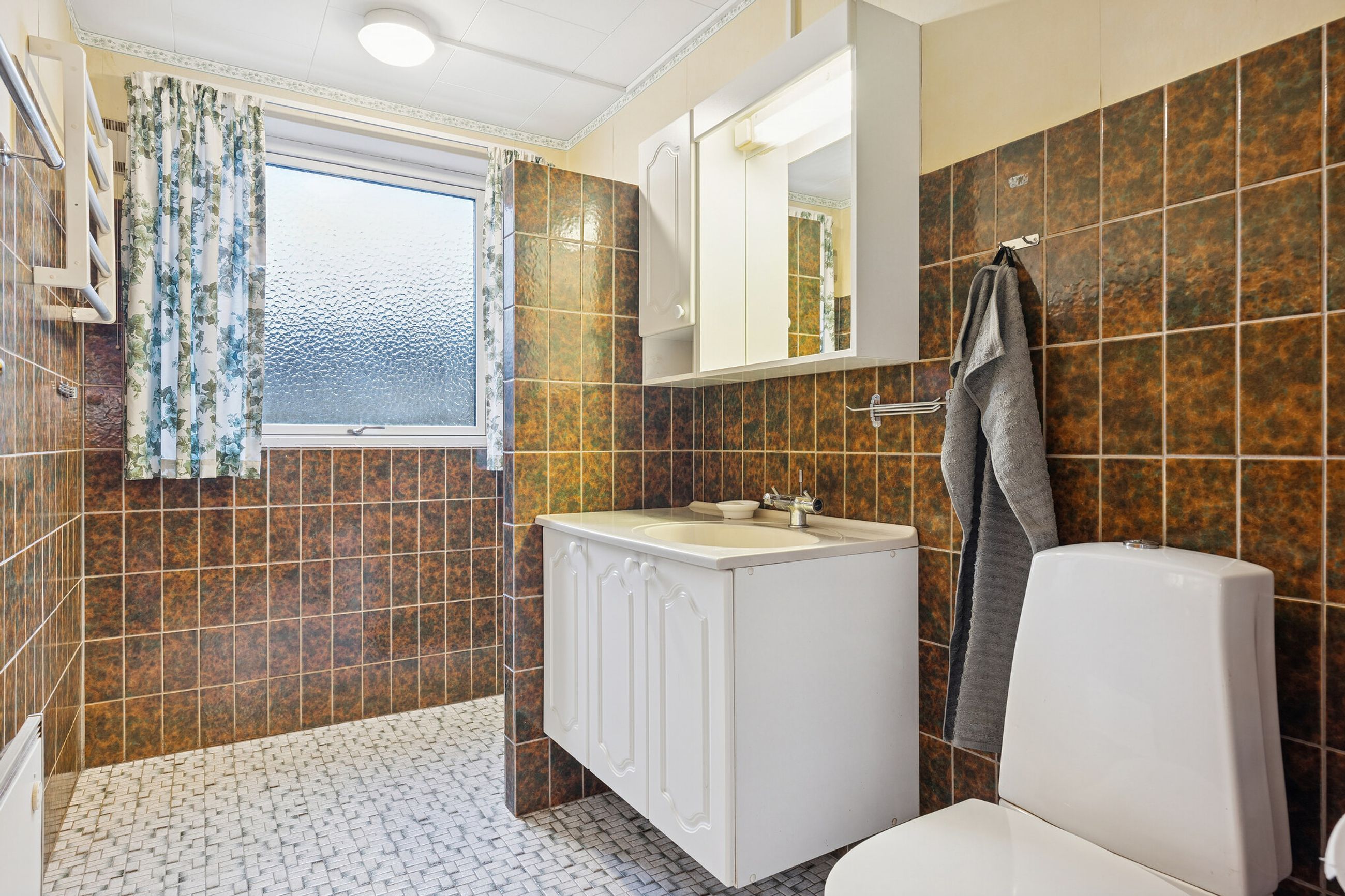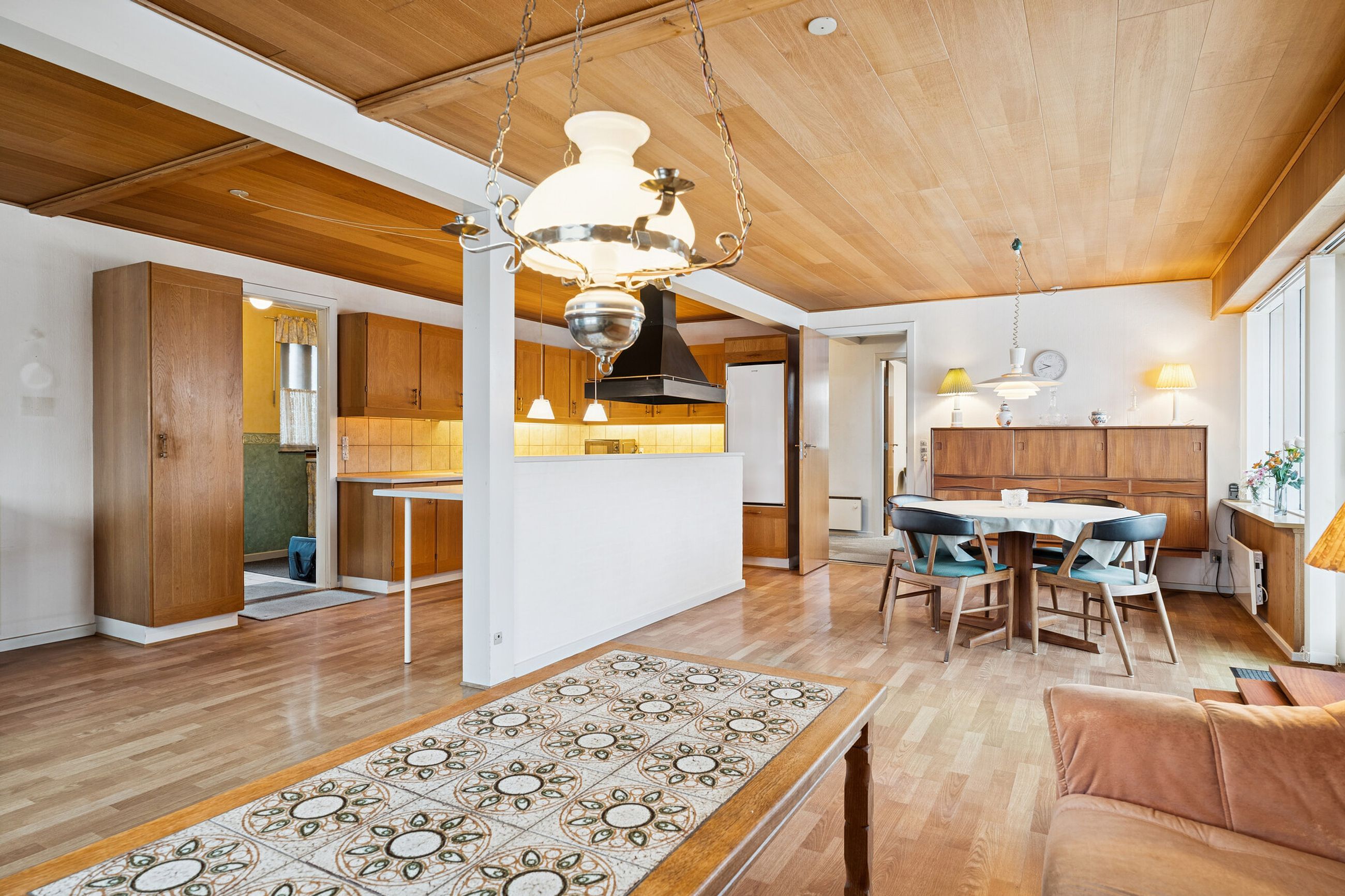 Indenfor bydes du velkommen i en entré med gæstetoilet og fordelingsgang med trappe til førstesalen. I stueplan finder du to gode værelser samt et klassisk 70’er-badeværelse med bruseniche. Husets naturlige samlingspunkt er det store køkken-alrum, hvor der er rigelig plads til både spisebord og hyggeligt opholdsområde. Herfra er der direkte udgang til terrasse og have – perfekt til sommerens grillmiddage og udeliv. Fra alrummet er der også adgang til et praktisk bryggers med vaskeinstallationer og god opbevaringsplads.